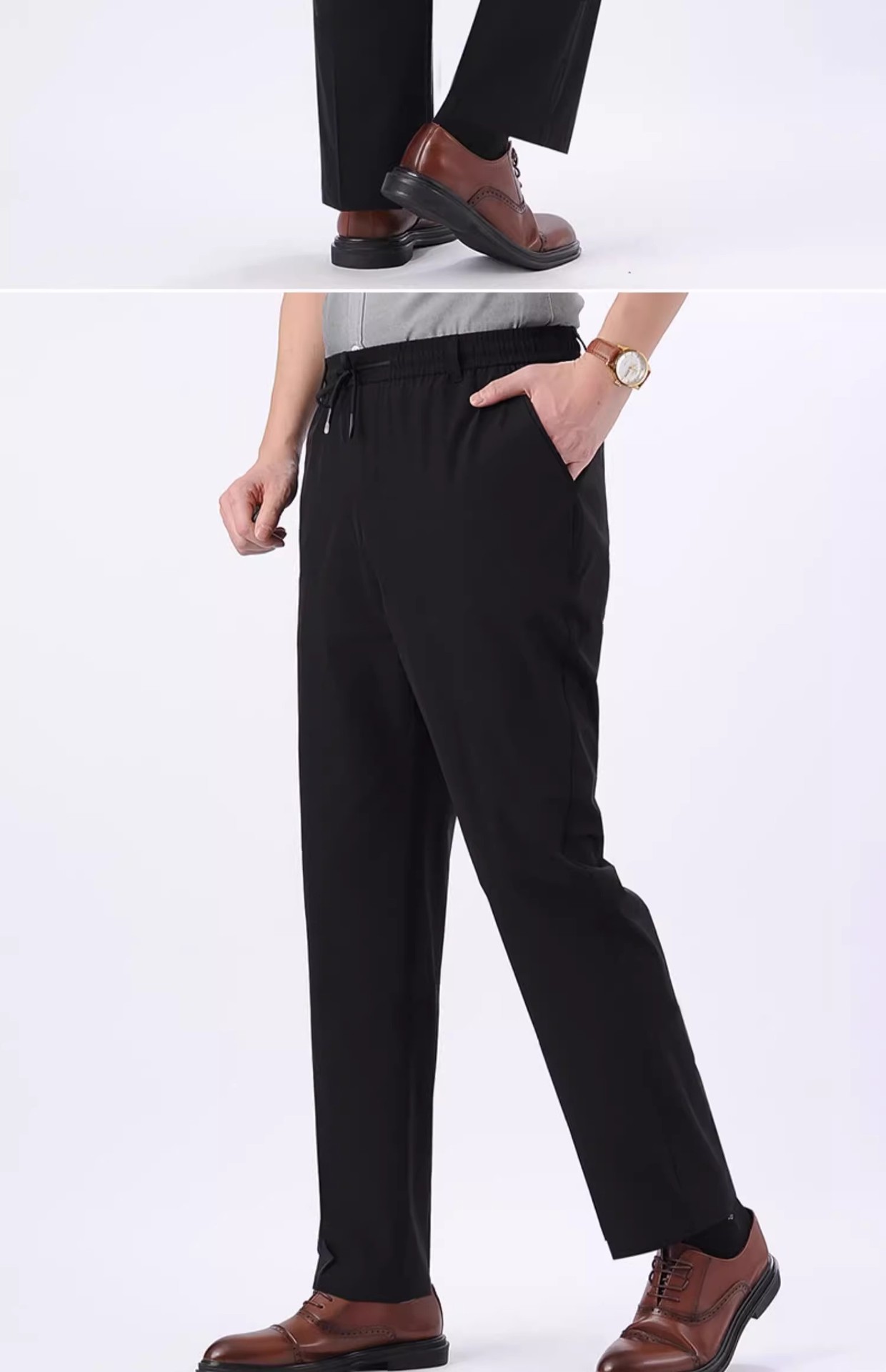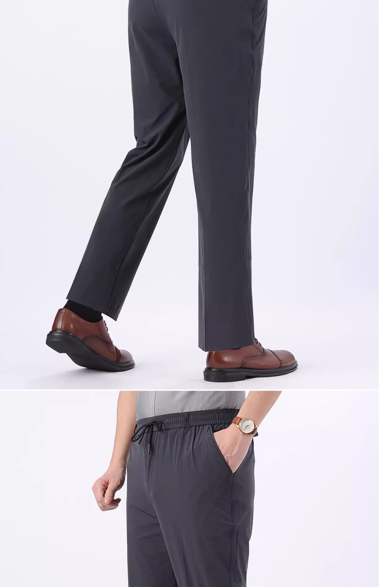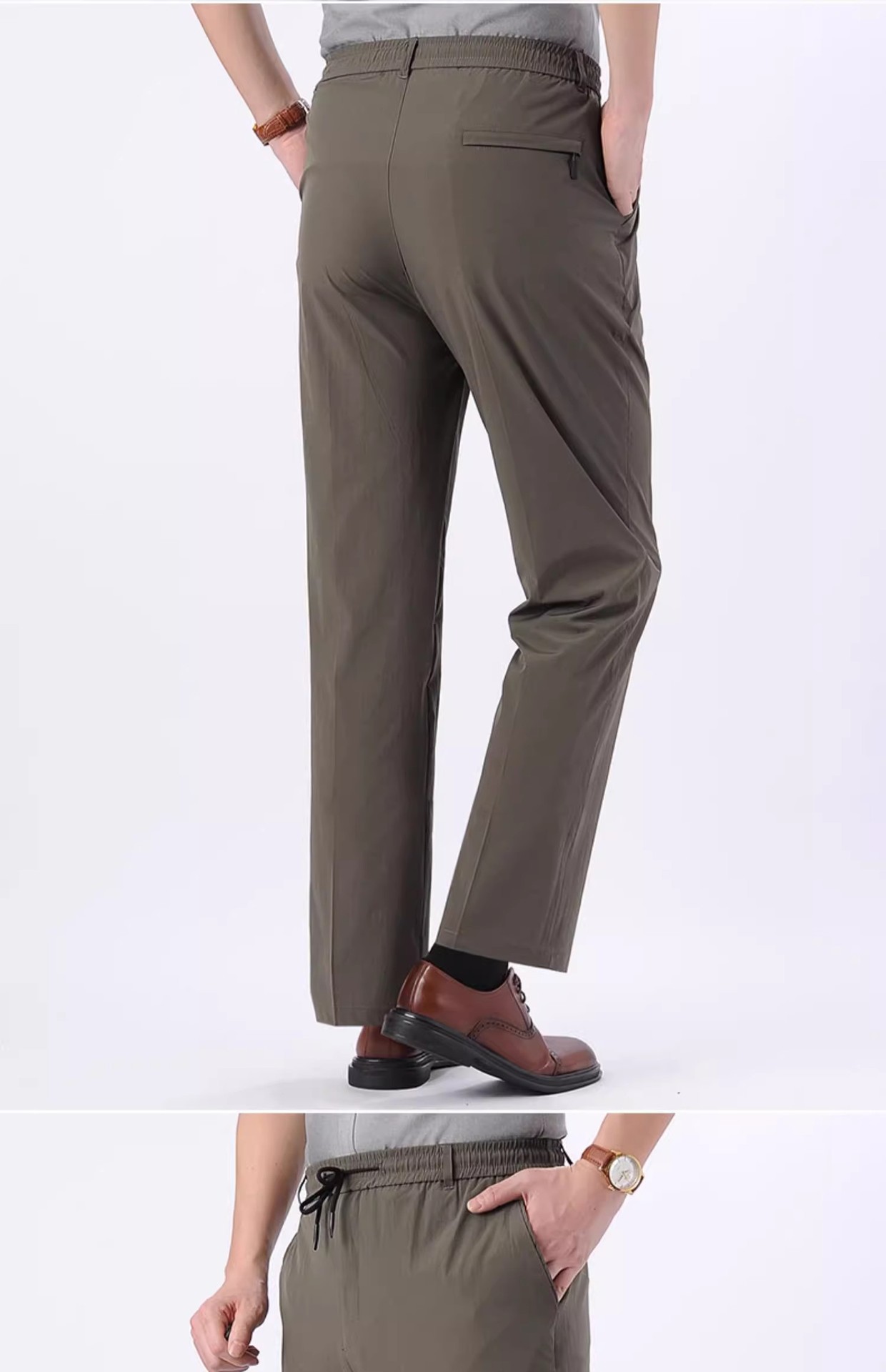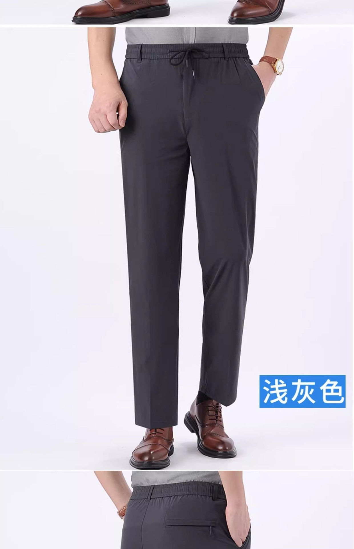 아이스 실크 빠른 건조 바지 여름 얇은 중년 남성 캐주얼 탄성 허리 스포츠 바지 느슨한 탄성 남성용 바지스토어 가기