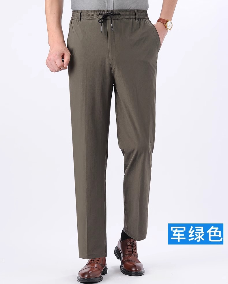 아이스 실크 빠른 건조 바지 여름 얇은 중년 남성 캐주얼 탄성 허리 스포츠 바지 느슨한 탄성 남성용 바지