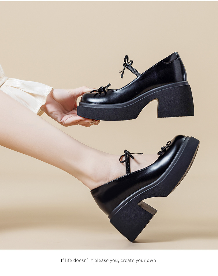 Mary Jane 청키 힐 하이힐 슈즈 여성의 2025 새로운 원 페달 영국 아카데미 스타일 작은 가죽 슈즈 두꺼운 밑창 jk 슈즈스토어 가기