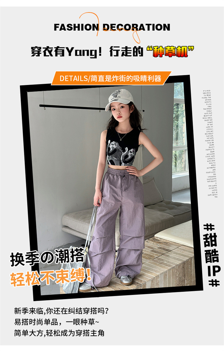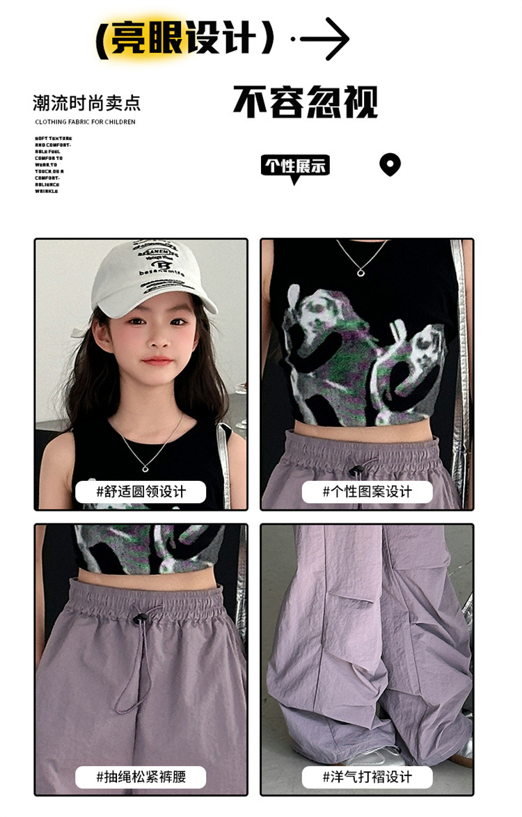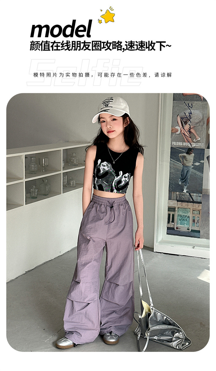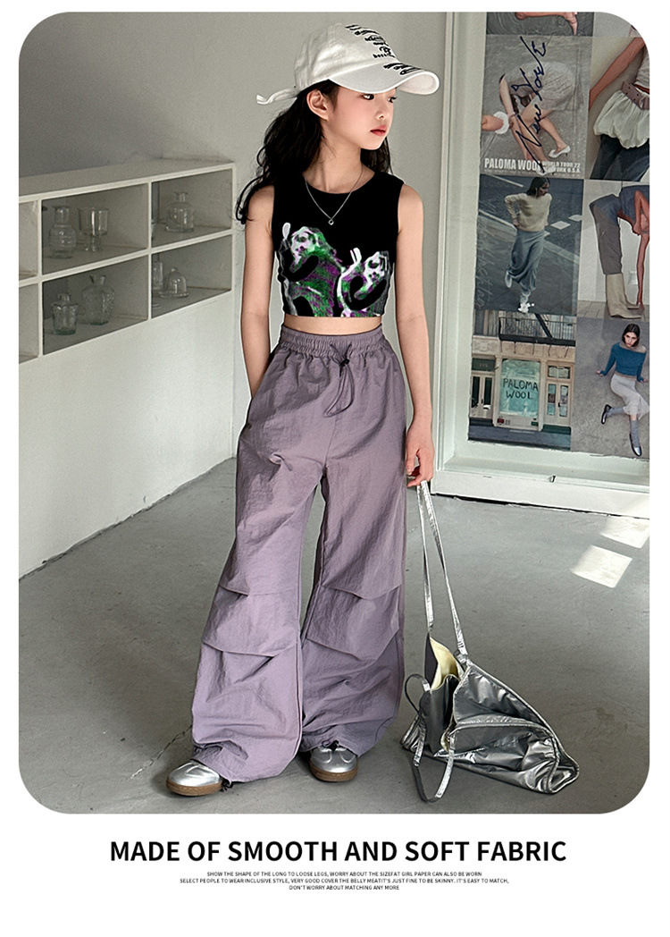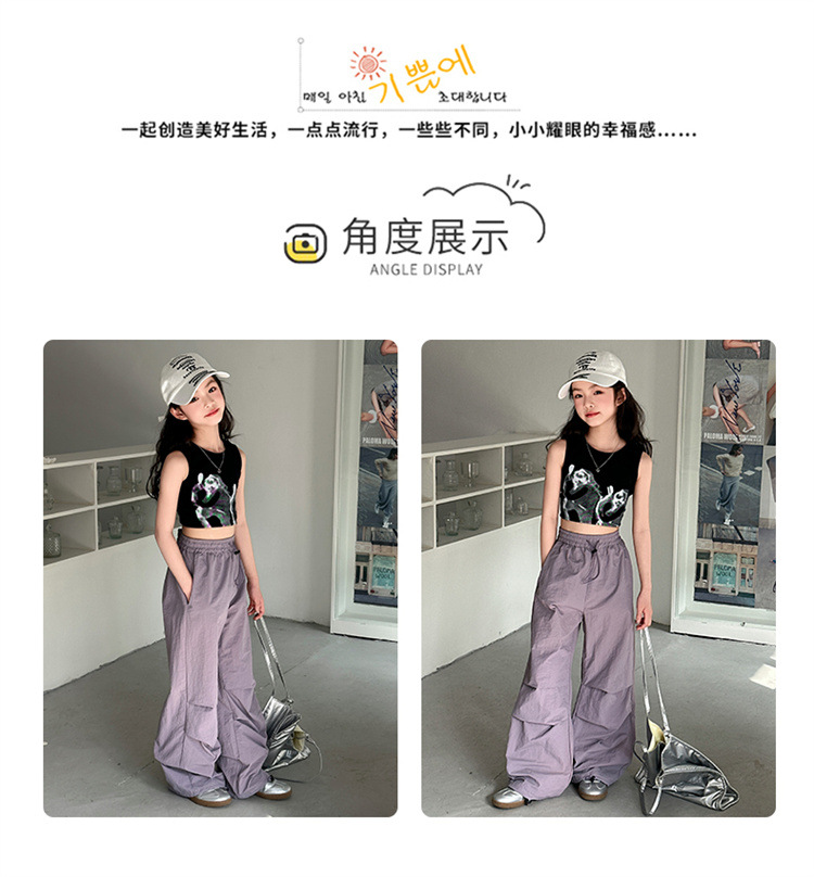 소녀 바지 2025 여름 새로운 큐크 어린이 빠른 건조 와이드 레그 팬츠 조끼 트렌디 한 쿨웨어 투피스 세트스토어 가기