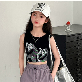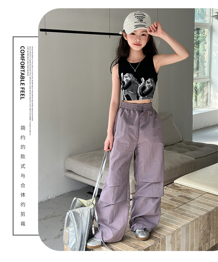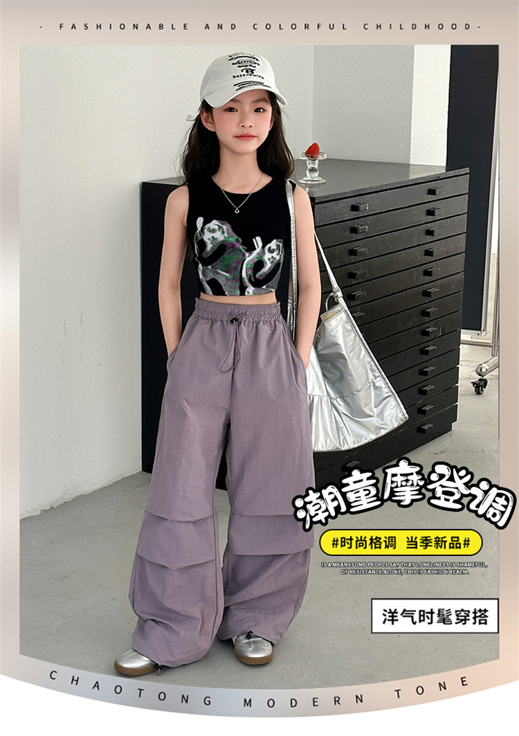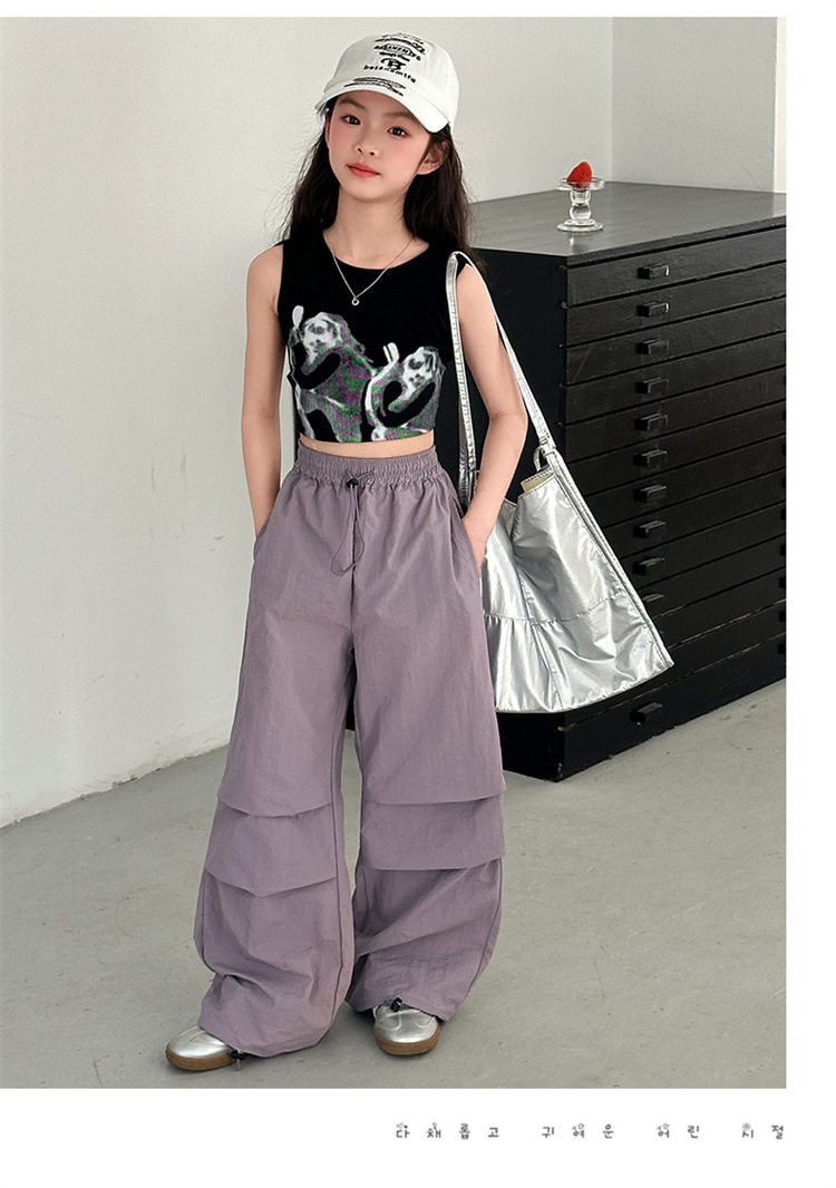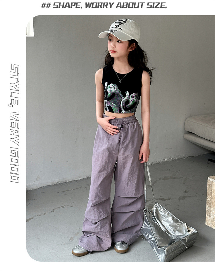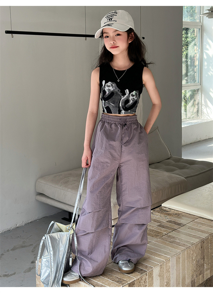 소녀 바지 2025 여름 새로운 큐크 어린이 빠른 건조 와이드 레그 팬츠 조끼 트렌디 한 쿨웨어 투피스 세트
