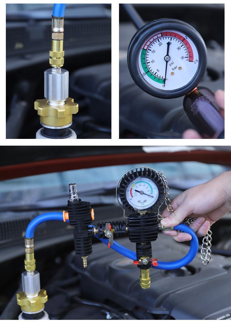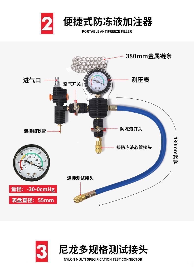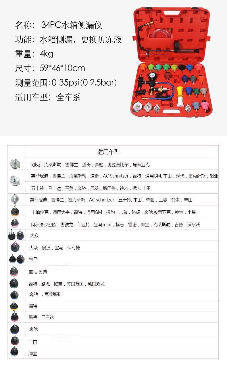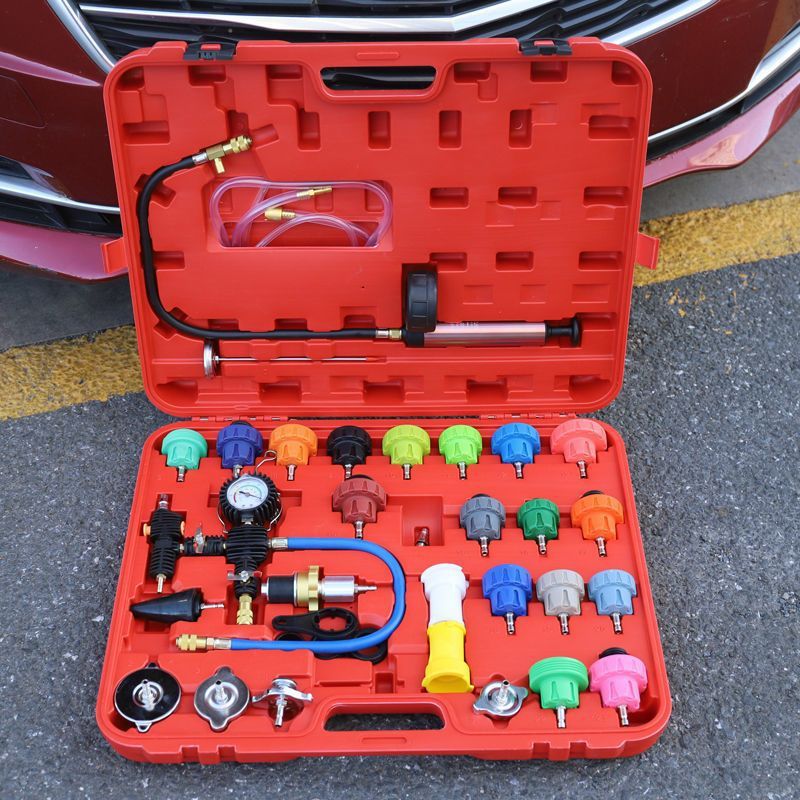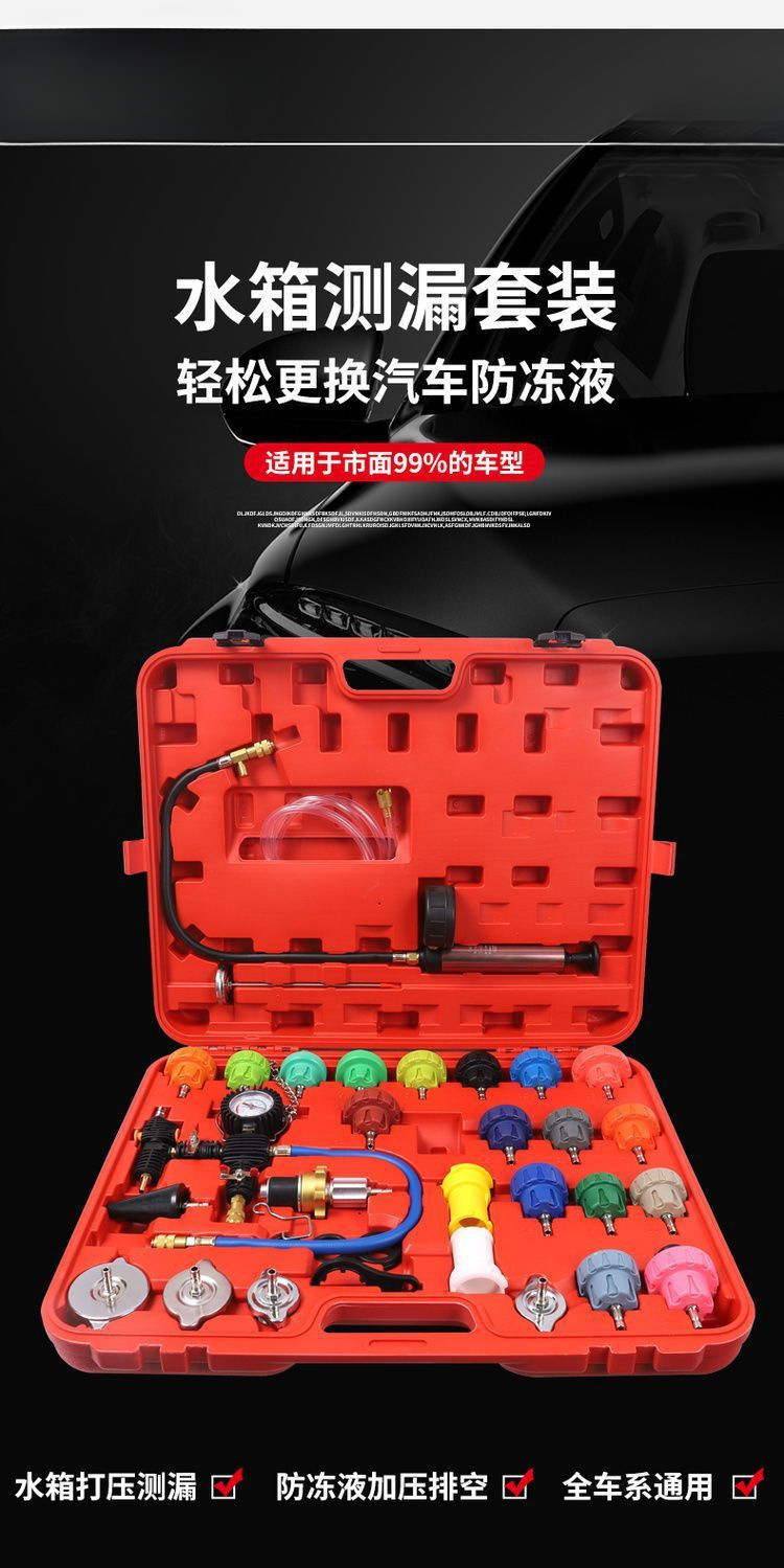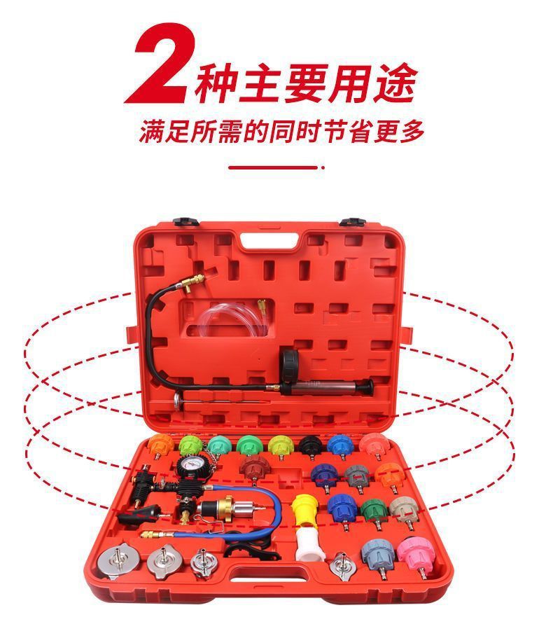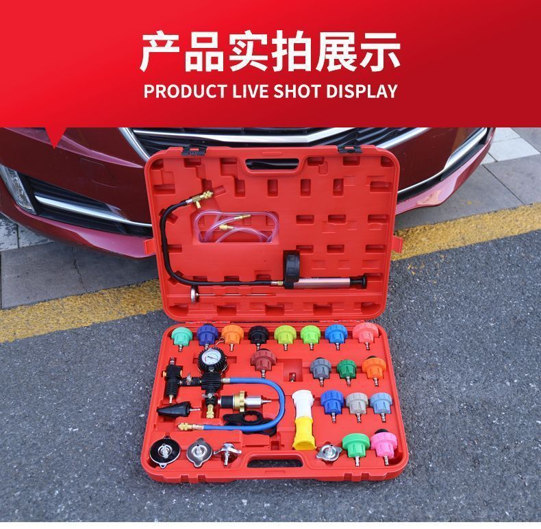 34 조각 자동차 물 탱크 압력 게이지 물 탱크 누출 탐지기 테스트 도구 부동액 교체 기계 필러 28 조각스토어 가기