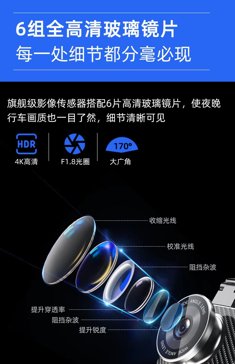 드라이빙 레코더 4K 초 고화질 야간 투시 듀얼 카메라 설치 전후의 모니터링 중지-무료 휴대 전화 상호 연결 2025 터치 스크린스토어 가기