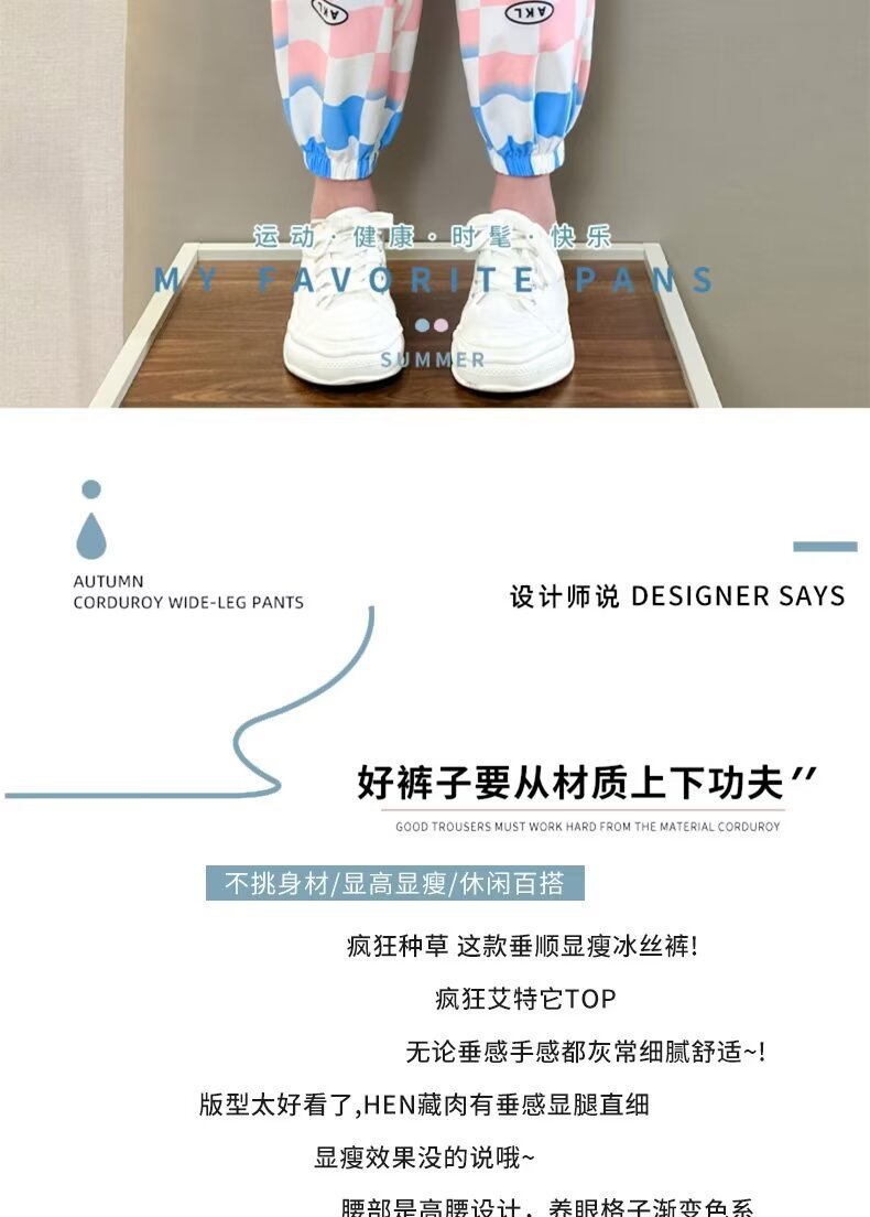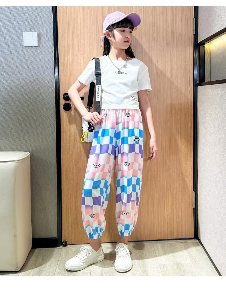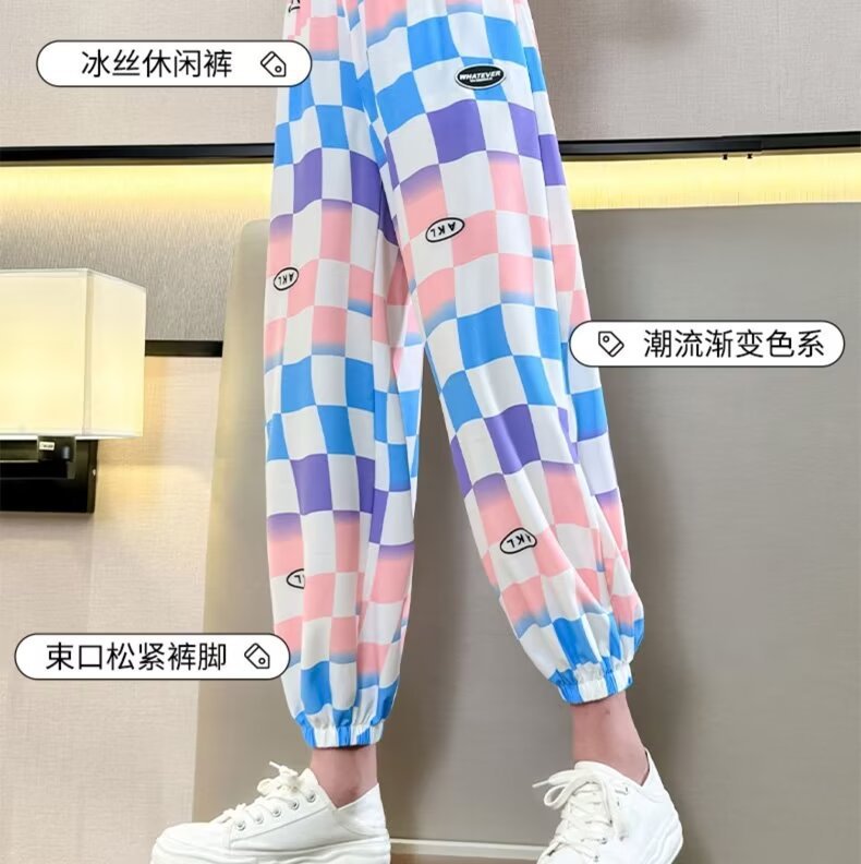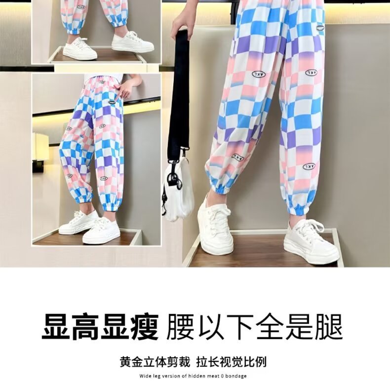 여자 바지 여름 아이스 실크 얇은 어린이 느슨한 넓은 다리 바지 한국 캐주얼 바지 소녀 여름 안티 모기 바지스토어 가기