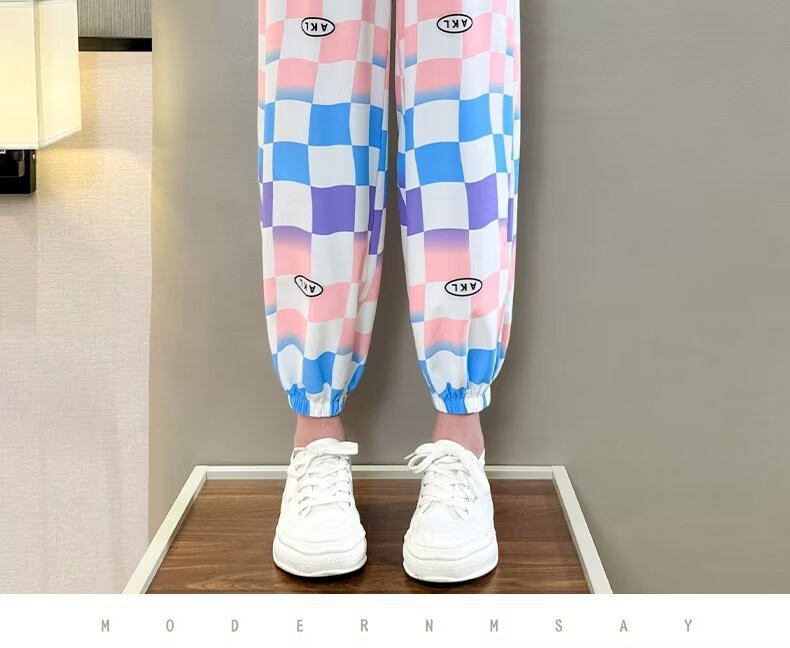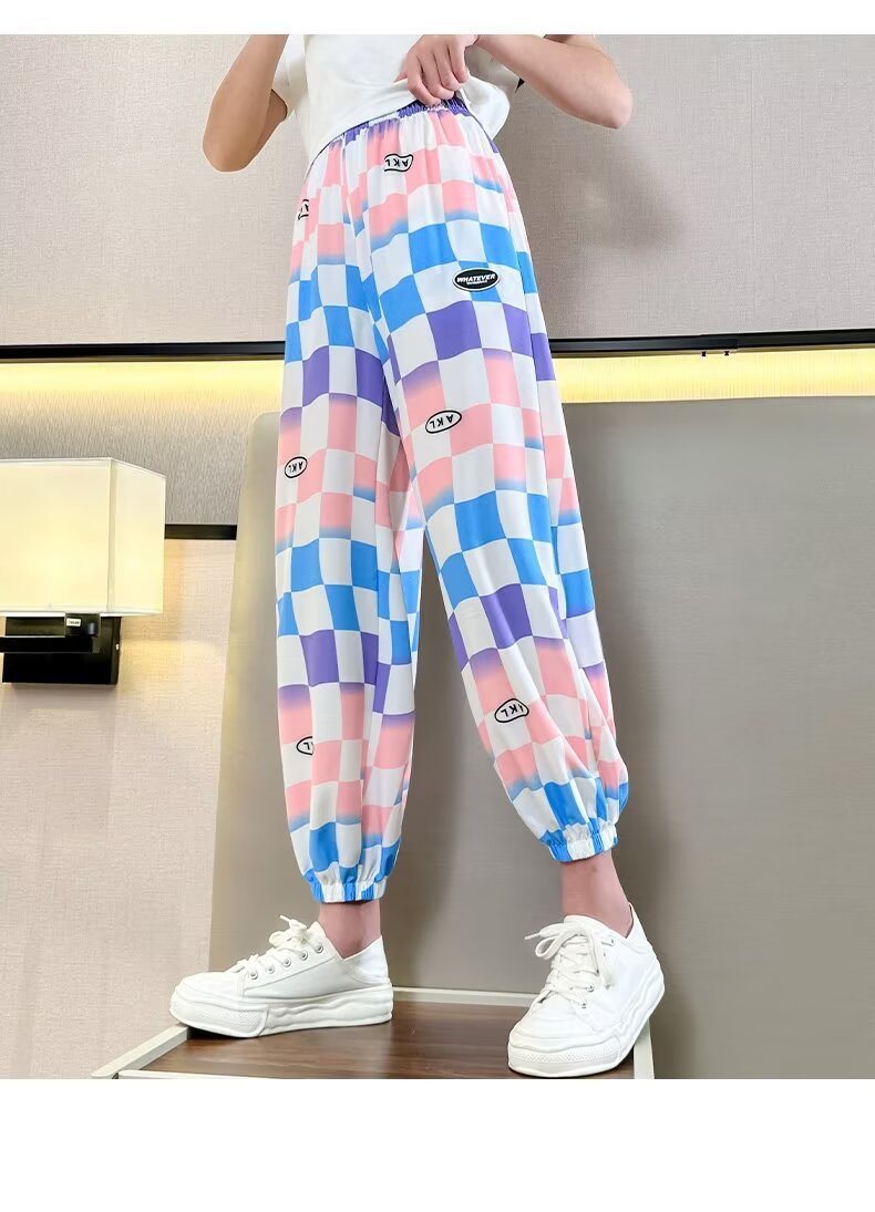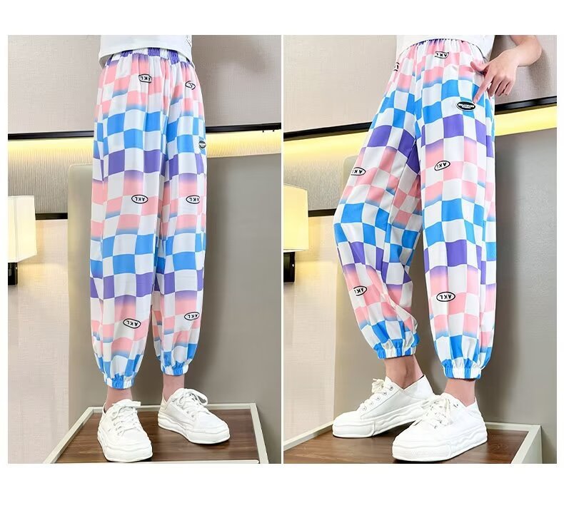 여자 바지 여름 아이스 실크 얇은 어린이 느슨한 넓은 다리 바지 한국 캐주얼 바지 소녀 여름 안티 모기 바지