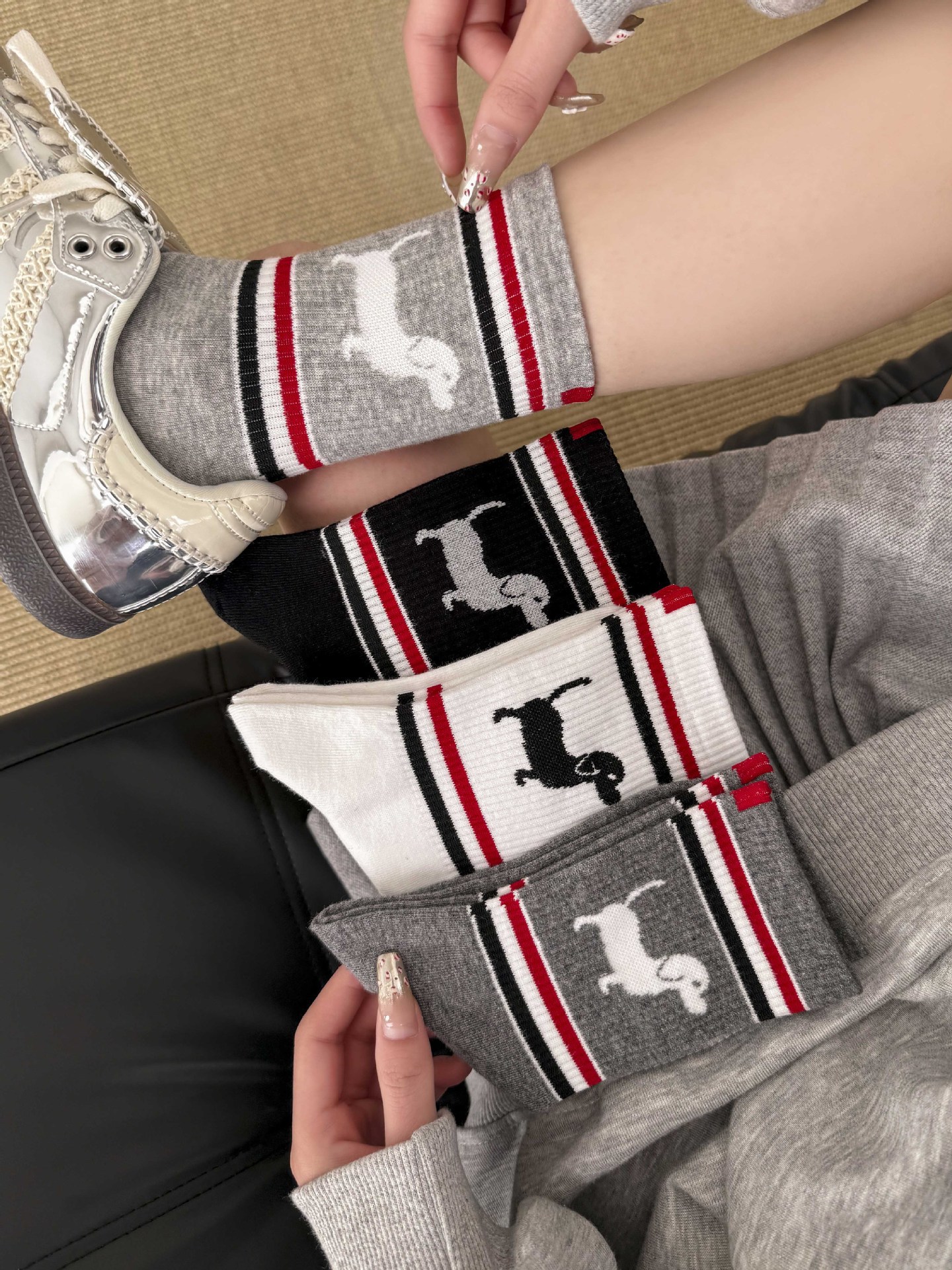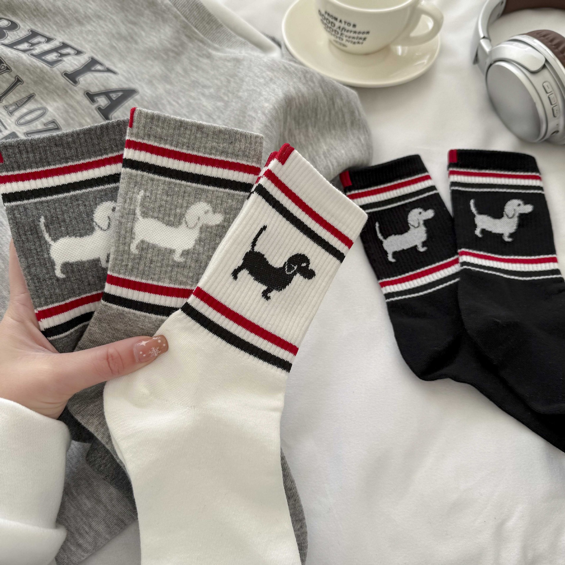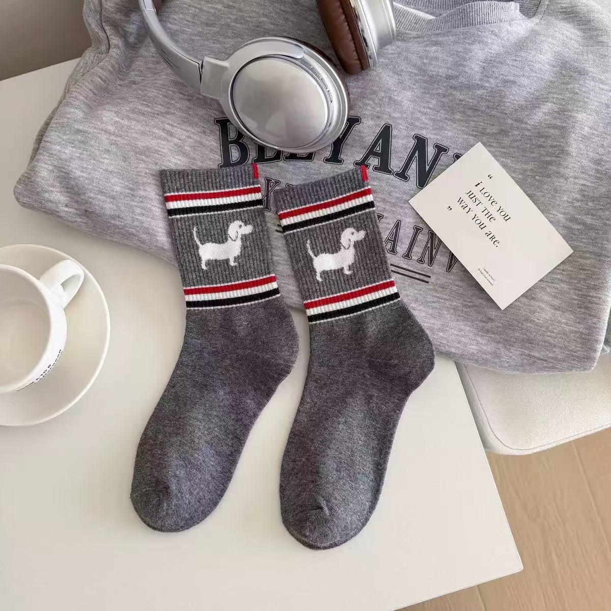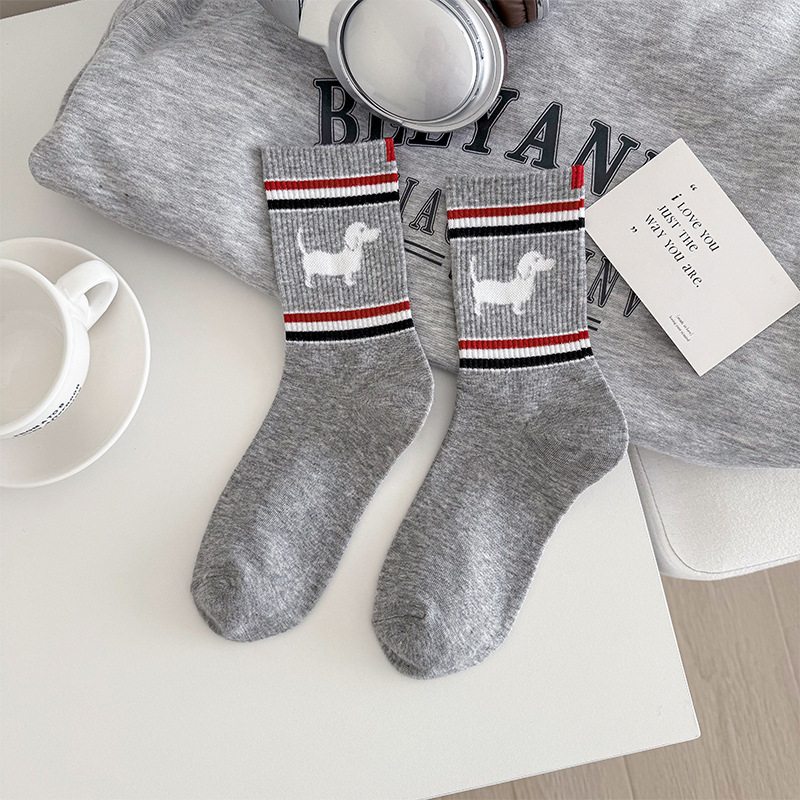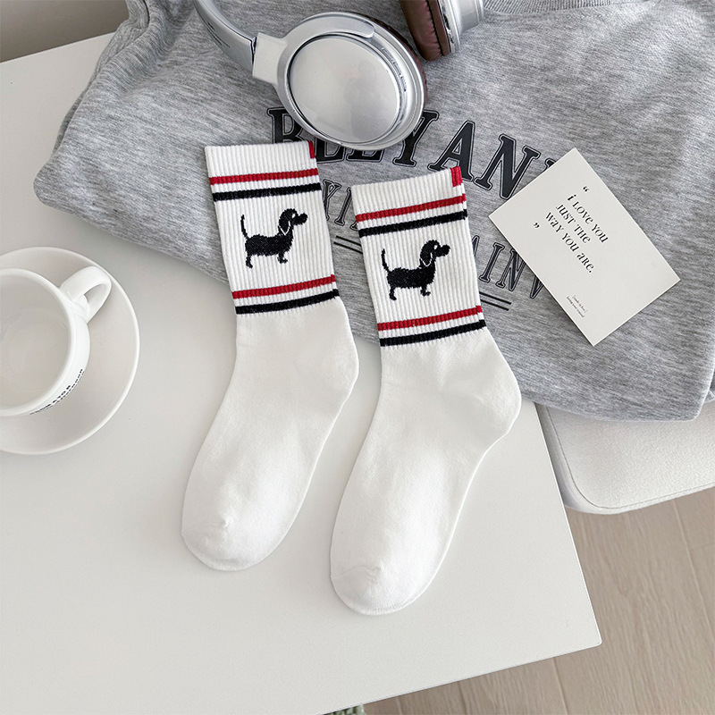 양말 여성 중간 튜브 tb 강아지 자수 스택 양말 면화 한국 줄무늬 AB 양말 패션 브랜드 유럽면 양말