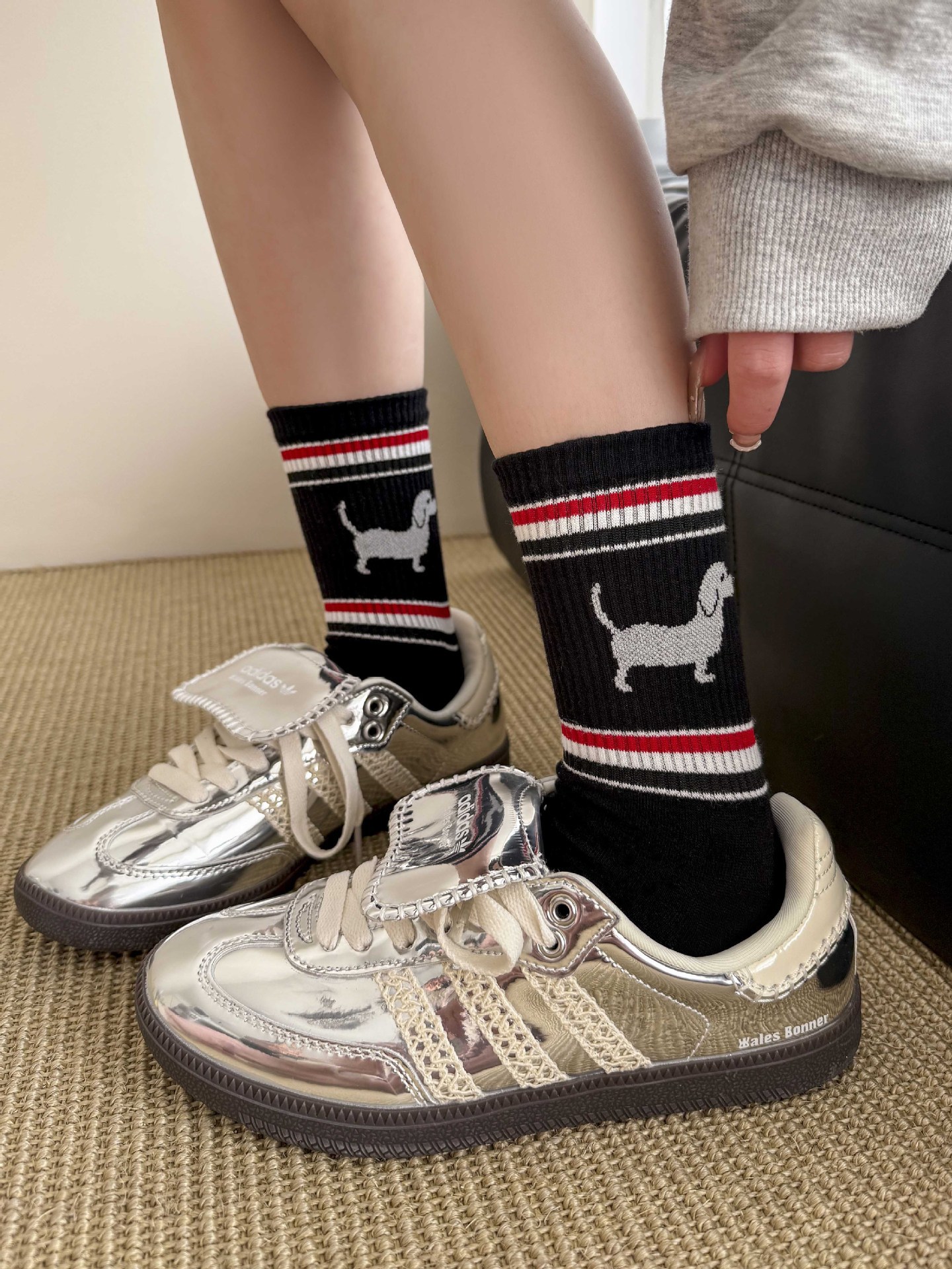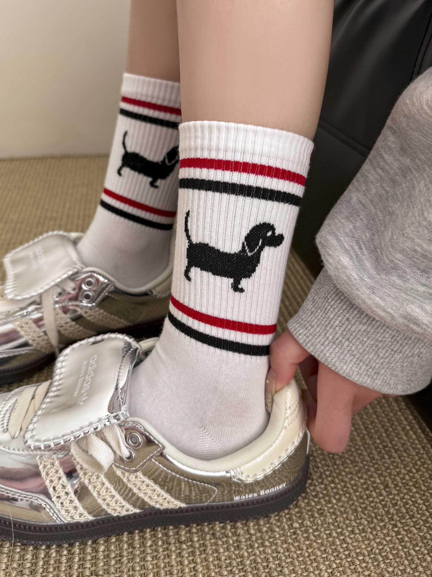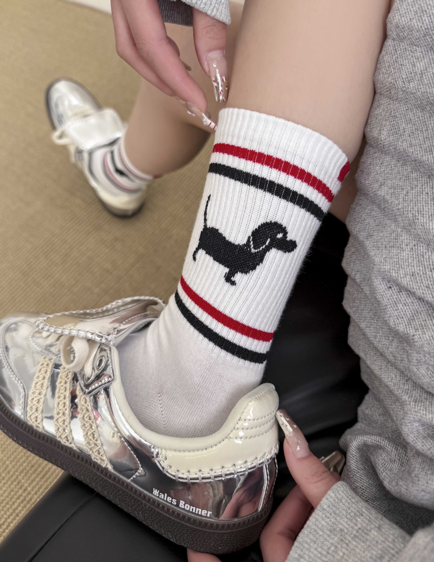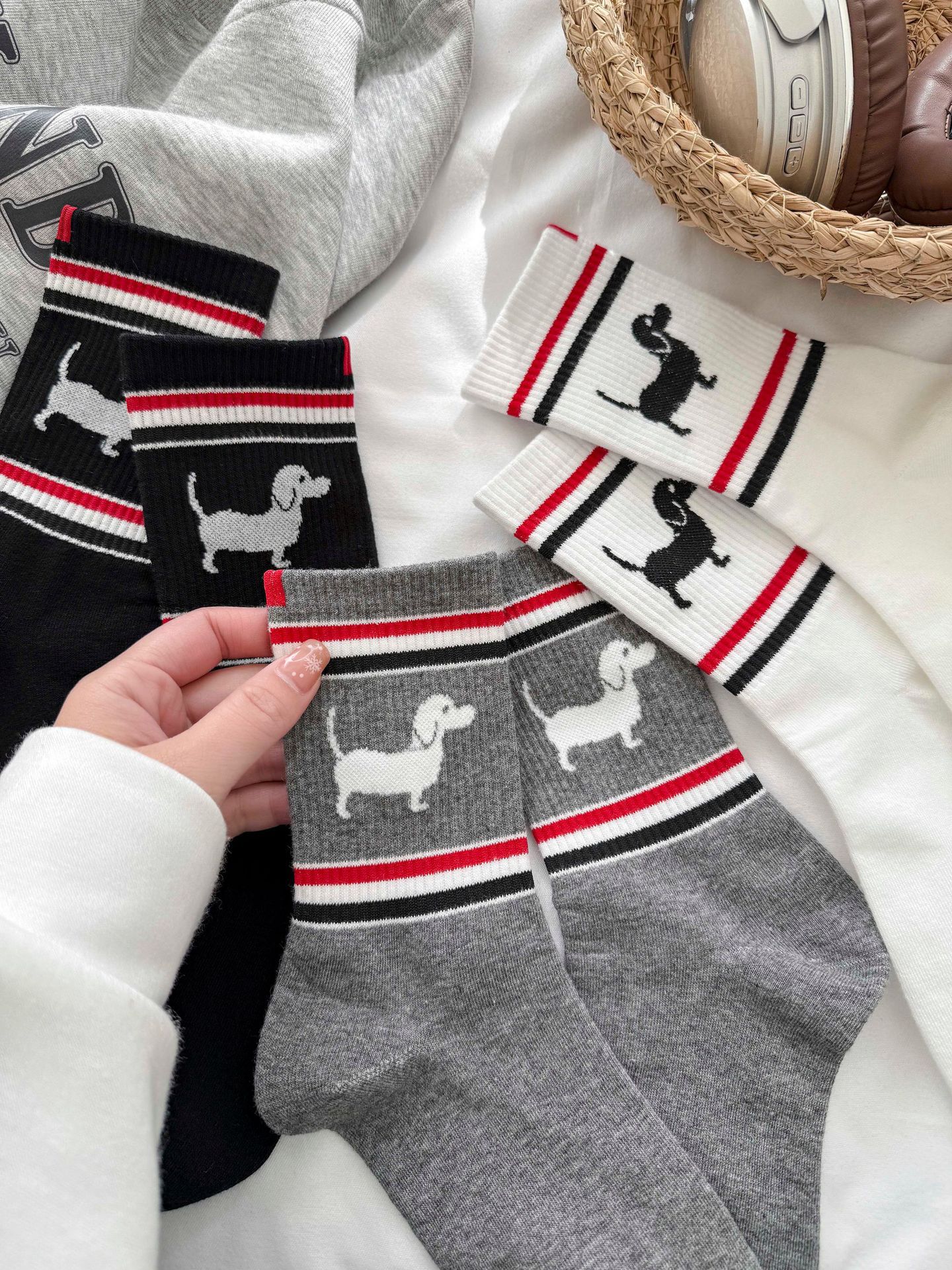 양말 여성 중간 튜브 tb 강아지 자수 스택 양말 면화 한국 줄무늬 AB 양말 패션 브랜드 유럽면 양말스토어 가기