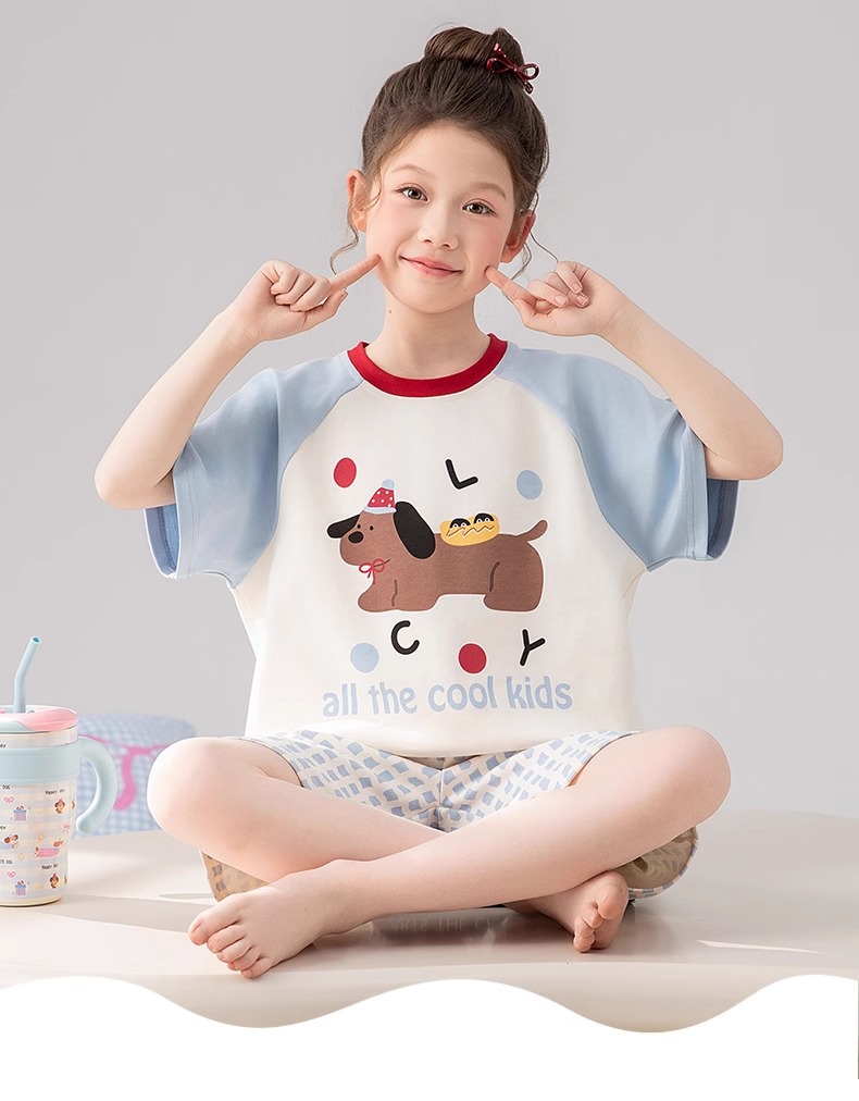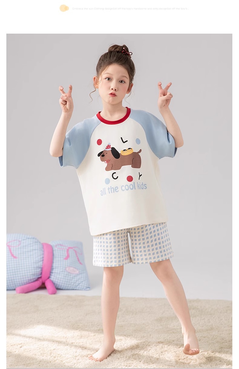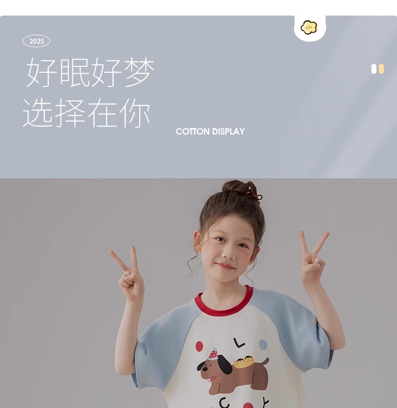 어린이 잠옷 여름면 얇은 반팔 소녀 세트 어린 소녀 2025 새로운 큰 어린이 여름 홈 옷스토어 가기