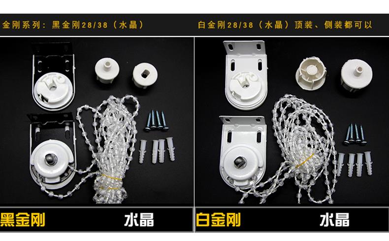 커튼 드로우 스트링 비즈 위아래로 회전 샤프트 블랙 아웃 천 블라인드 크리스탈 플라스틱 밀라 비드 체인 핸드 풀 롤러 블라인드 액세서리
