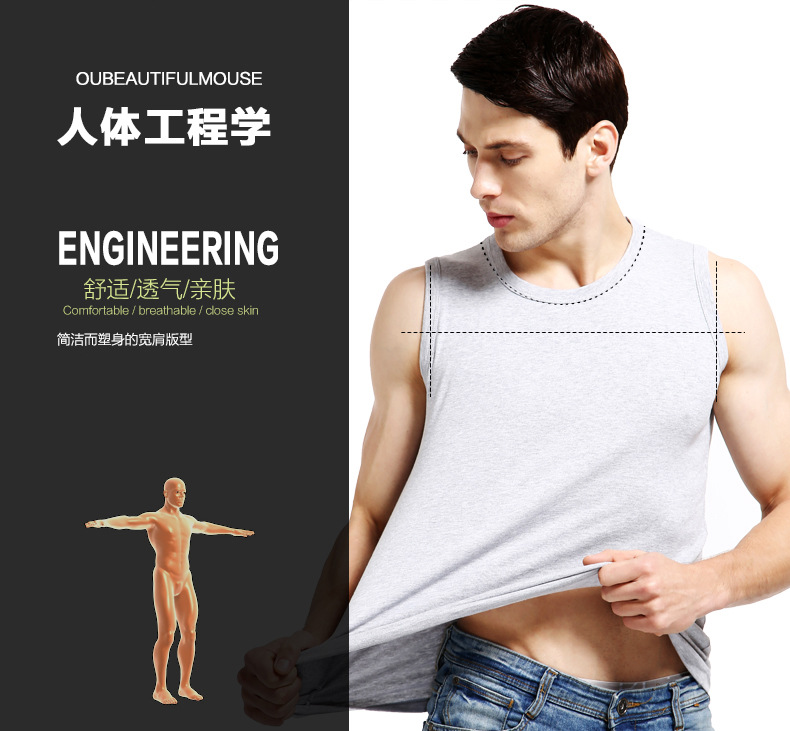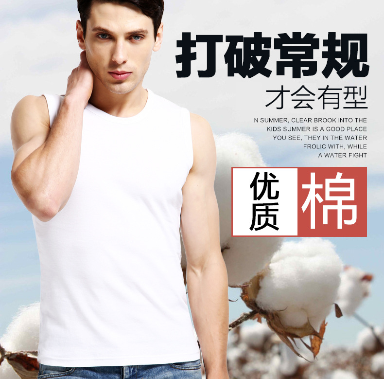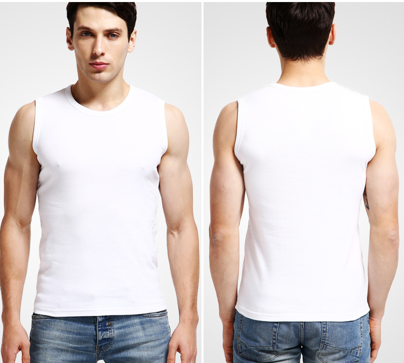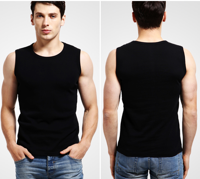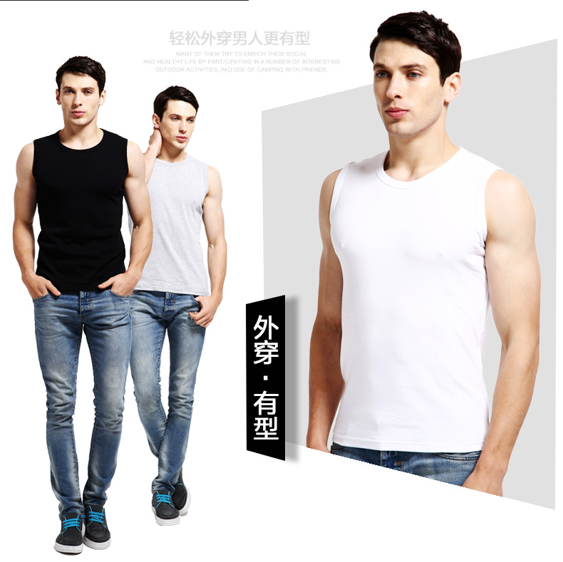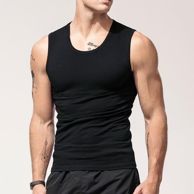 순수한면 보토밍 조끼 남성용 민소매 티셔츠 의상 유행 와이드 숄더 웨어 슬리브 타이트핏 스포츠 웨어 숄더 트렌디스토어 가기