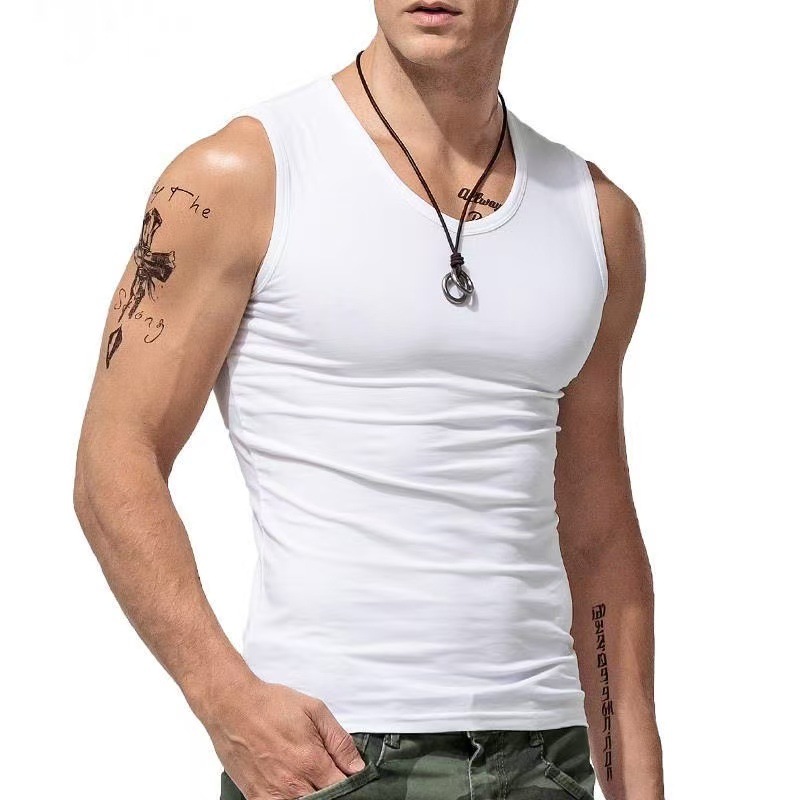 순수한면 보토밍 조끼 남성용 민소매 티셔츠 의상 유행 와이드 숄더 웨어 슬리브 타이트핏 스포츠 웨어 숄더 트렌디