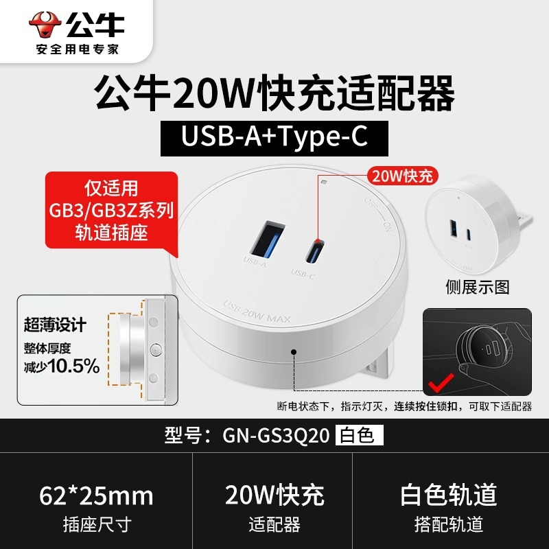 • 마스터 [패셔너블 화이트] 415mm 트랙 + 2개의 5홀 + 20W 고속 충전