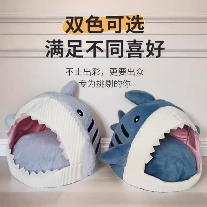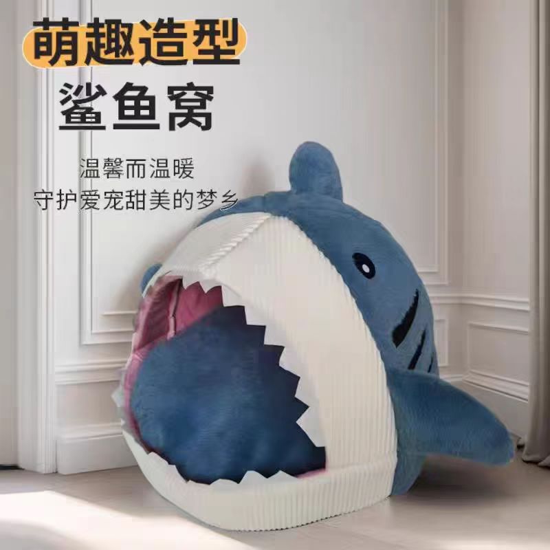 만화 고양이 둥지 애완 동물 용품 도매 폐쇄 사계절 유니버설 사육장 만화 상어 모양 애완 동물 둥지