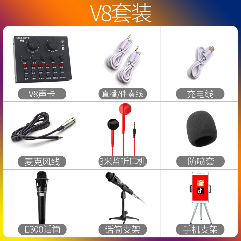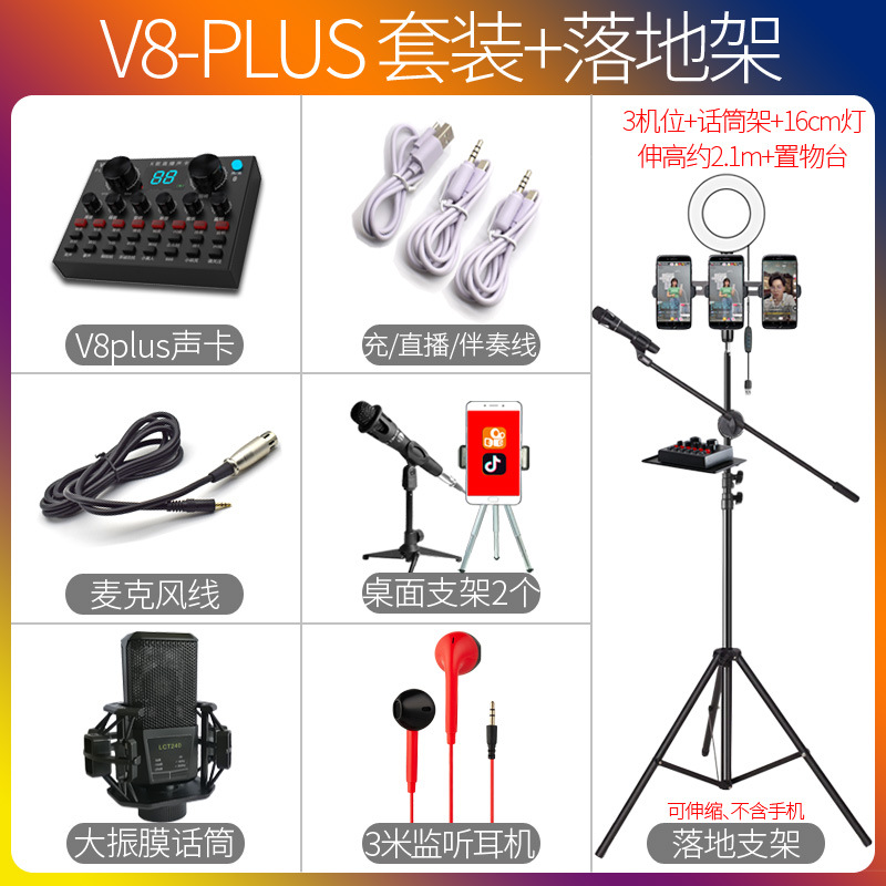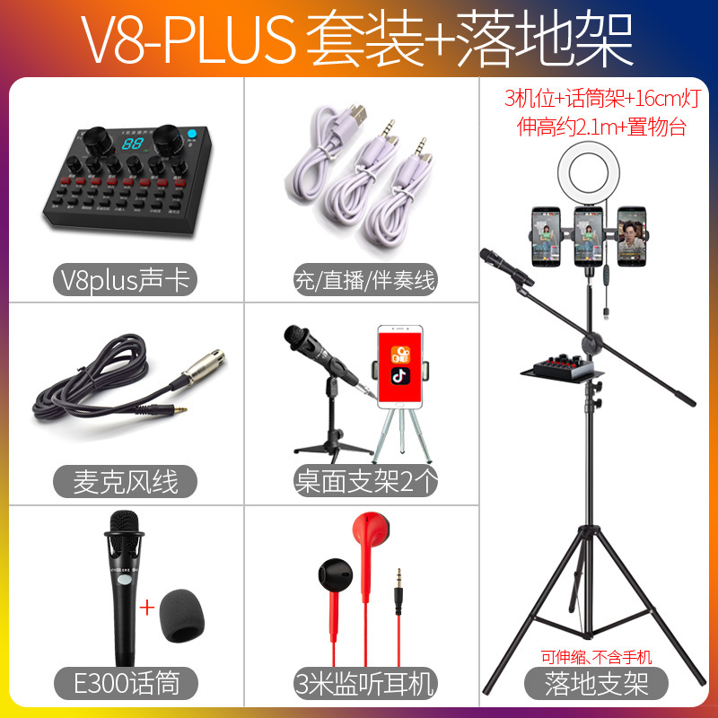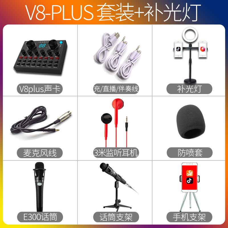 V8Plus 앵커 세트 사운드 카드 노래 휴대 전화 특별 생방송 장비 전체 떨림 빠른 손 그물 붉은 소리 밀 기록 세트