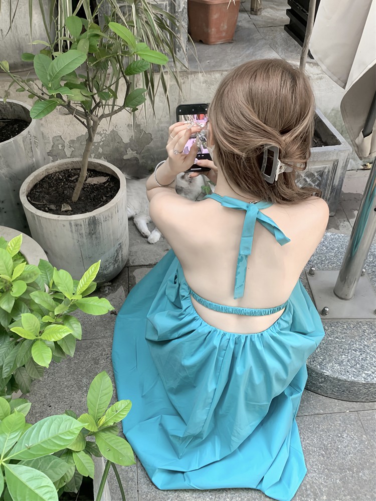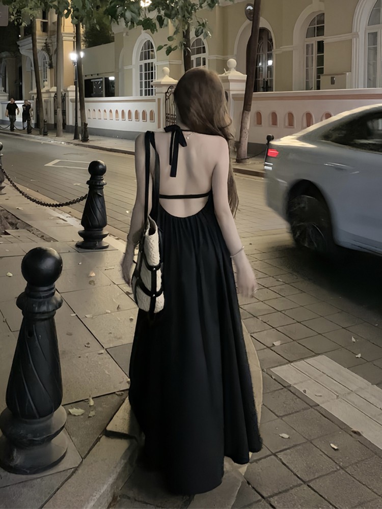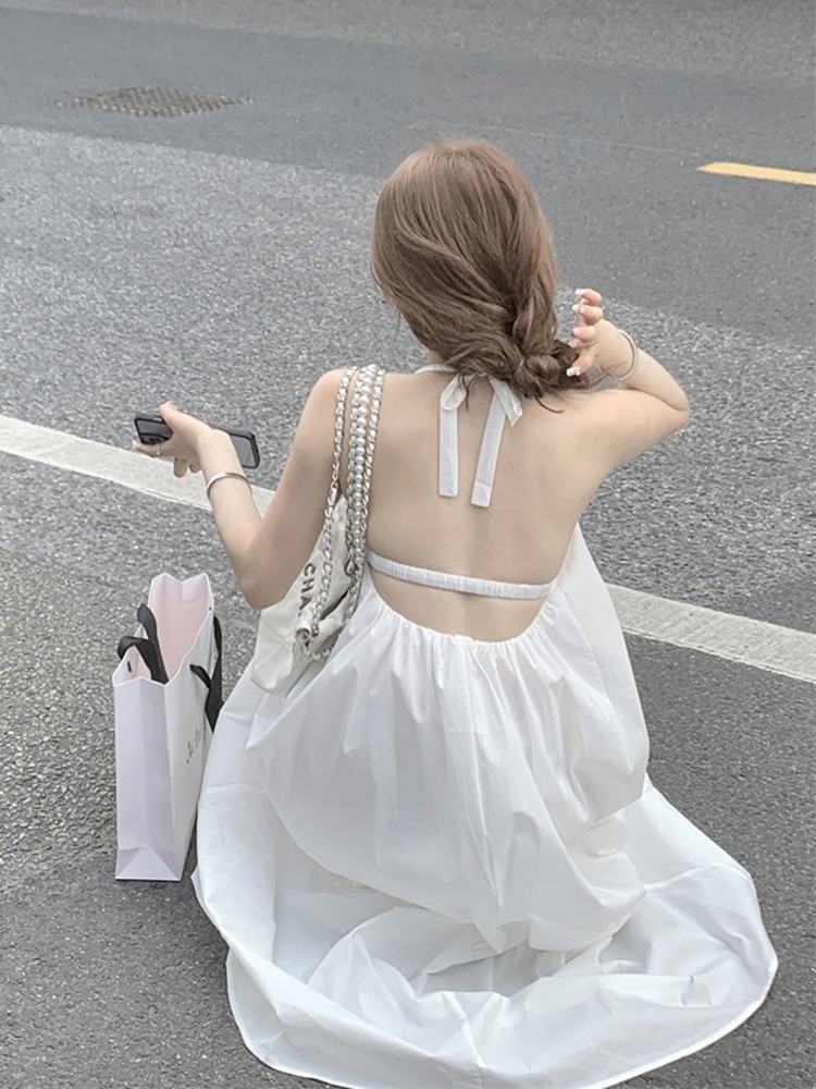 휴일 스타일 백리스 슬링 디자인 긴 원피스 프랑스 우아한 원피스 해변 여름 해변 흰색 순수한 슈퍼 불멸스토어 가기
