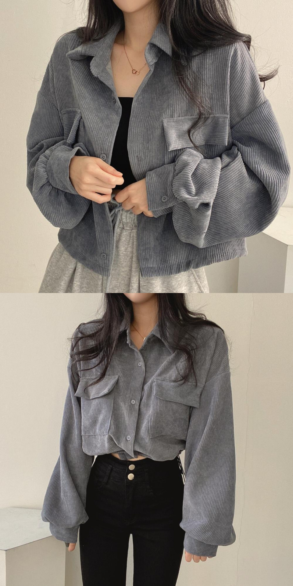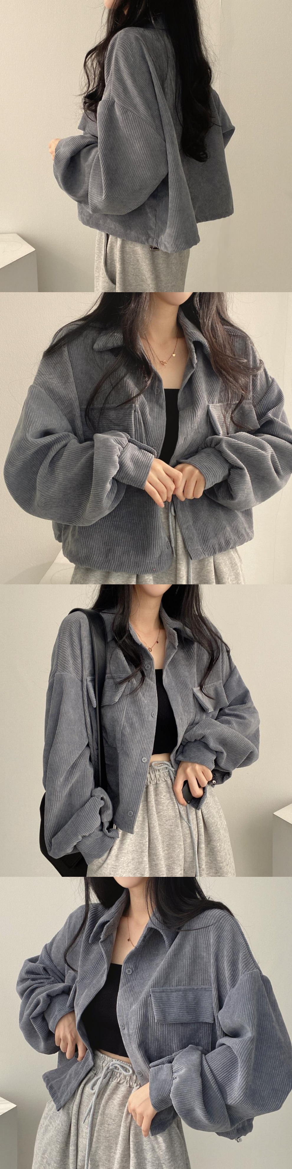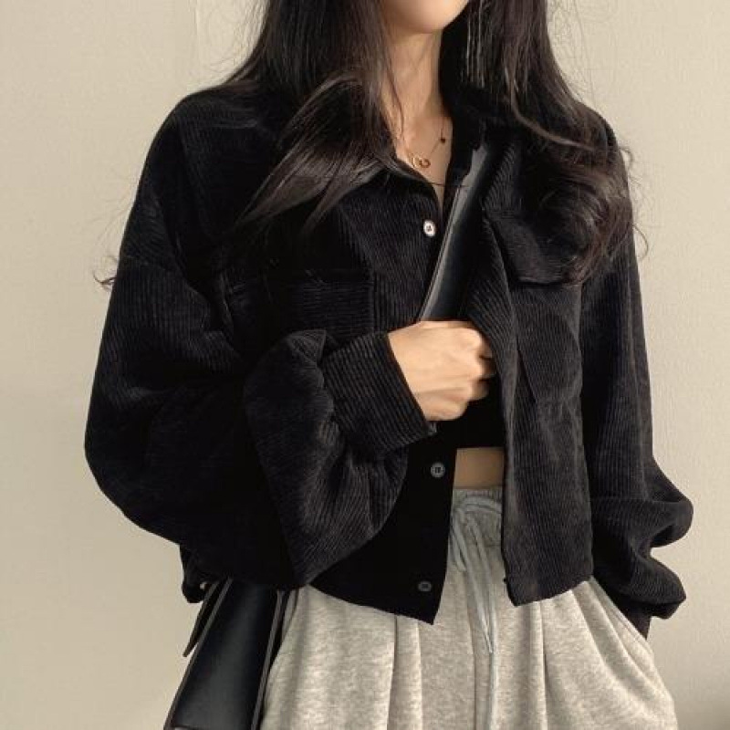 한국 세련된 가을 프랑스 빈티지 올 매치 싱글 브레스트 라펠 짧은 코듀로이 셔츠 긴팔 재킷 여성용 트렌디스토어 가기