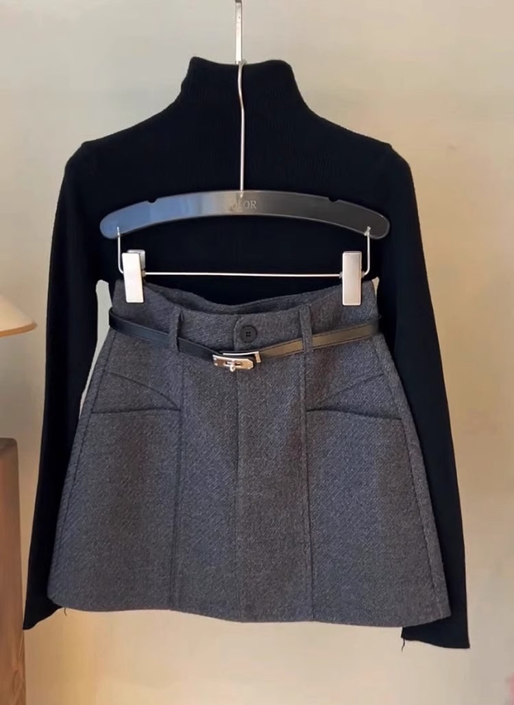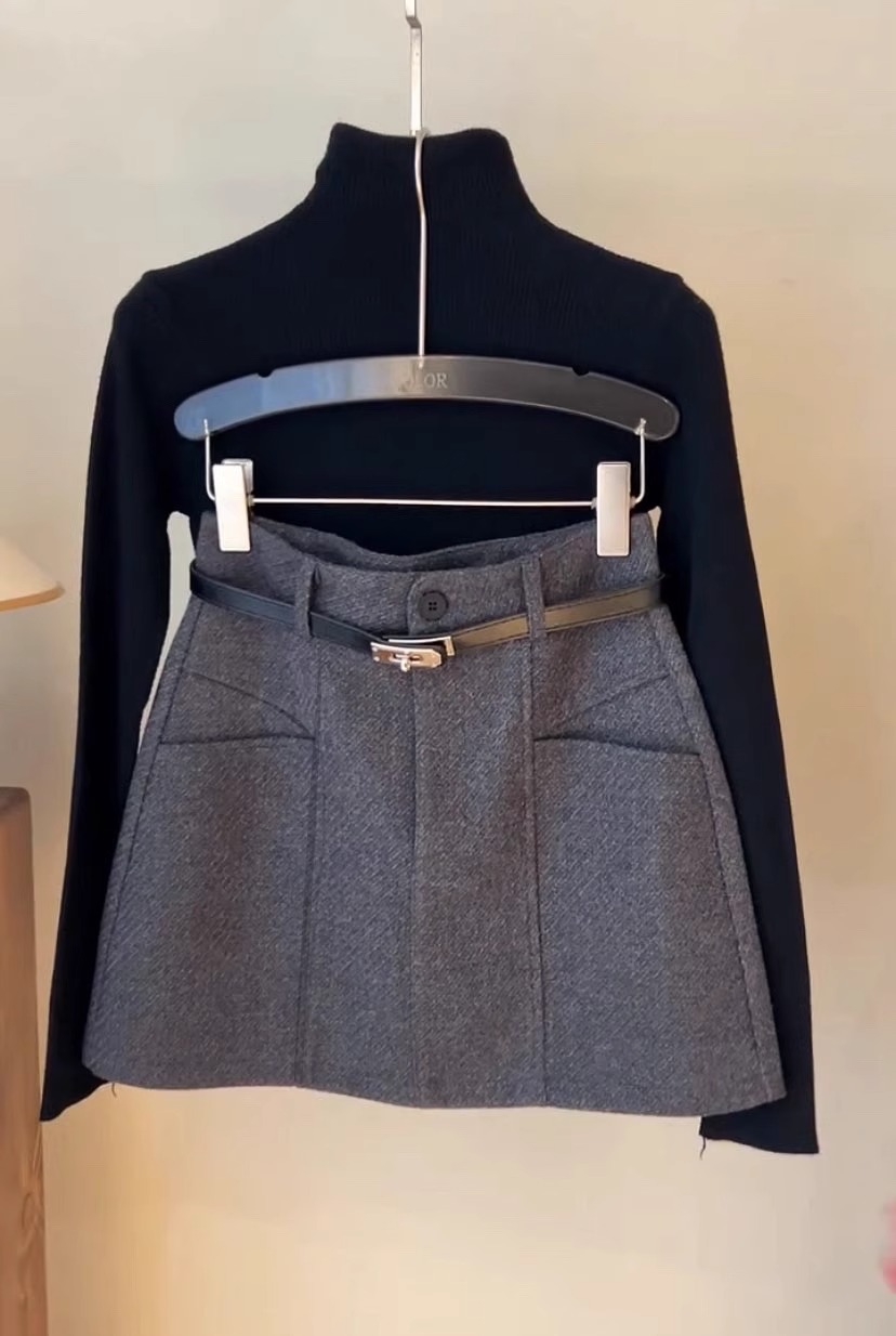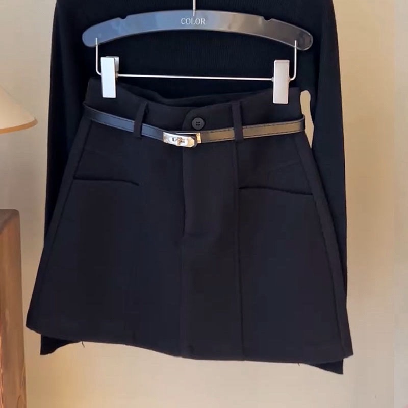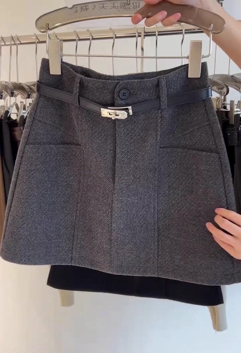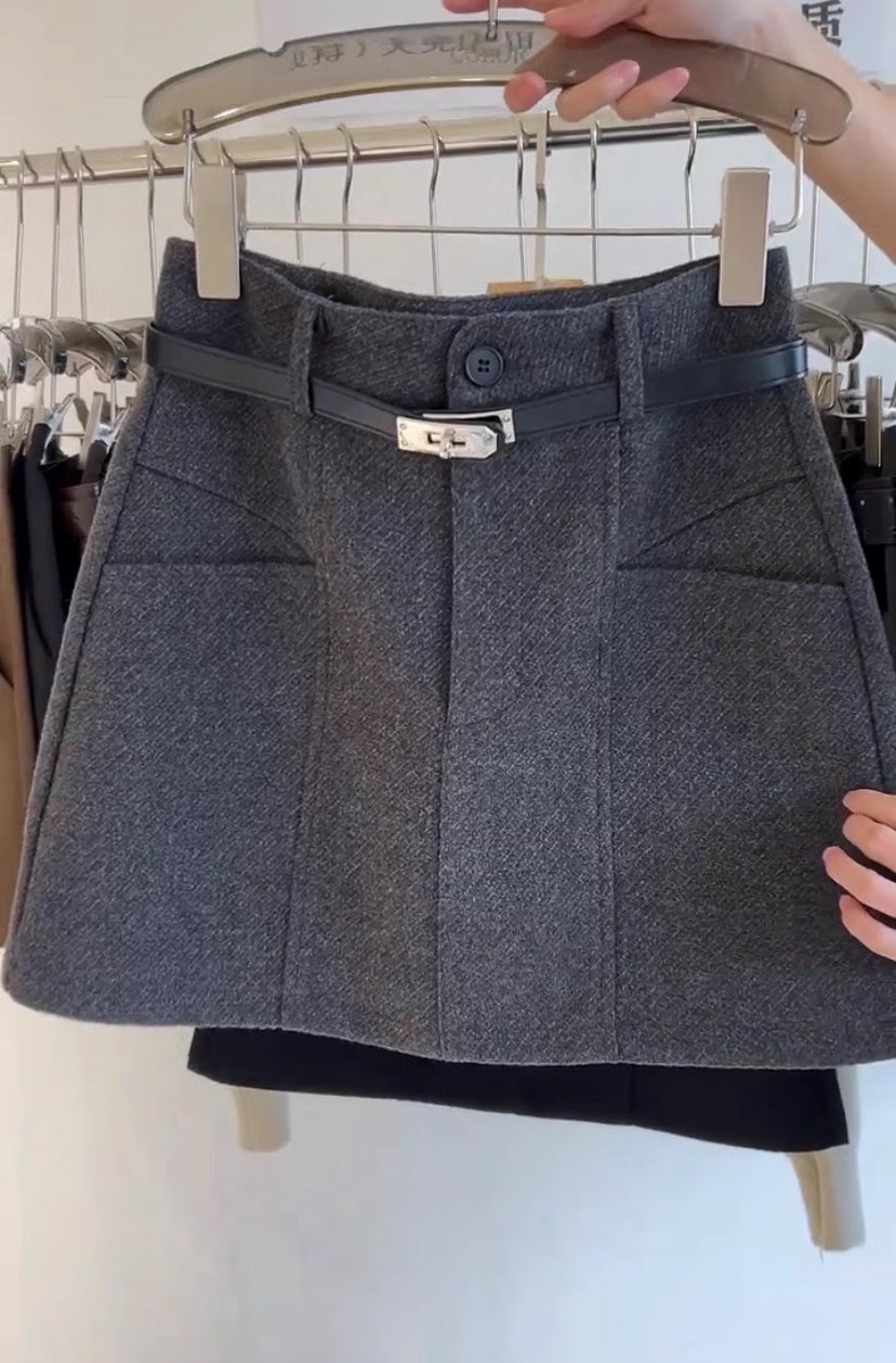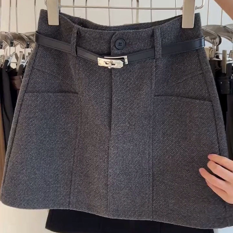 2024 가을과 겨울 모직 스커트 A 라인 스커트 높은 허리 엉덩이 스트레이트 스커트 슬림 핏 작은 유행 연령 감소스토어 가기