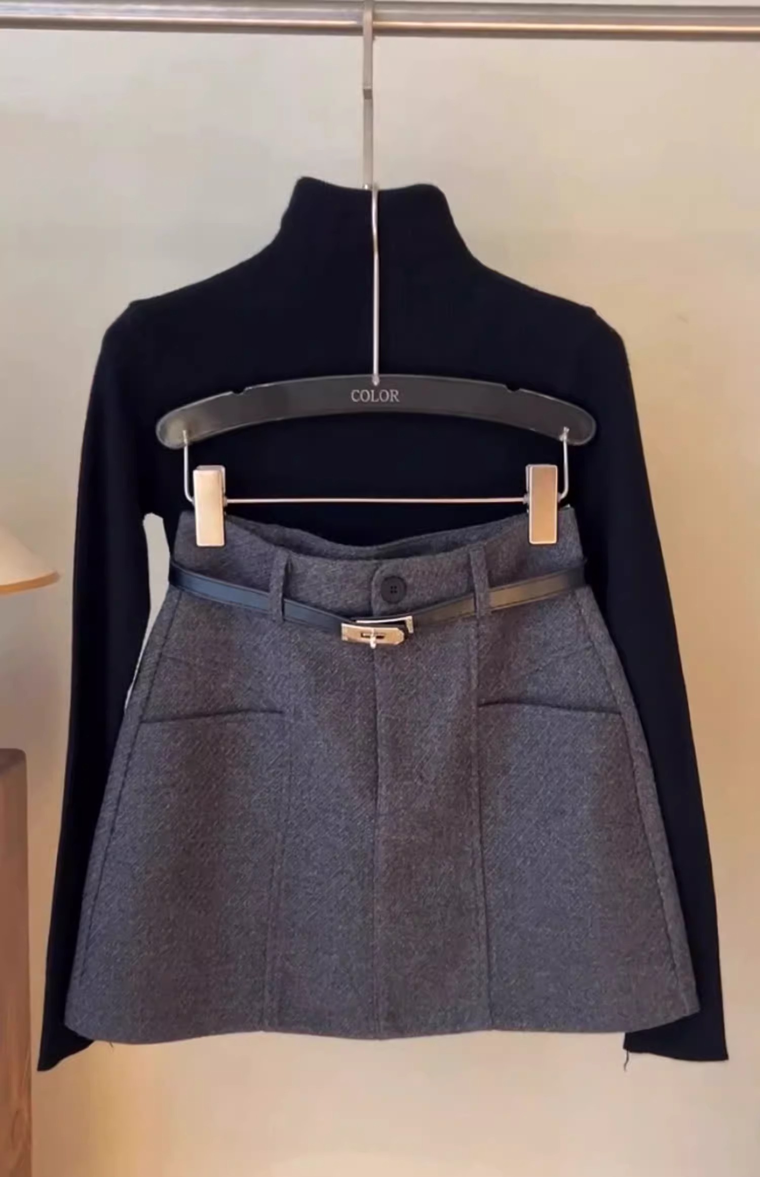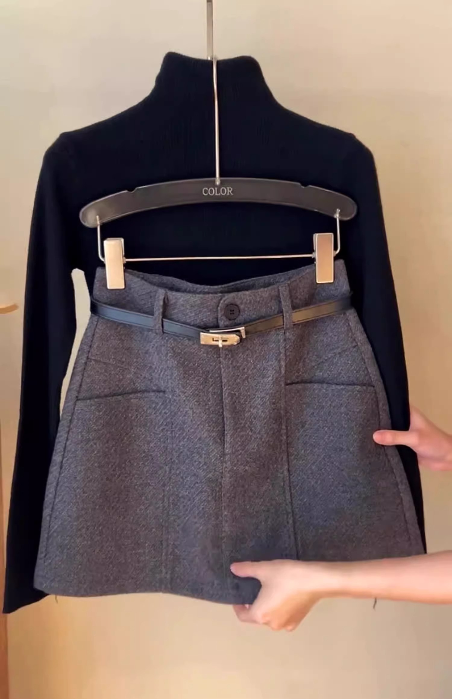 2024 가을과 겨울 모직 스커트 A 라인 스커트 높은 허리 엉덩이 스트레이트 스커트 슬림 핏 작은 유행 연령 감소
