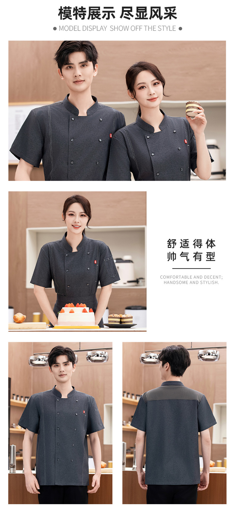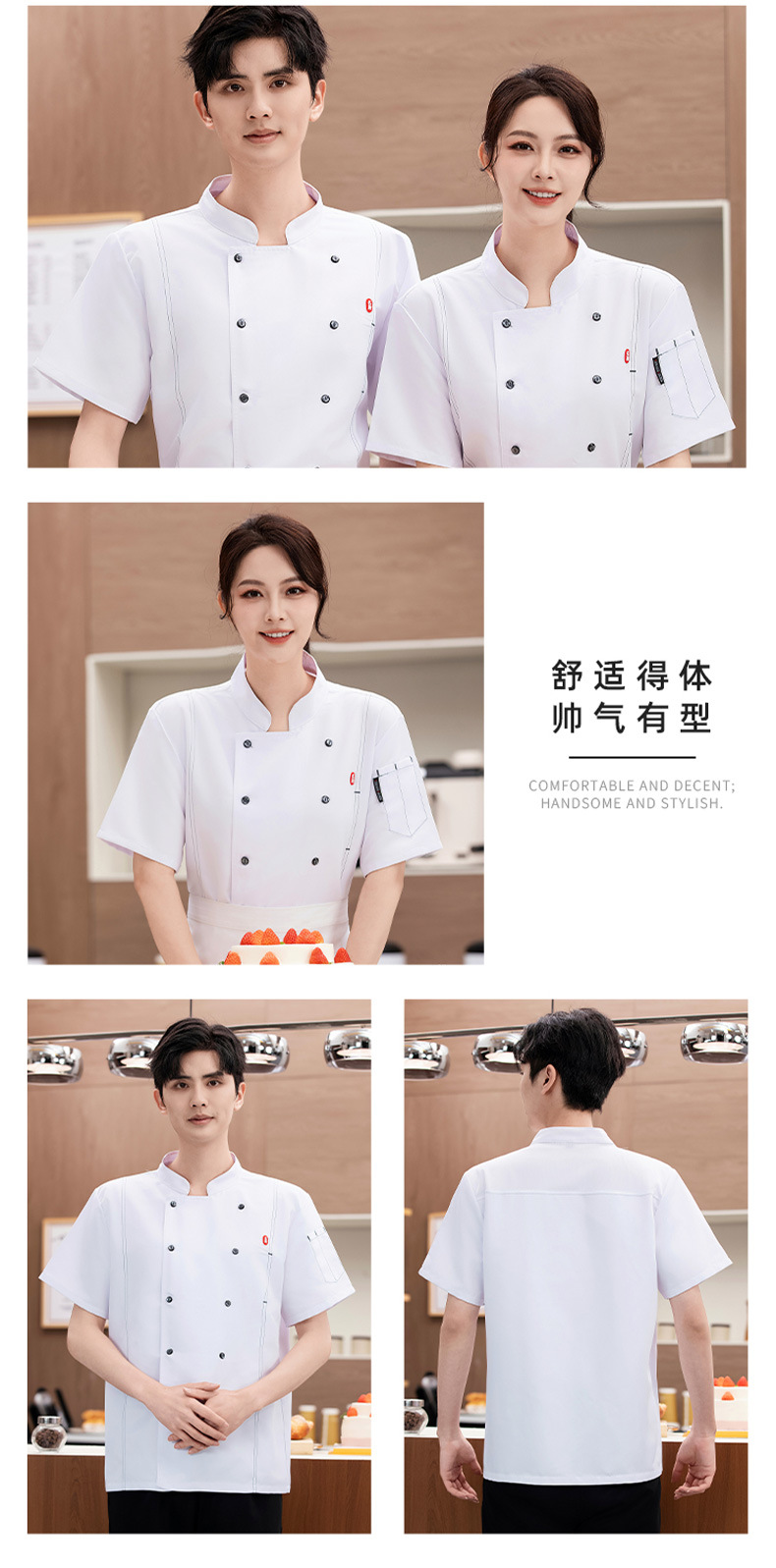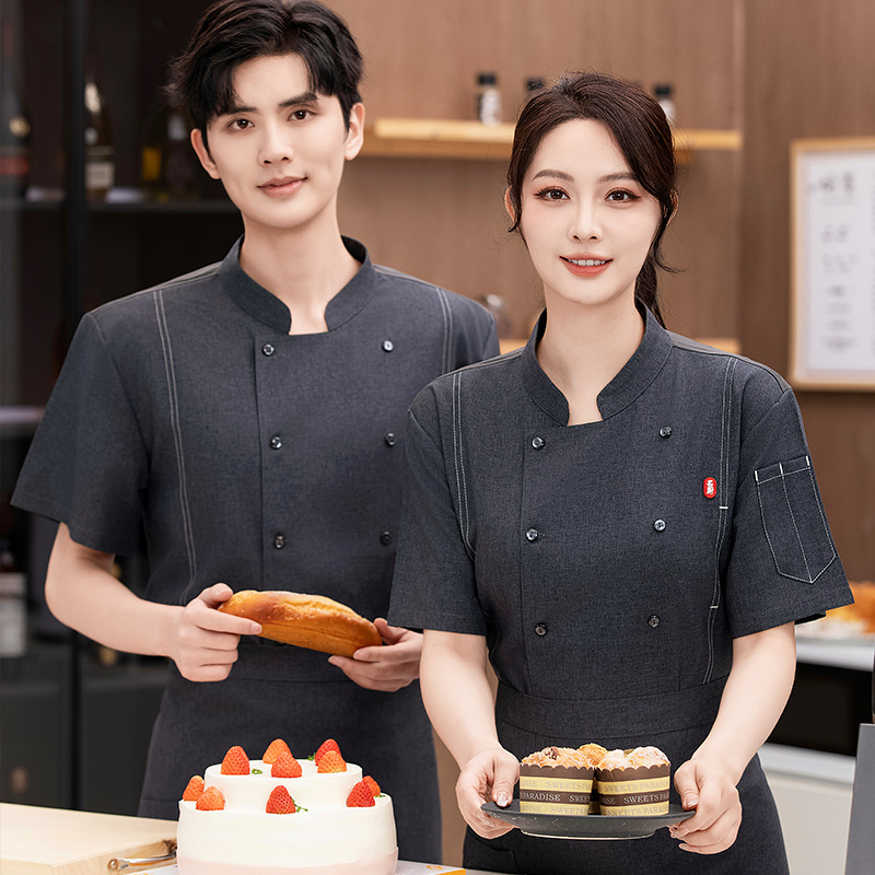 셰프 의류 반팔 남성 레스토랑 셰프 작업복 여름 세트 레스토랑 매점 레스토랑 후면 주방 작업복 여성스토어 가기