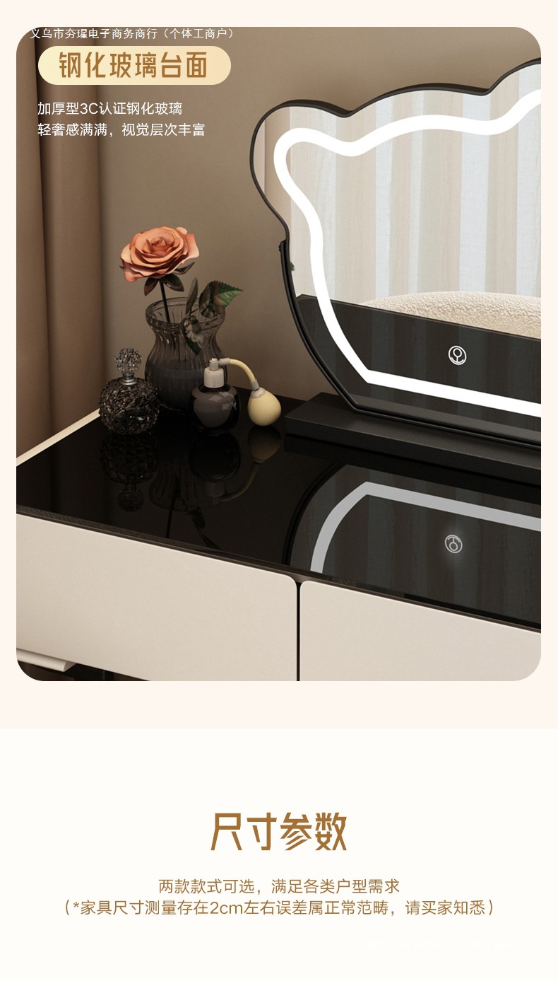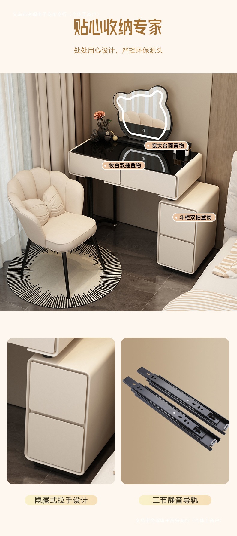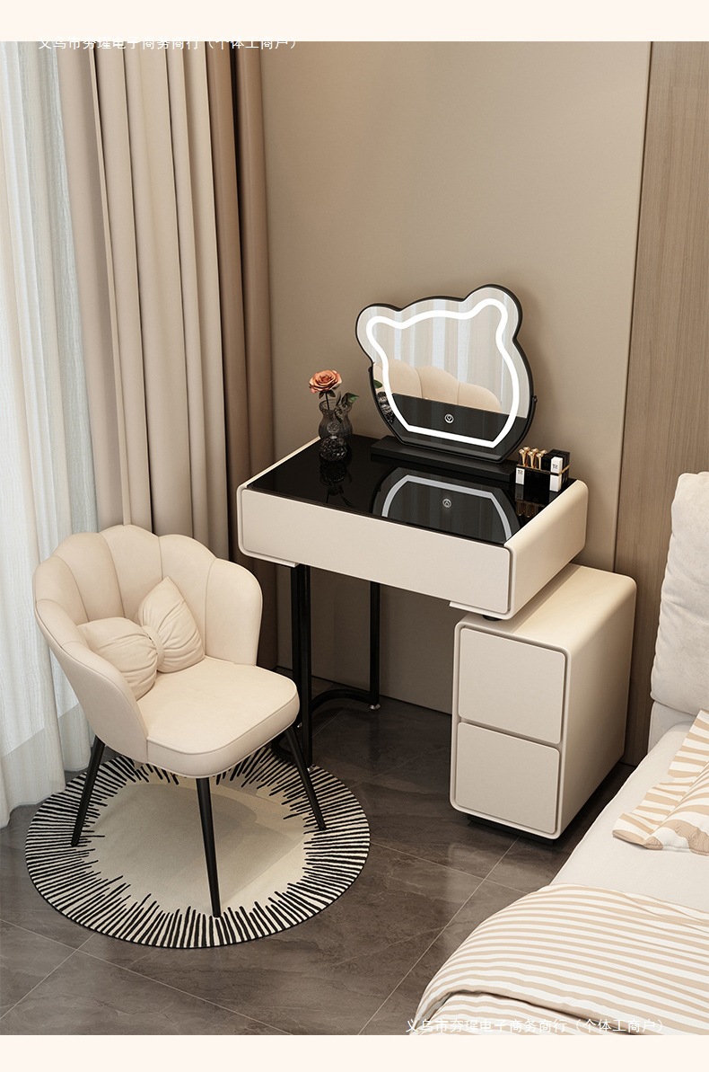 작은 아파트 침실 바위 드레싱 테이블 60CM 현대 간단한 크림 스타일 마스터 침실 유리 양동이 통합 메이크업 테이블스토어 가기