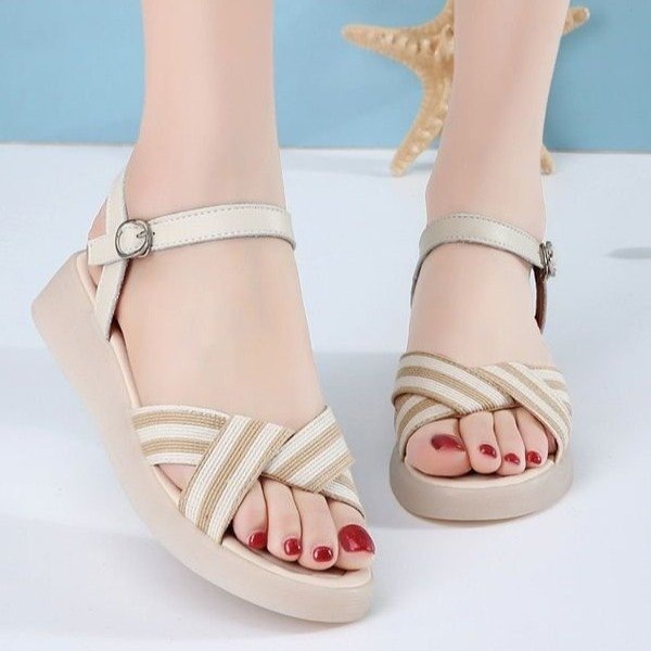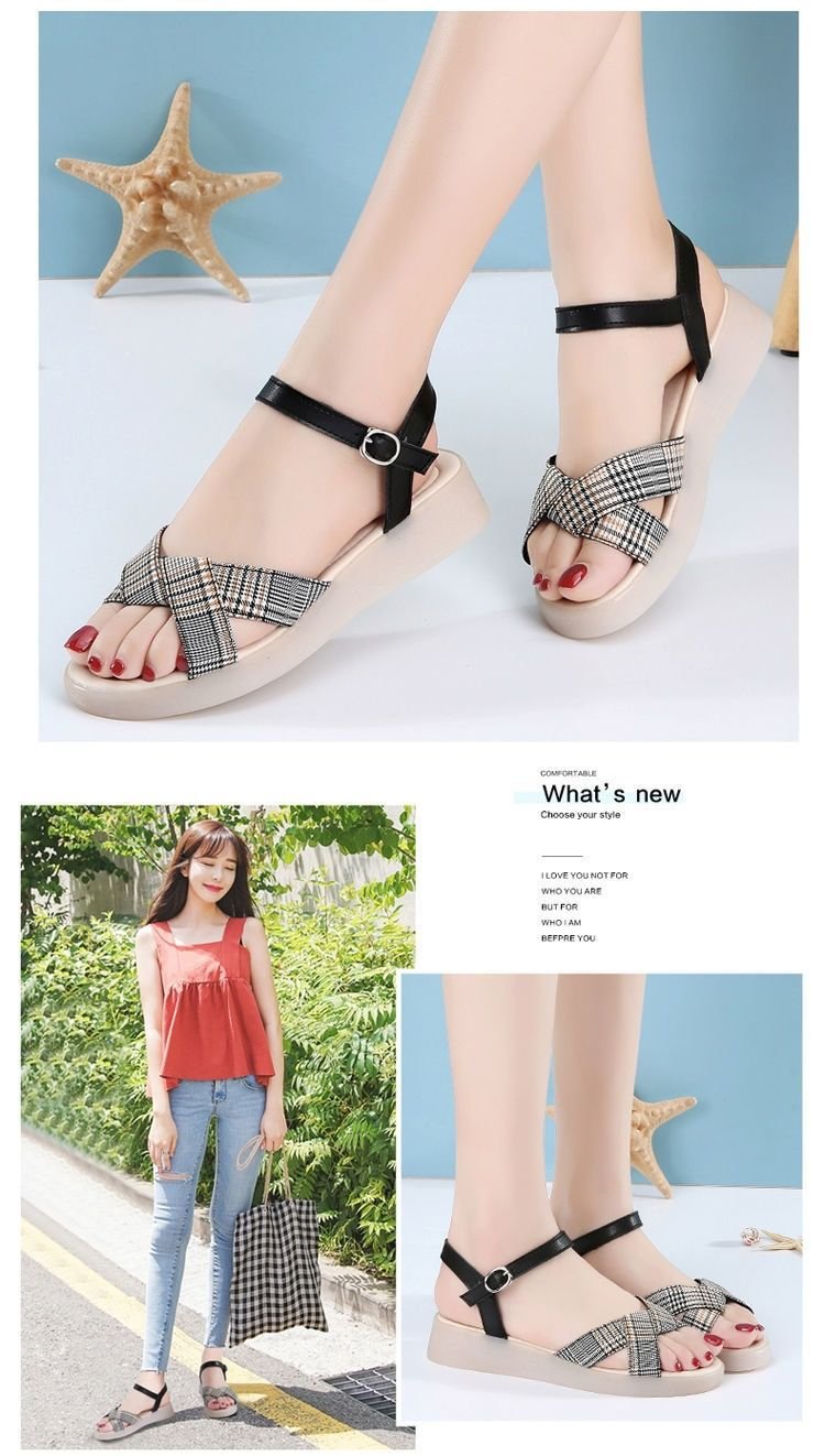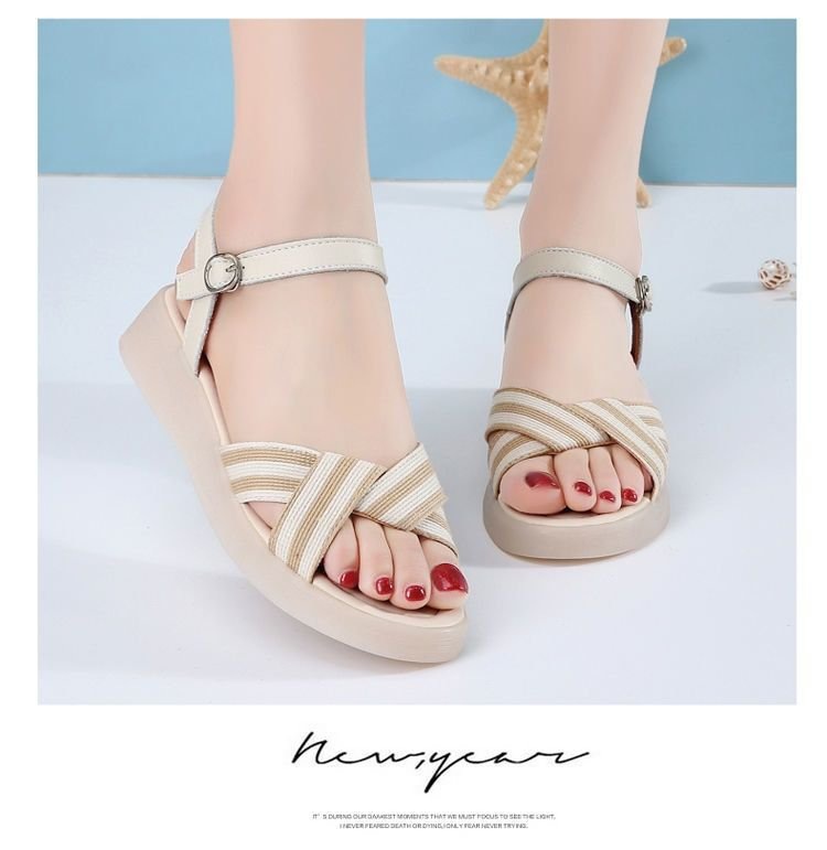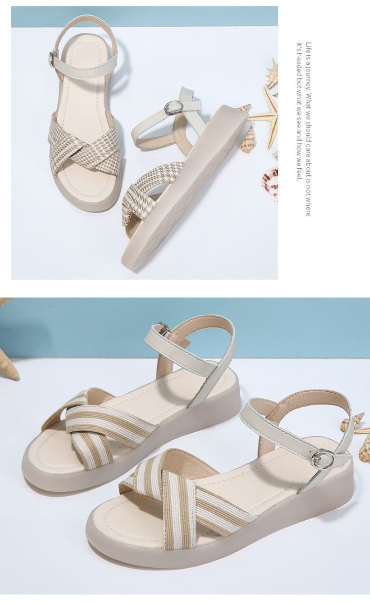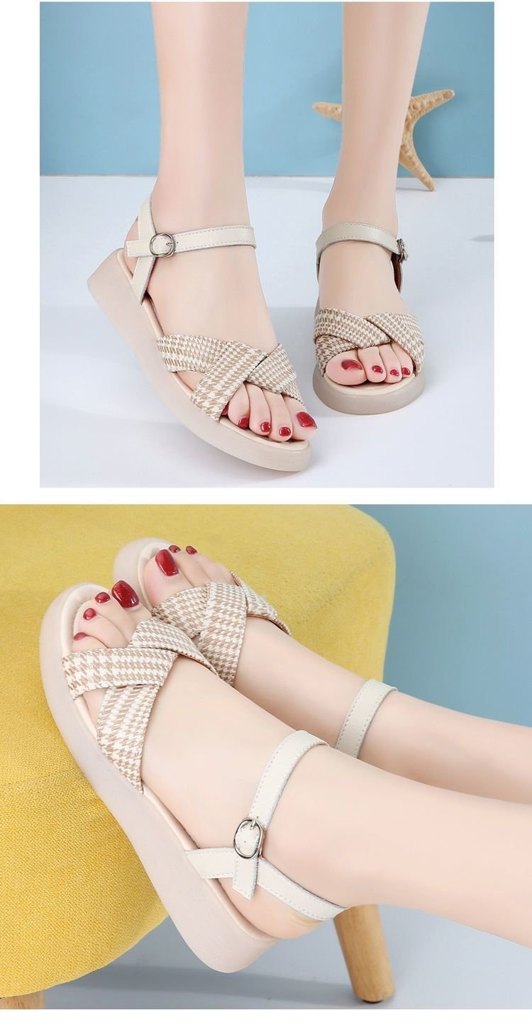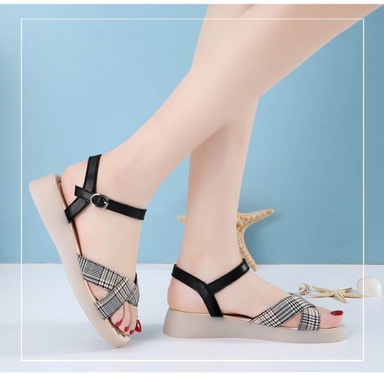 샌들 여성 여름 패션 아우터웨어 2025 새로운 플랫 캐주얼 올 매치 페어리 스타일 소프트 솔 여성용 스커트 슈즈스토어 가기
