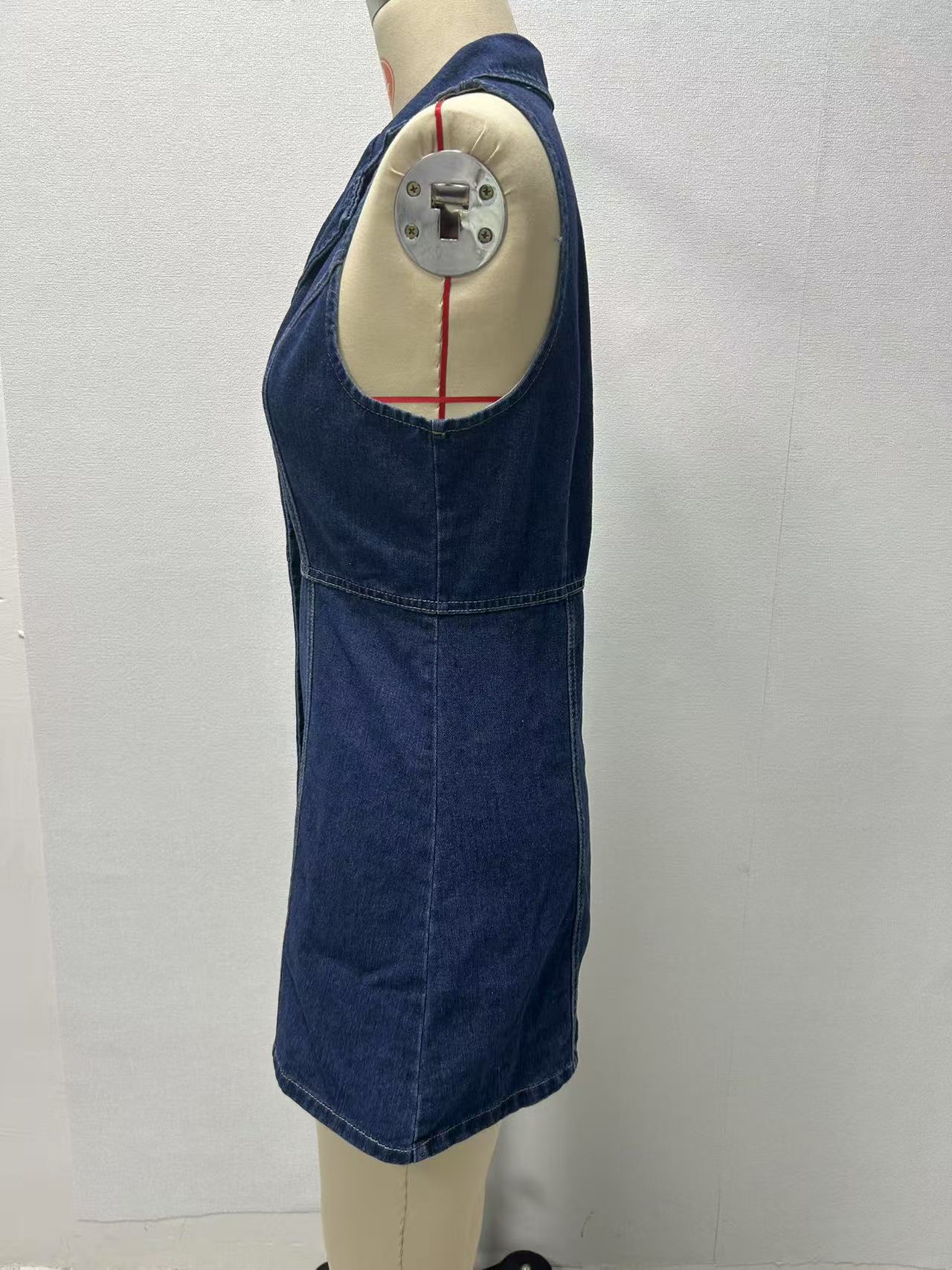2025년 신상 크로스보더 홀터넥 스트랩 여름 티타임 프렌치 스타일 슬림 롱 데님 원피스 여성복
