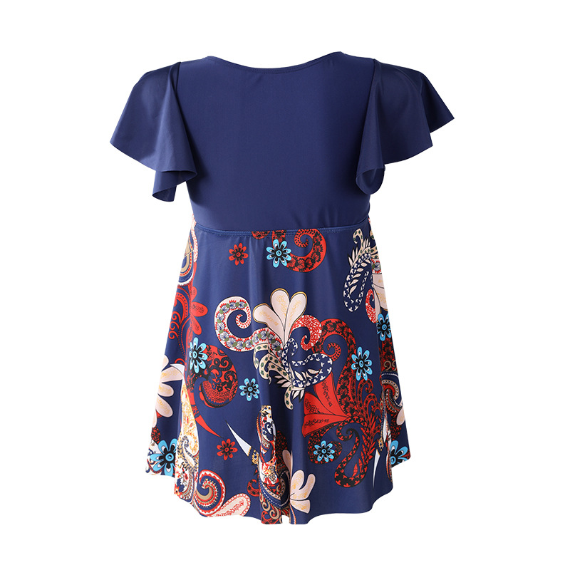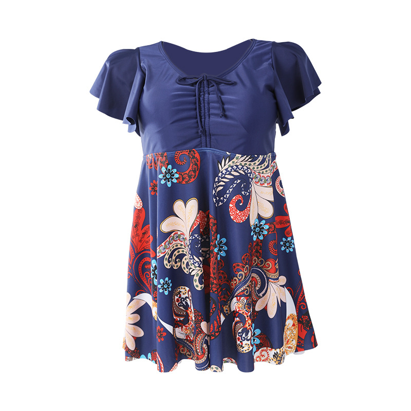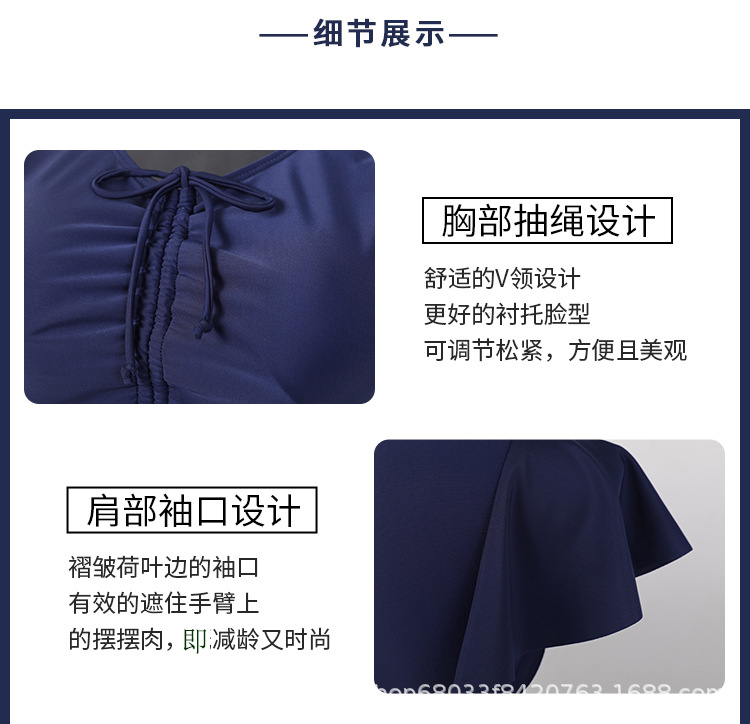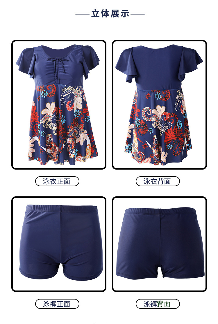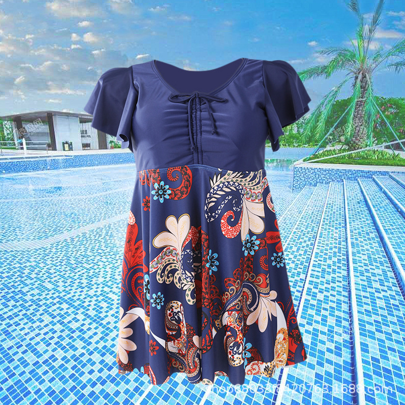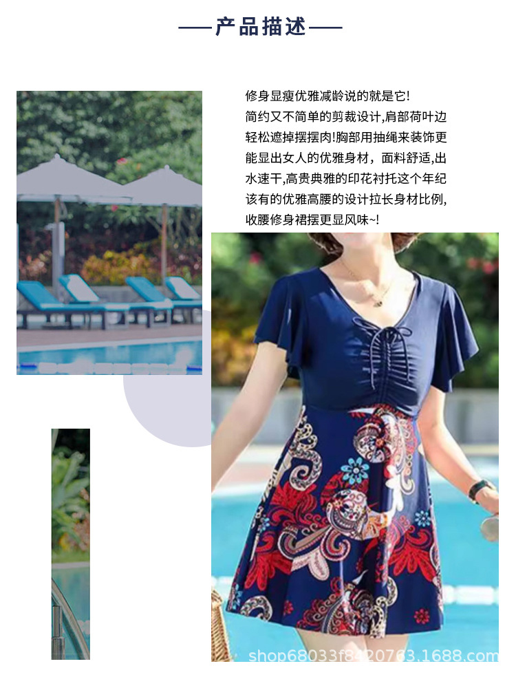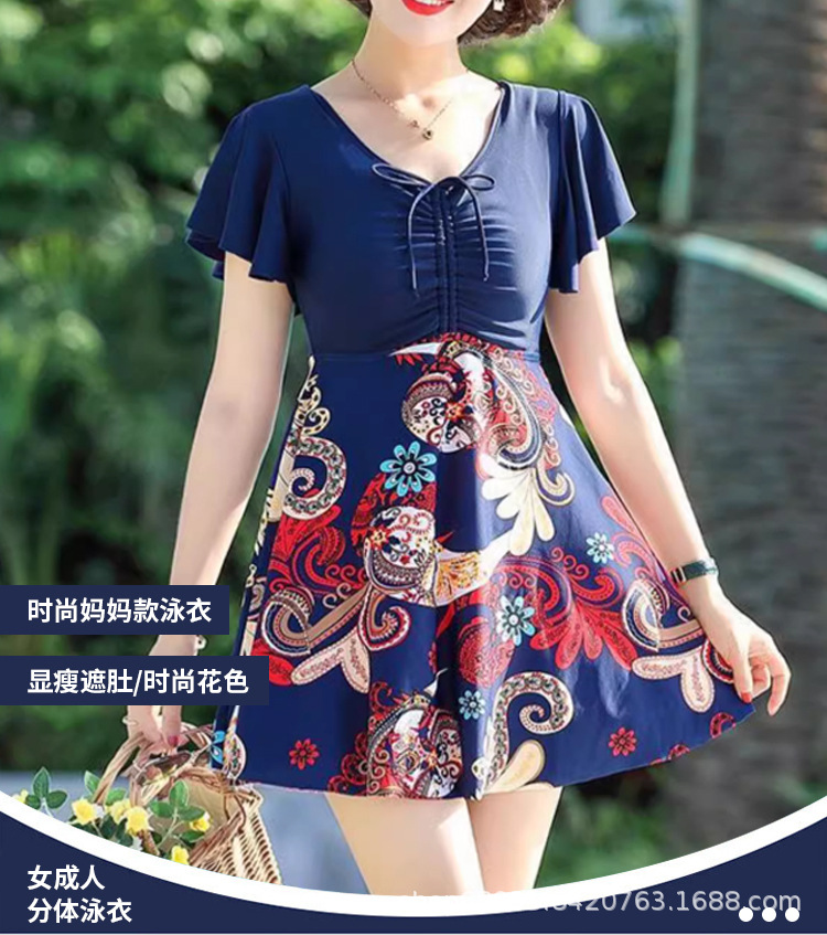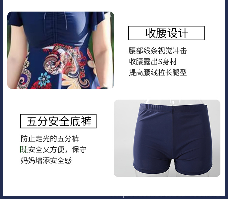 플러스 사이즈 여성 유행 반팔 엄마의 수영복 온천 수영 배꼽 덮음 슬리밍