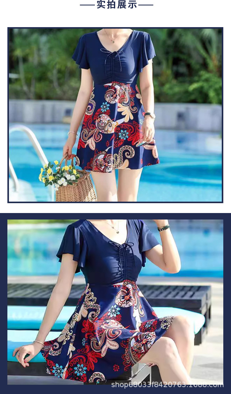 플러스 사이즈 여성 유행 반팔 엄마의 수영복 온천 수영 배꼽 덮음 슬리밍스토어 가기