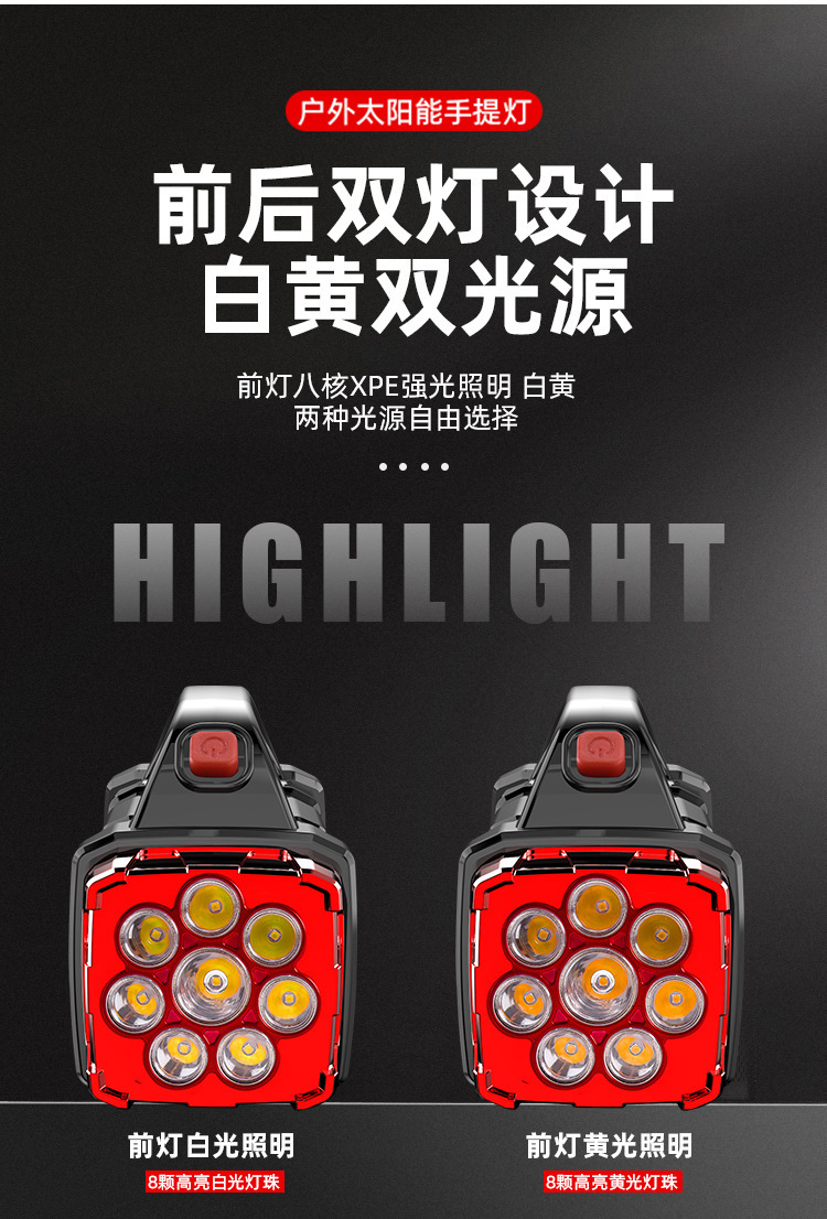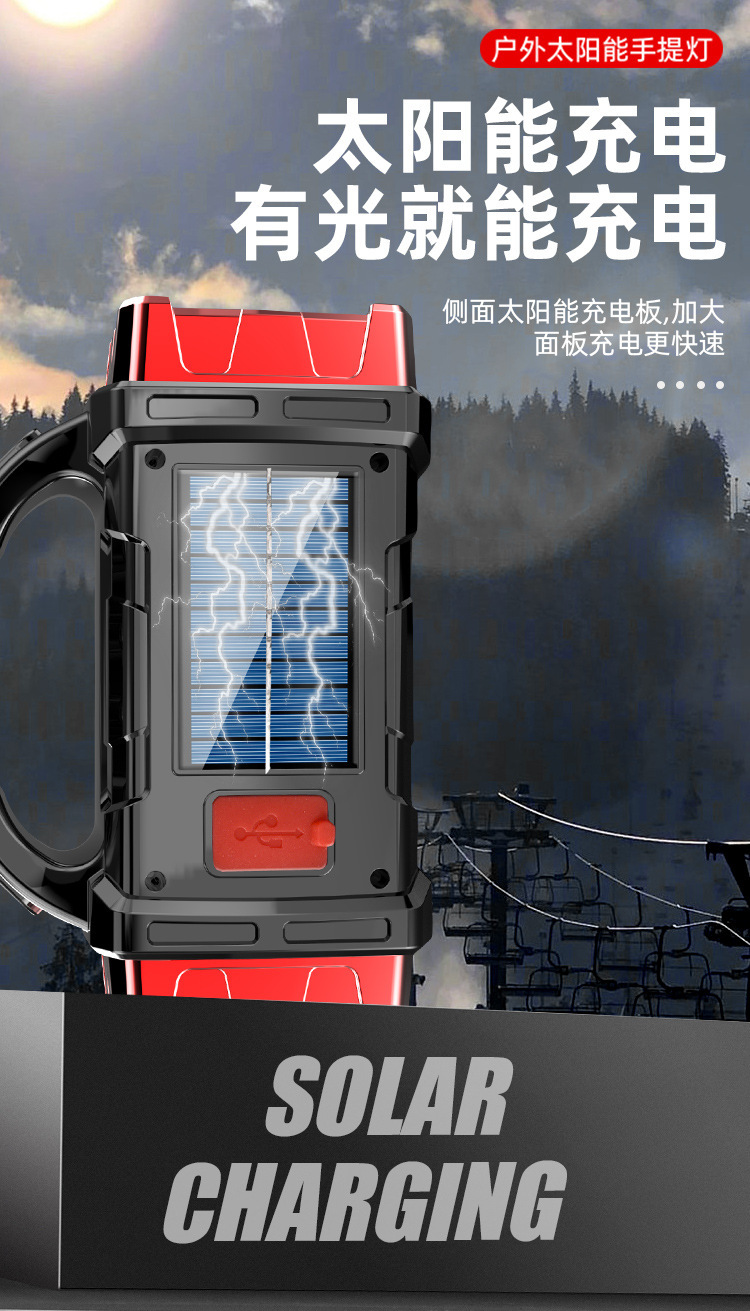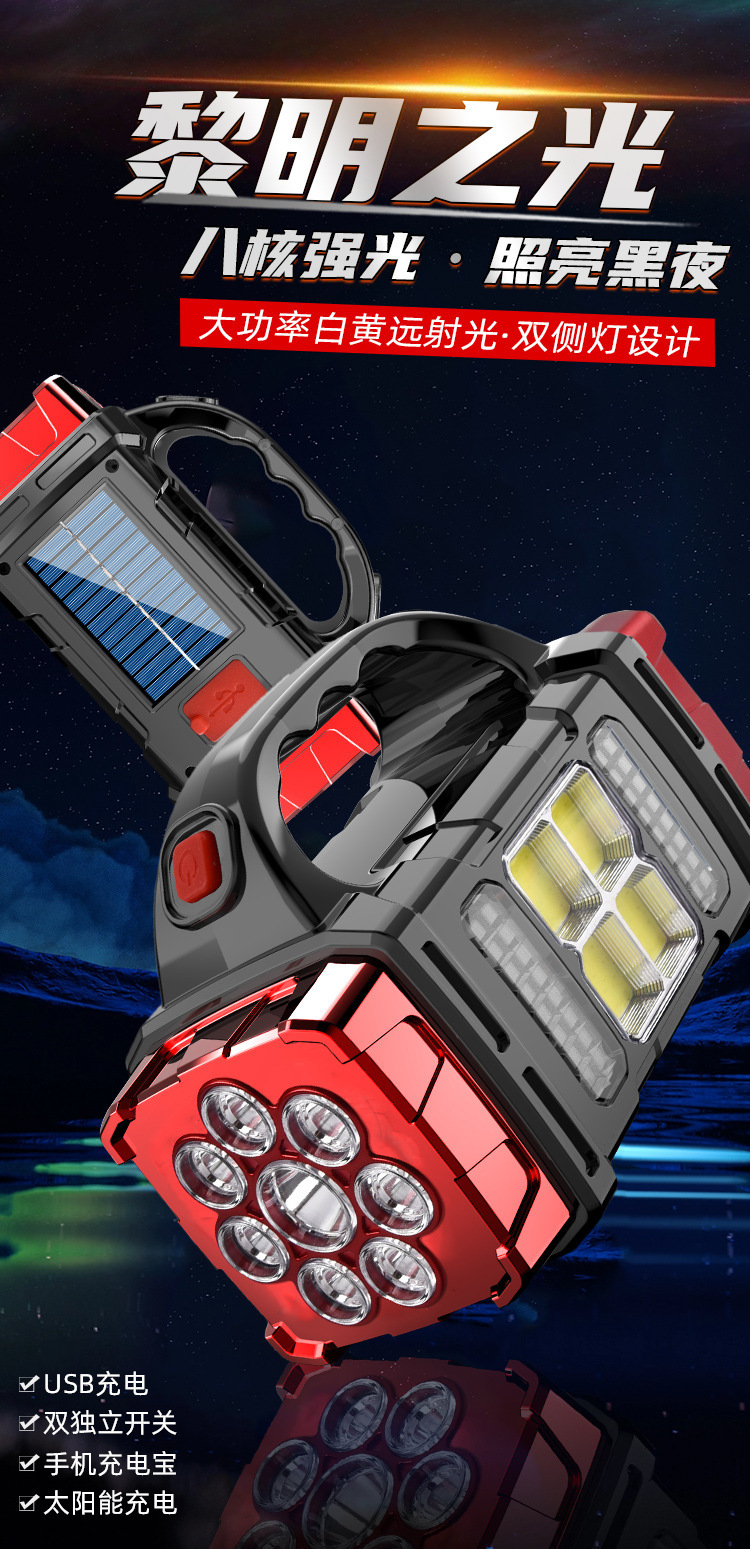 새로운 태양열 손전등 LED 다기능 휴대용 램프 USB 충전식 이중 광원 야외 강한 빛 탐조등