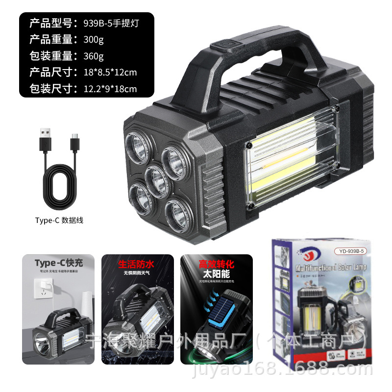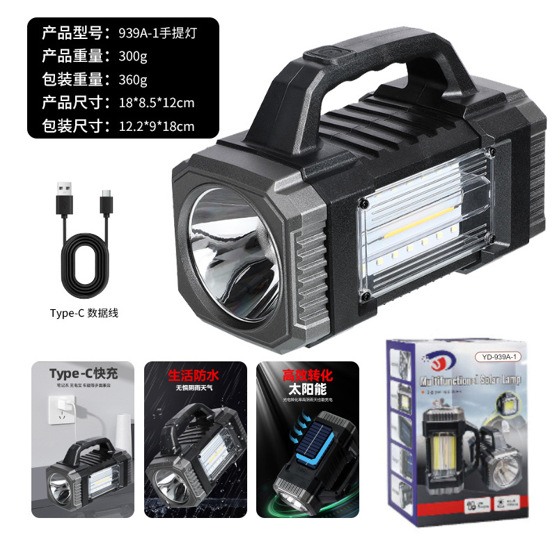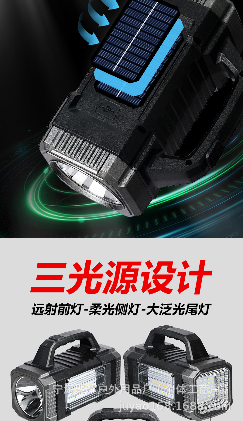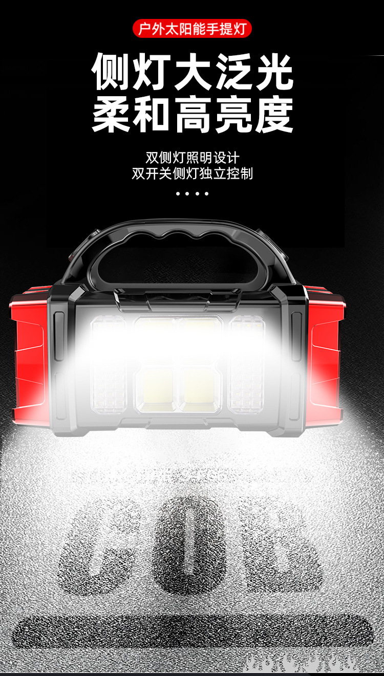 새로운 태양열 손전등 LED 다기능 휴대용 램프 USB 충전식 이중 광원 야외 강한 빛 탐조등