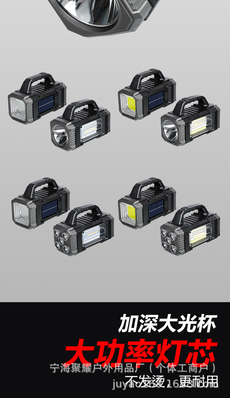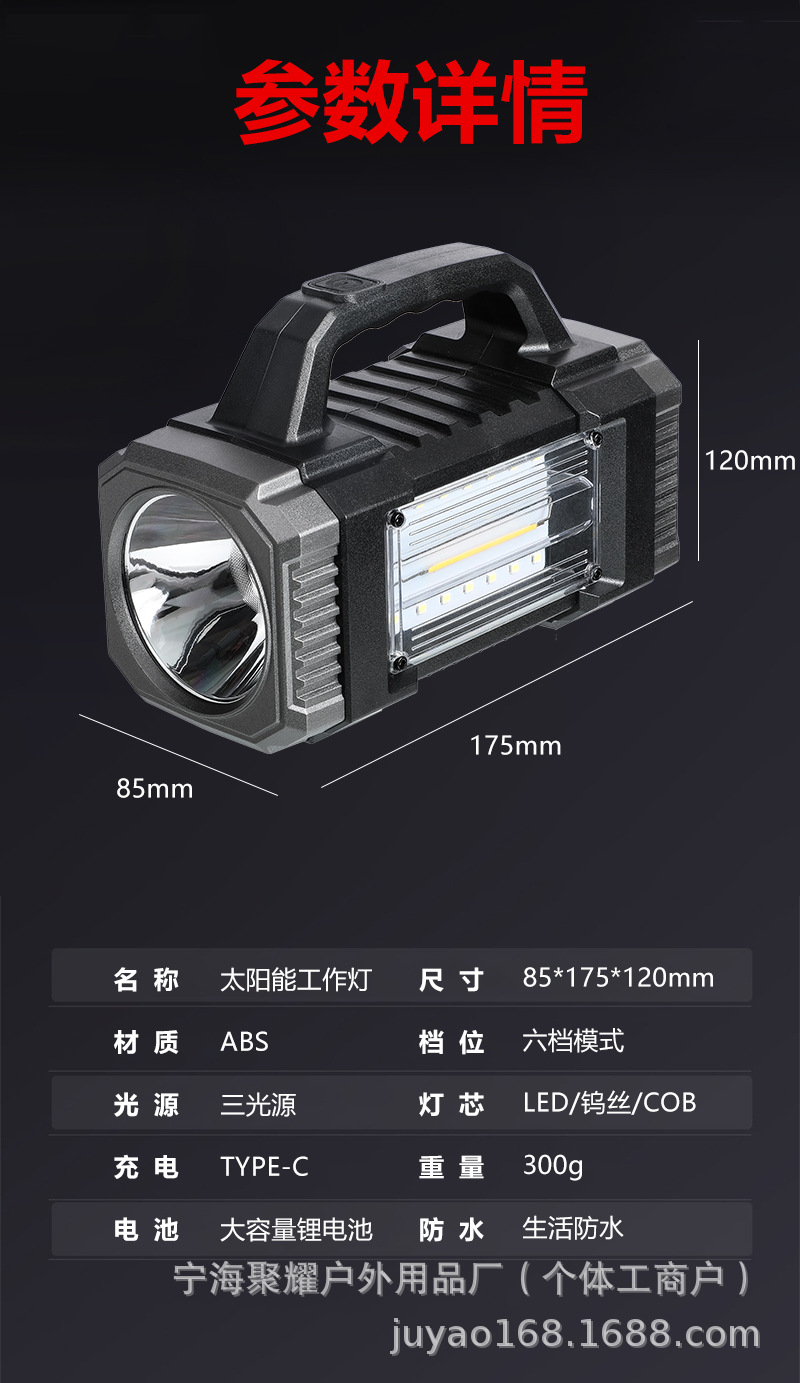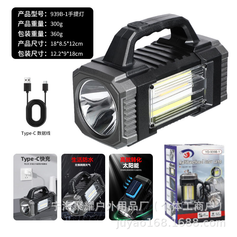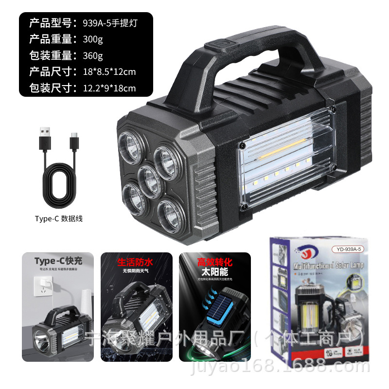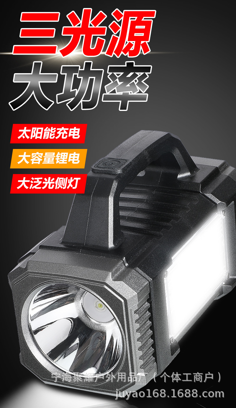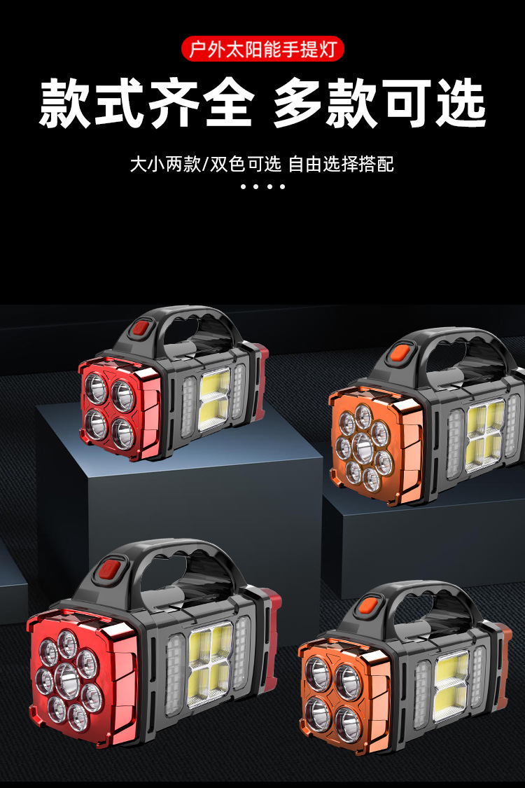 새로운 태양열 손전등 LED 다기능 휴대용 램프 USB 충전식 이중 광원 야외 강한 빛 탐조등스토어 가기