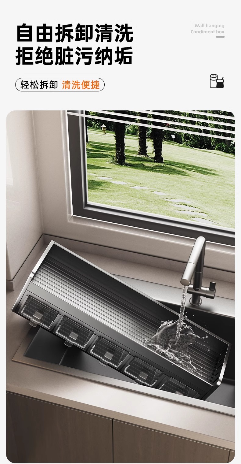 • [럭셔리 모델] 스테인레스 스틸 건 그레이●8칸 수납선반 [프리 라벨 + 스푼]