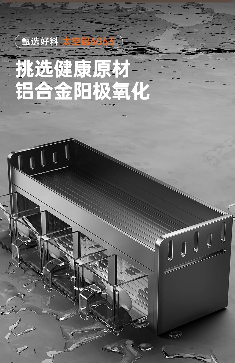 • [럭셔리 모델] 스테인레스 스틸 건 그레이●4칸 수납선반 [프리 라벨 + 스푼]