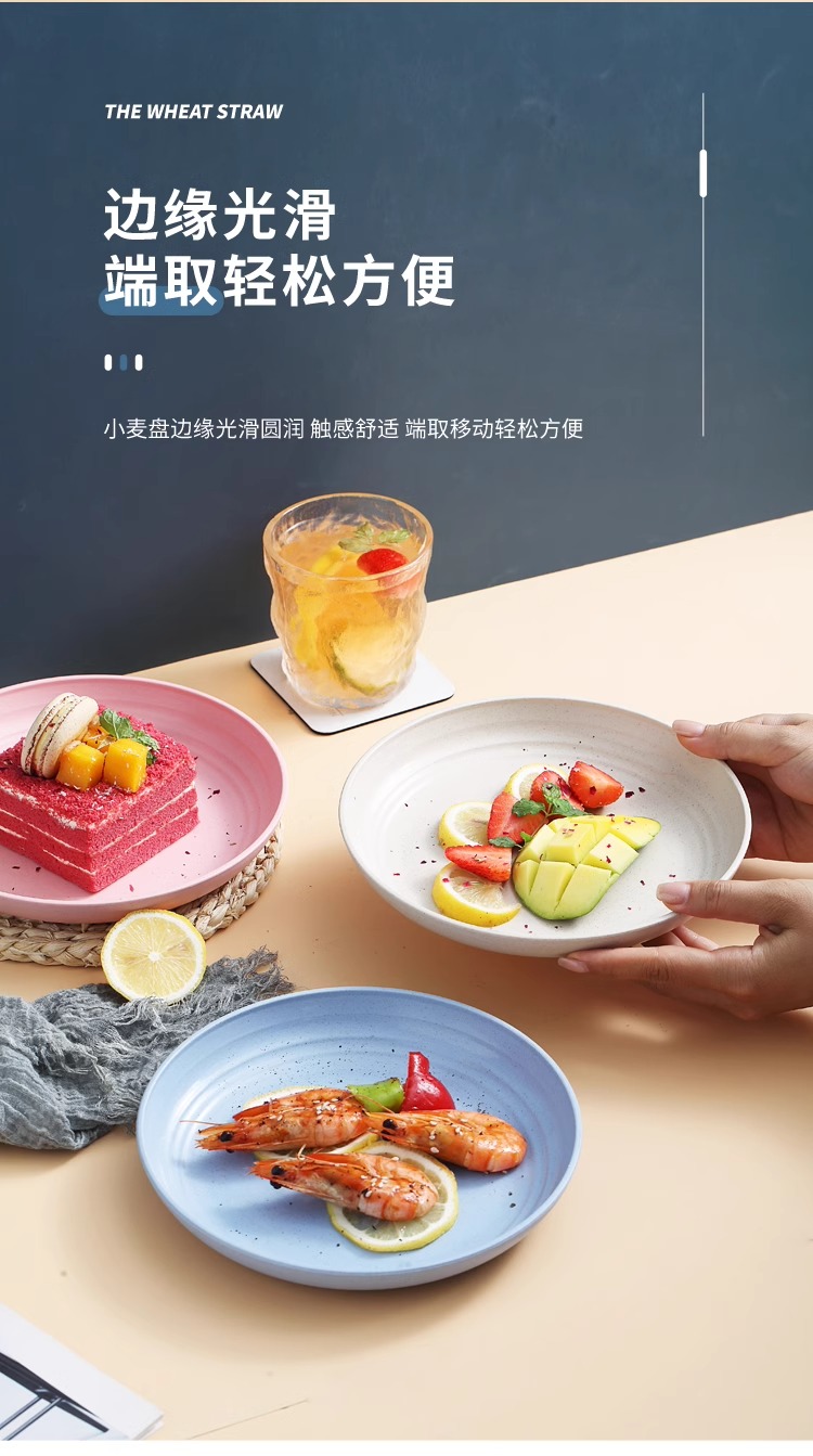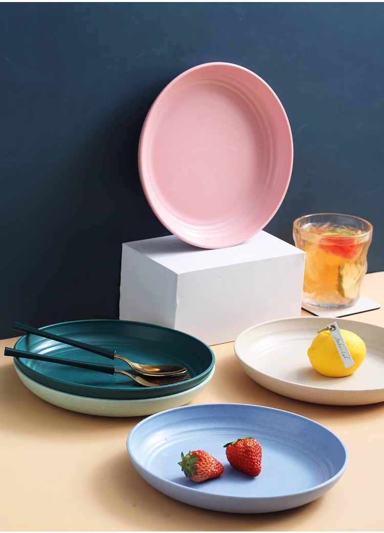플라스틱 플레이트 Ins 스타일 핫 팟 과일 플레이트 플랫 플레이트 라운드 일본 접시 가정용 조식 식기 세트