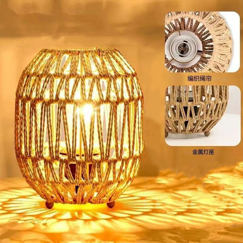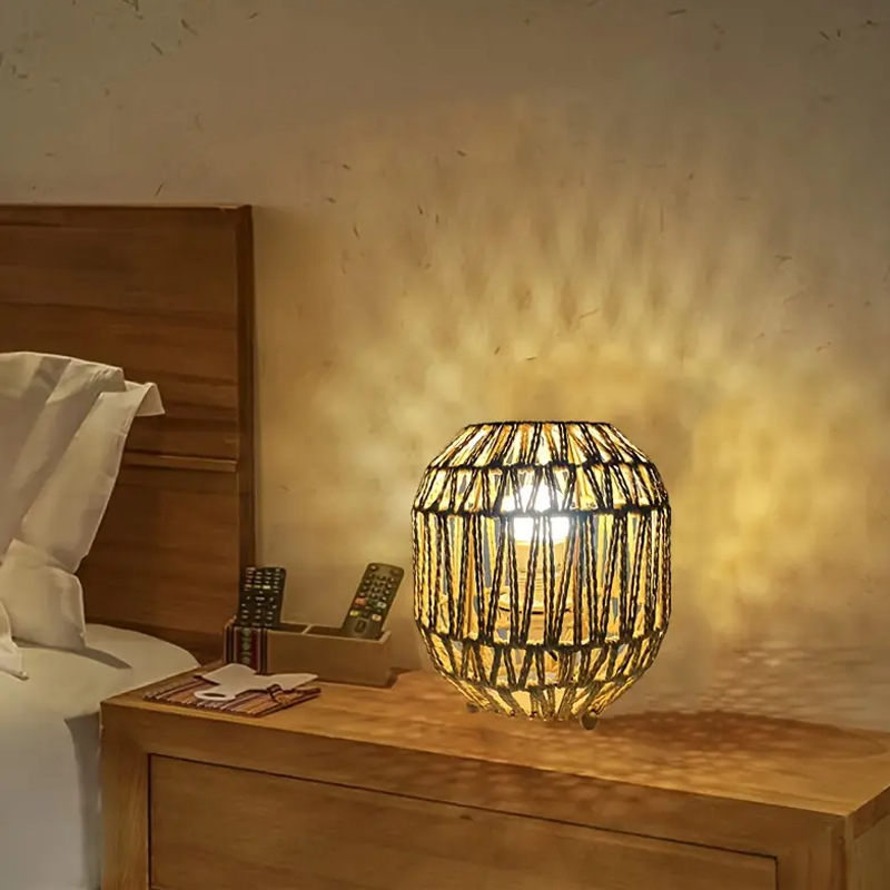 새로운 보헤미안 스타일 침대 옆 램프 장식 홈스테이 테이블 램프 창조적 인 데스크탑 장식품 등나무 야간 조명