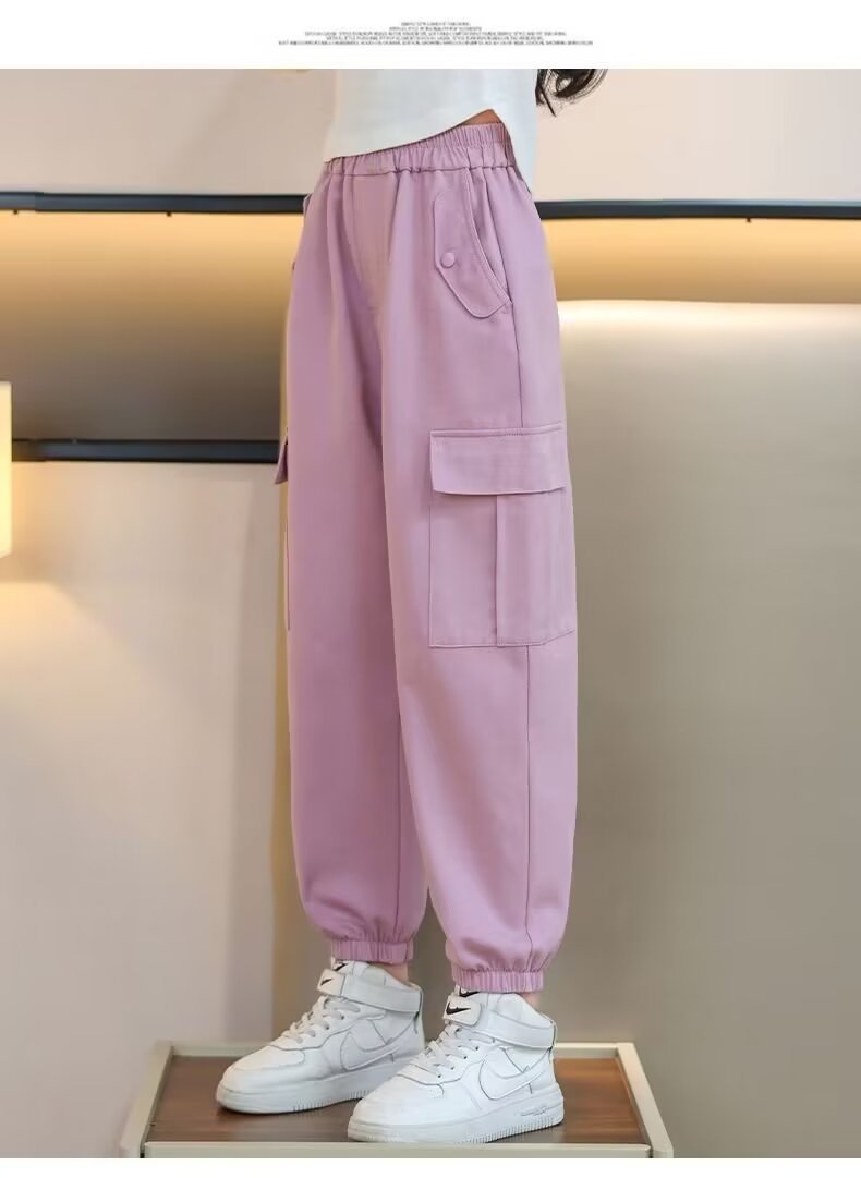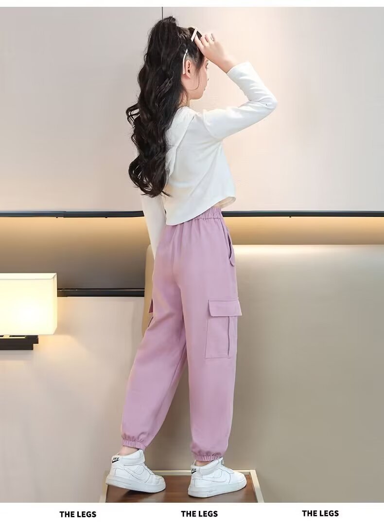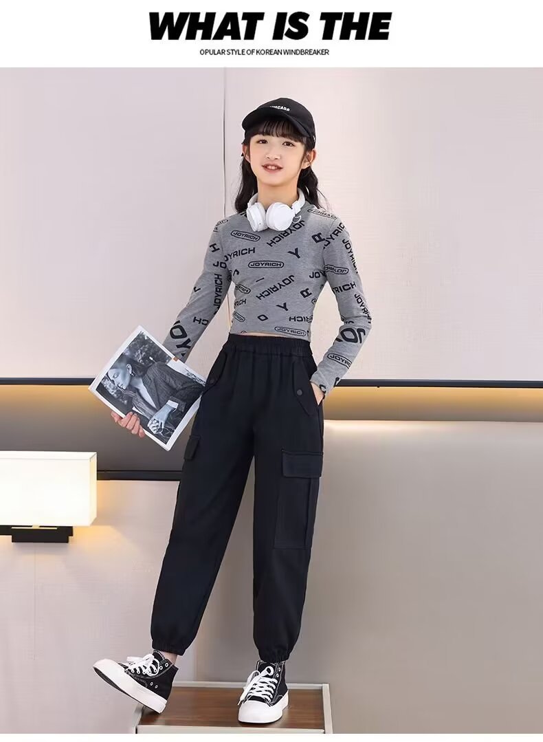 소녀 바지 봄과 가을 얇은 2025 새로운 가을 착용 스포츠 바지 바지 바지 여성용 큰 어린이 크레인 바지 유행 가을스토어 가기