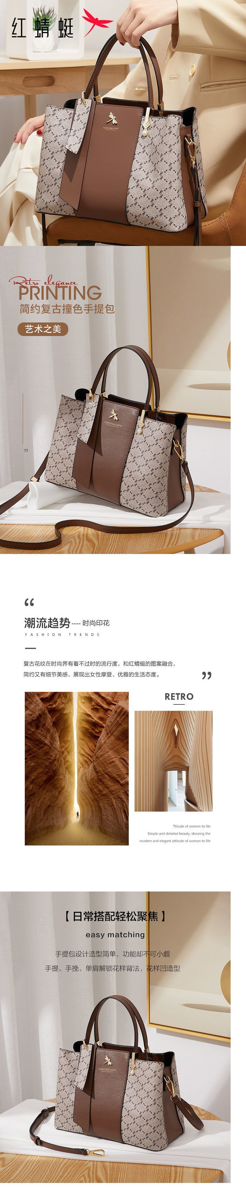 轻奢包包女2024新款复古印花大容量托特包洋气百搭手提包女代发
