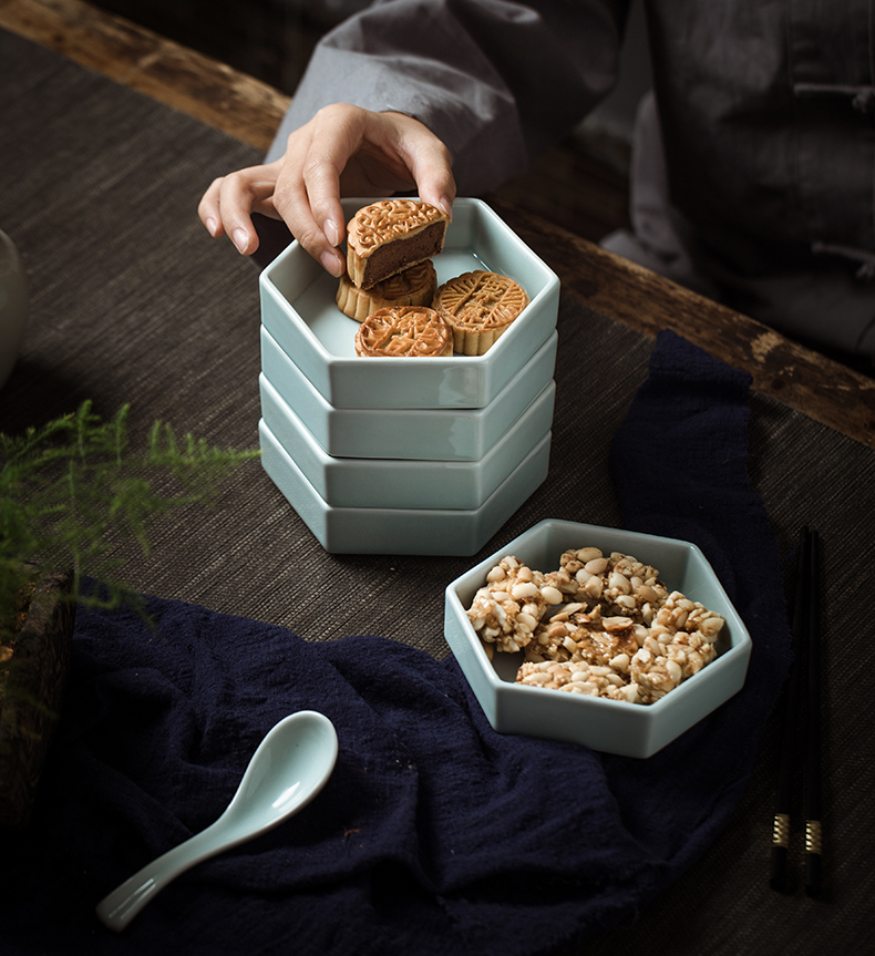 간식, 말린 과일, 간단한 스타일의 스낵, 새로운 중국식 도자기 식기, 차가운 요리, 그림자 녹색 접시, 작은 접시