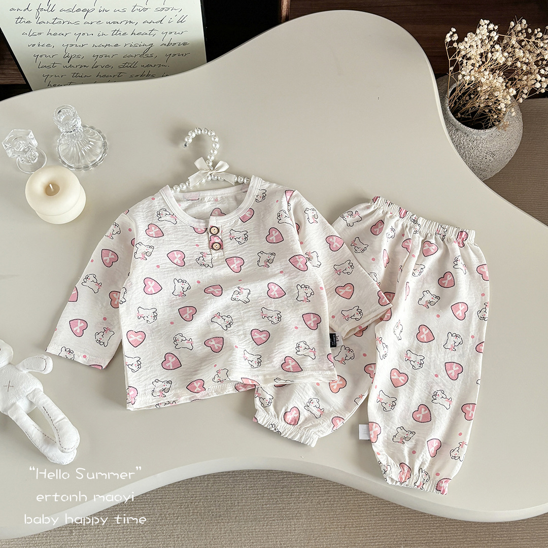 2026년 신상 클라우드 코튼 아동 홈웨어 잠옷, 남아 여아 프린트 잠옷 세트, 캐주얼 투피스 세트