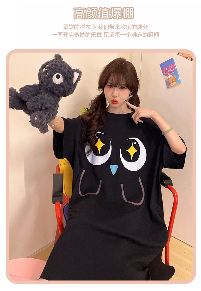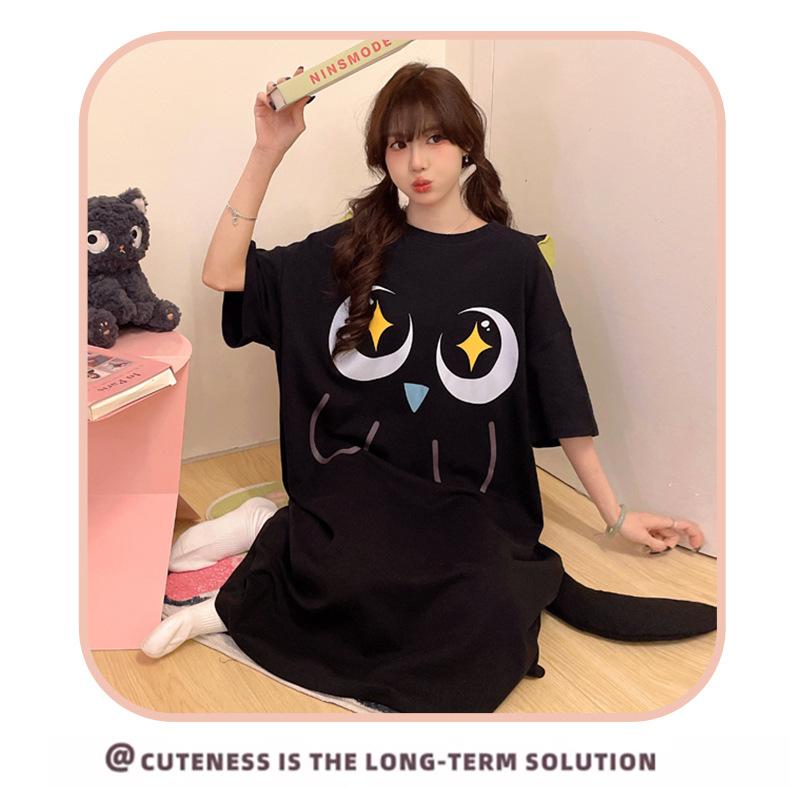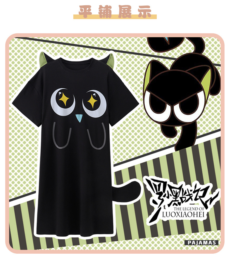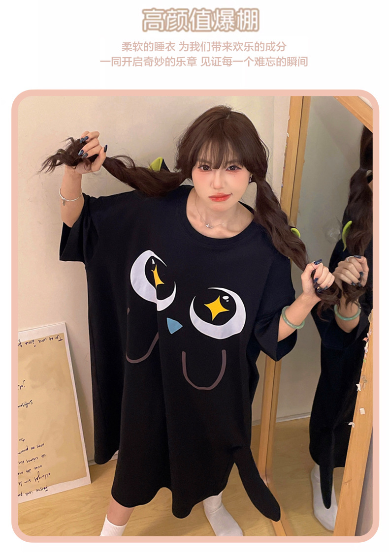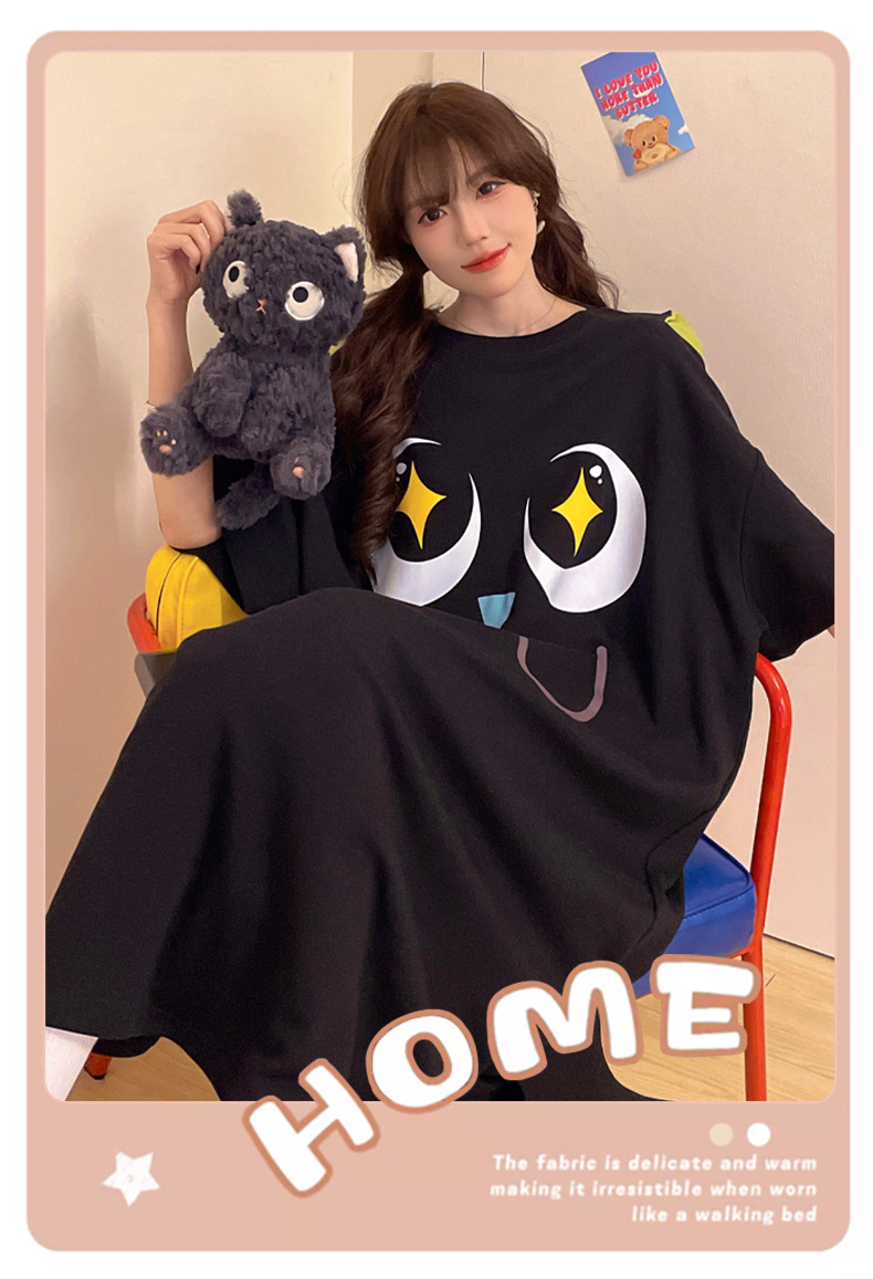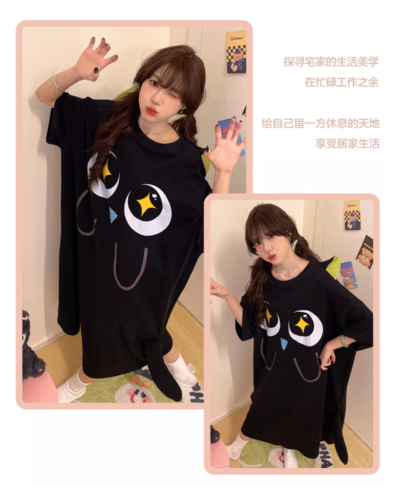 만화 Luo 작은 검은 잠옷 긴 여성의 여름 짧은 소매면 얇은 귀여운 플러스 사이즈 잠옷은 집 옷 밖에서 입을 수 있습니다.스토어 가기