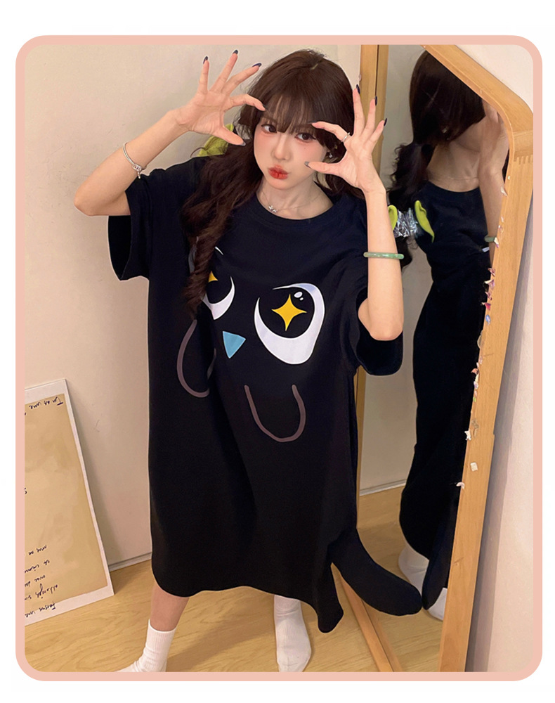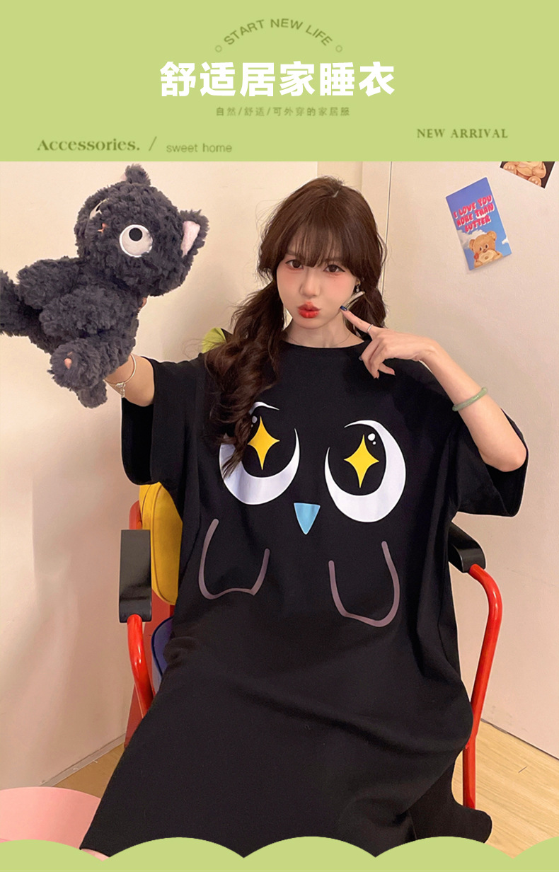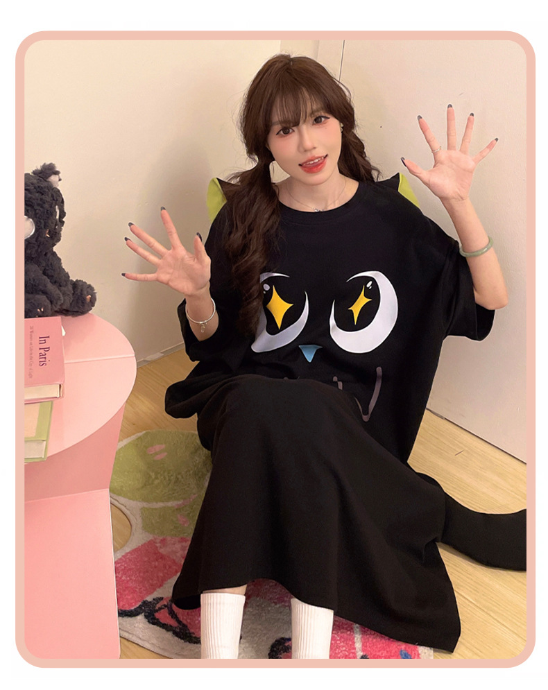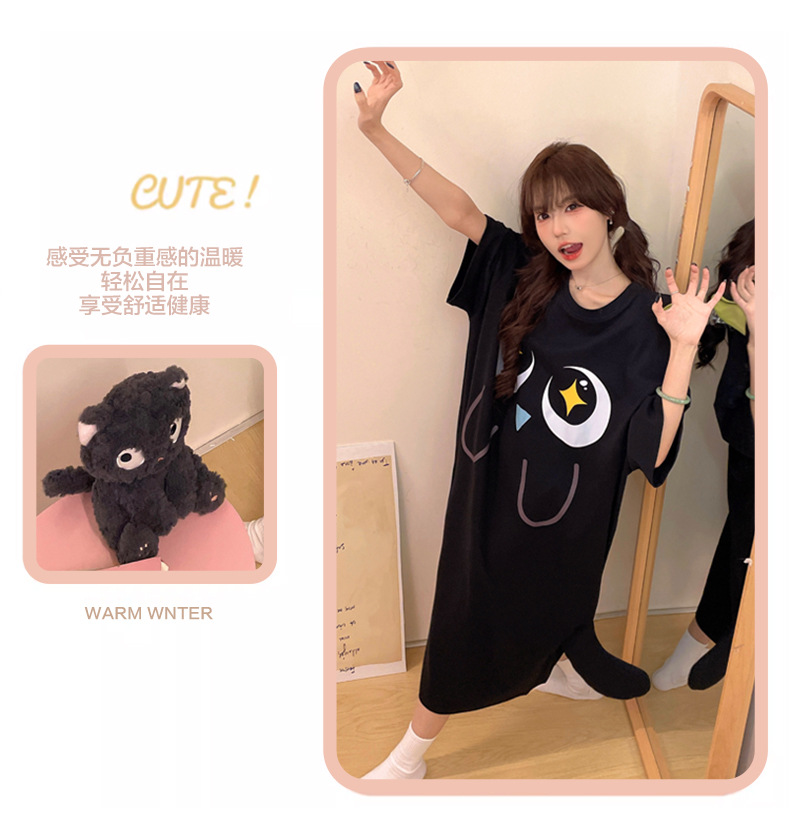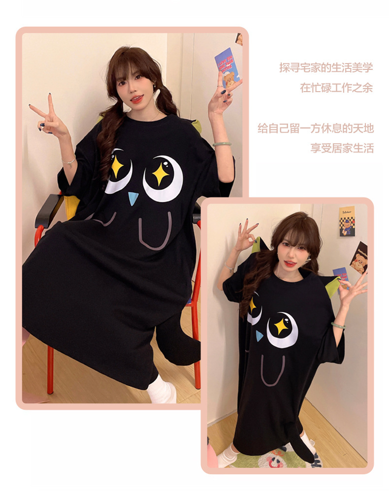 만화 Luo 작은 검은 잠옷 긴 여성의 여름 짧은 소매면 얇은 귀여운 플러스 사이즈 잠옷은 집 옷 밖에서 입을 수 있습니다.스토어 가기