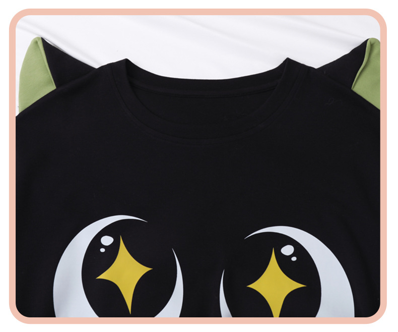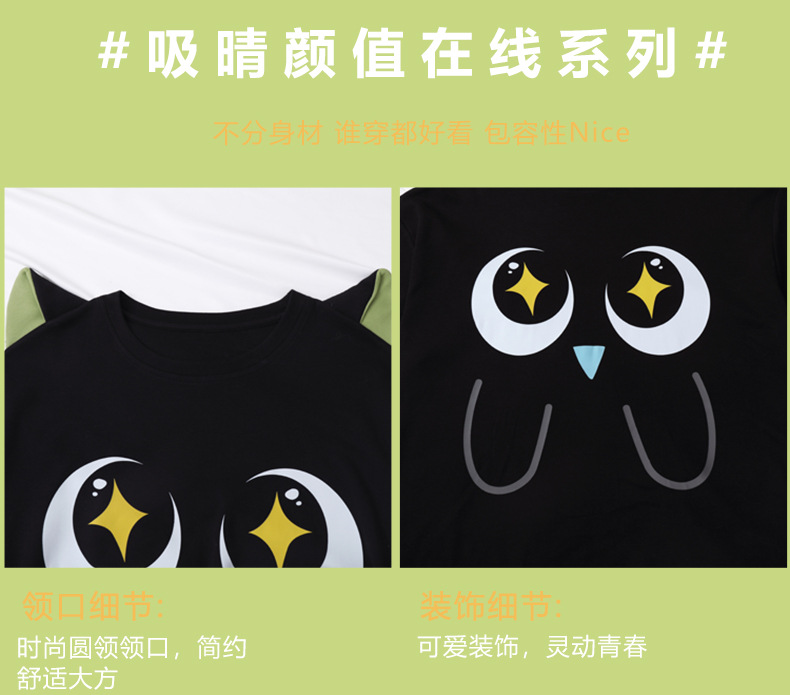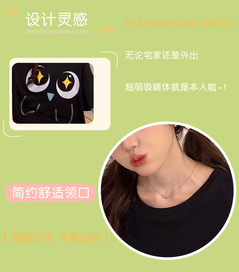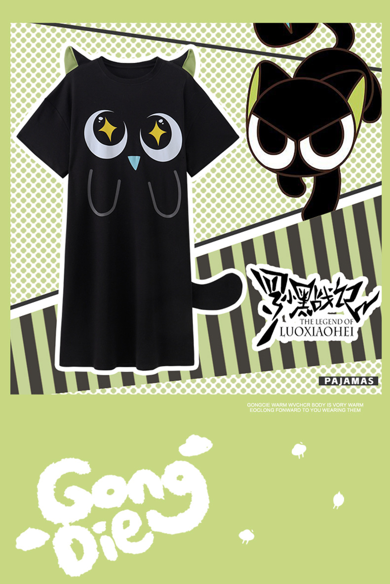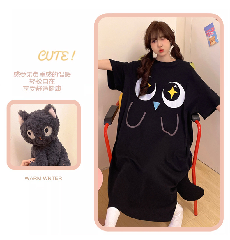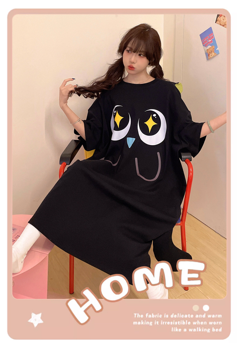 만화 Luo 작은 검은 잠옷 긴 여성의 여름 짧은 소매면 얇은 귀여운 플러스 사이즈 잠옷은 집 옷 밖에서 입을 수 있습니다.스토어 가기
