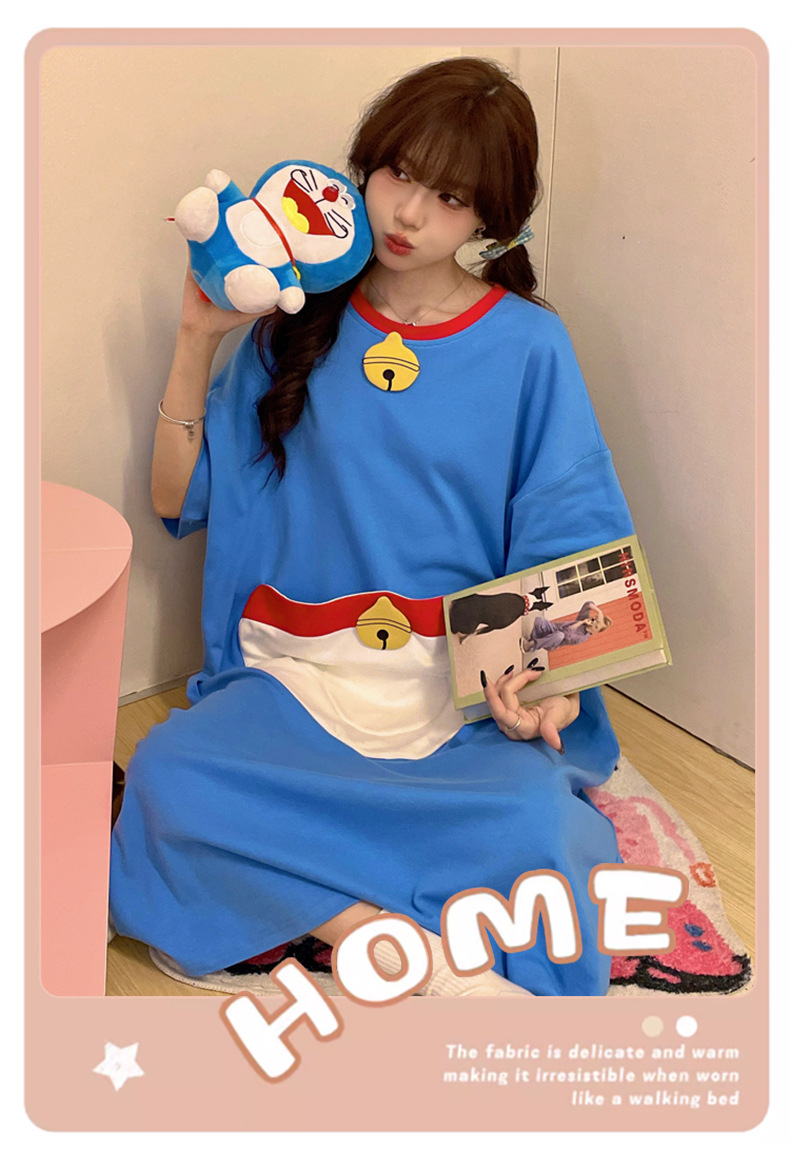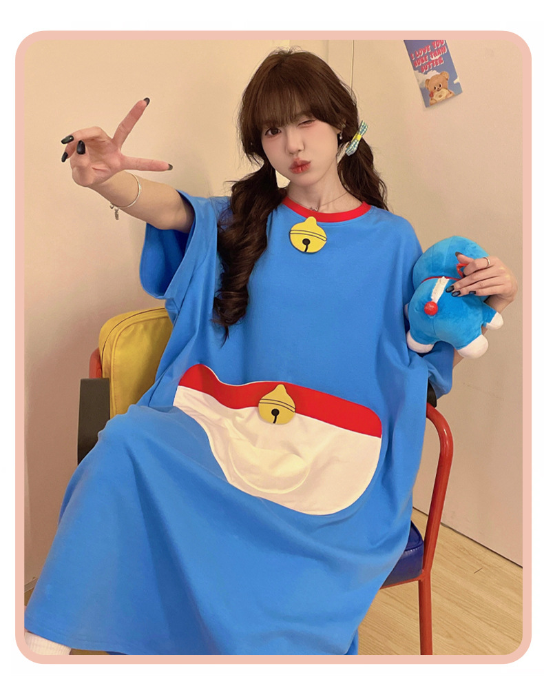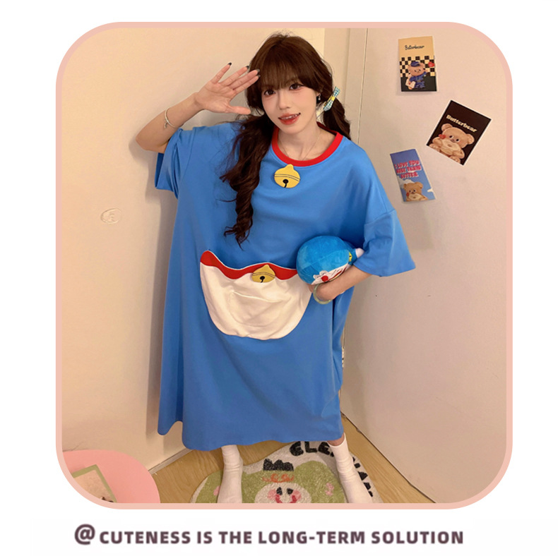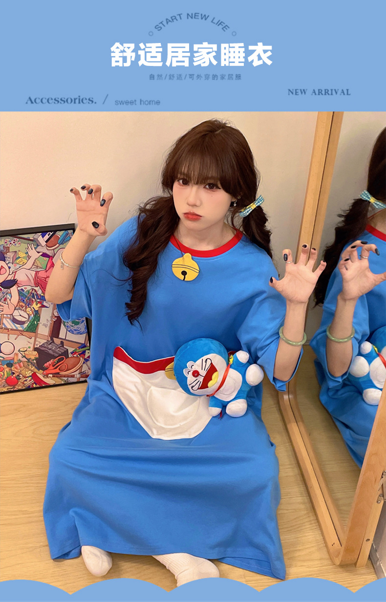 만화 딩당 고양이 잠옷 여성 여름 반소매 코튼 얇은 귀여운 플러스 사이즈 잠옷 겉옷스토어 가기