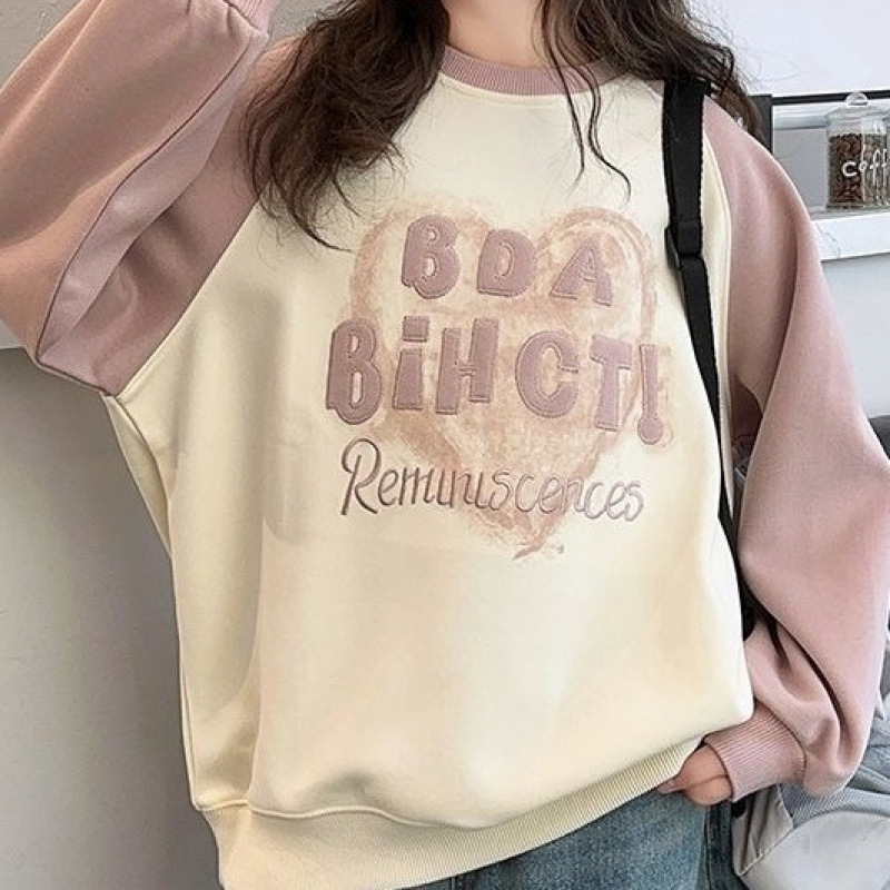 • 핑크 러브 스웨트셔츠와 벨벳