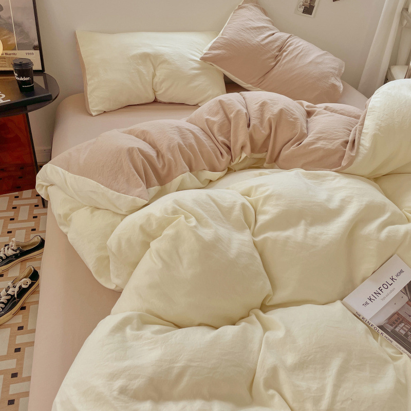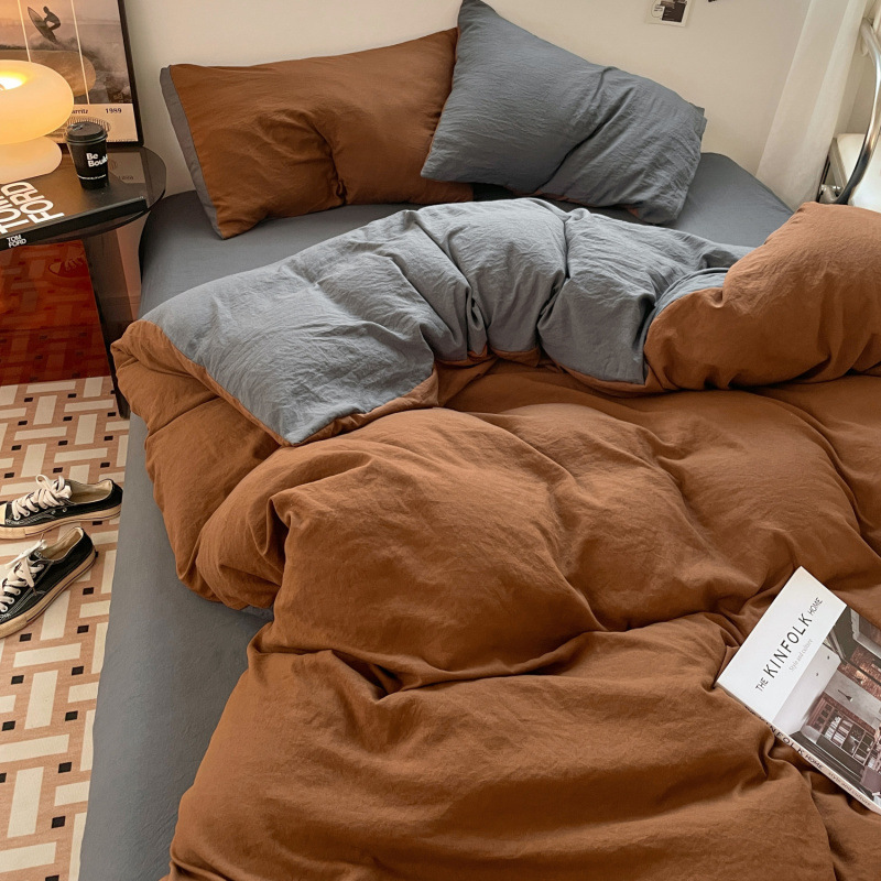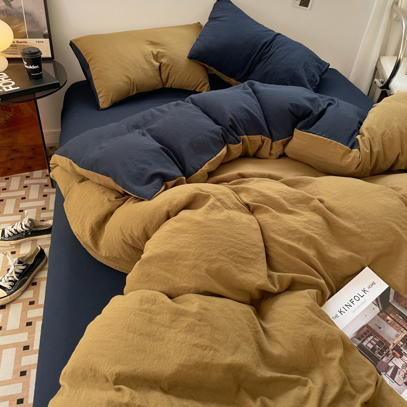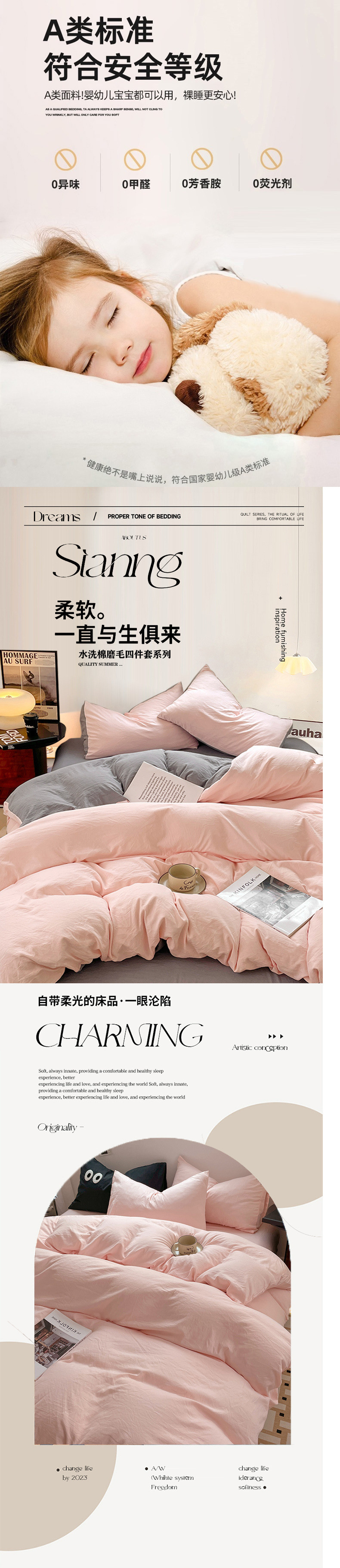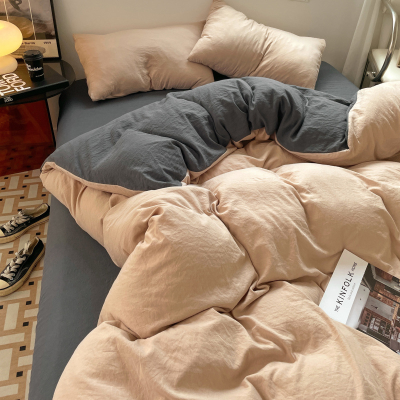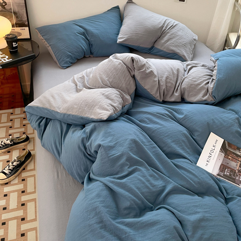 클래스 A 모성 및 유아 등급 슈퍼 소프트 세척 가능한 샌딩 침대 시트 4 피스 세트 침대 커버 및 퀼트 커버 학생 기숙사 3 피스 세트