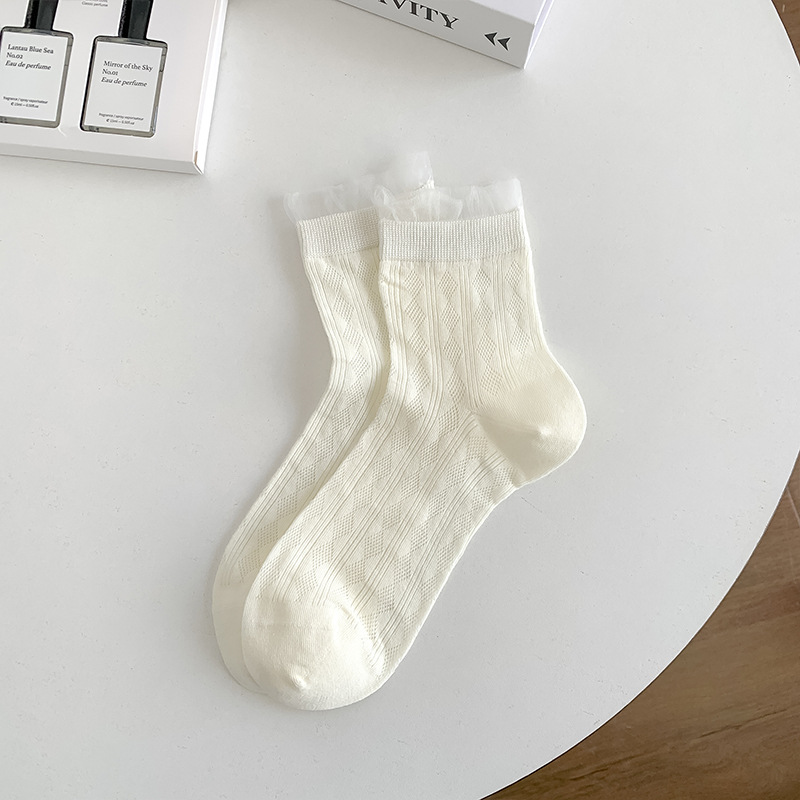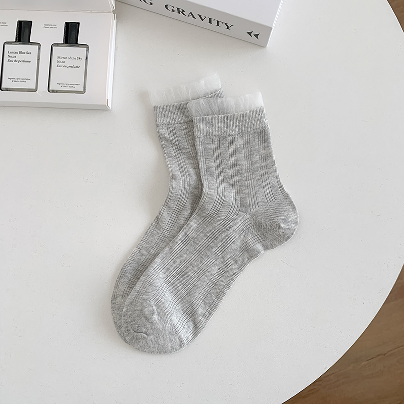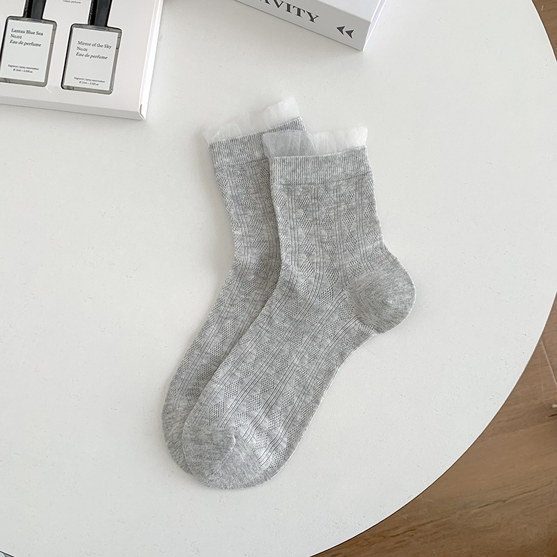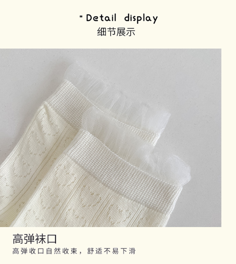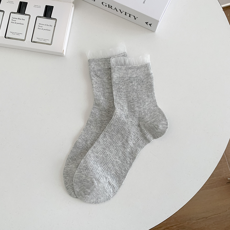레이스 양말 어린이 2025 새로운 한국 단색 튜브 양말 메쉬 통기성 얇은 파일 양말 땀 흡수성 뼈없는 양말