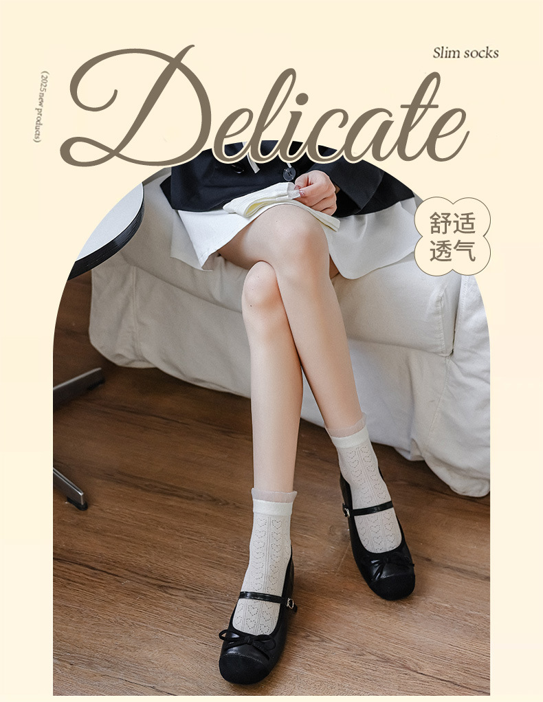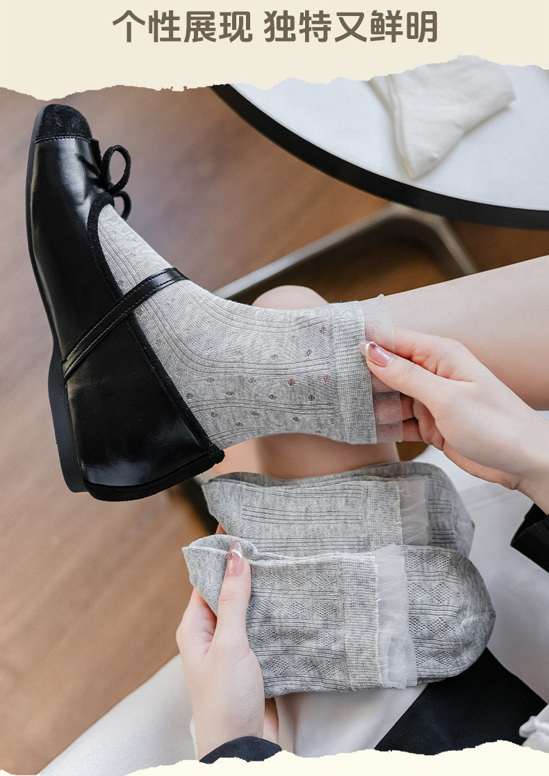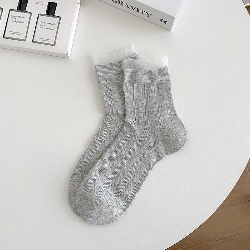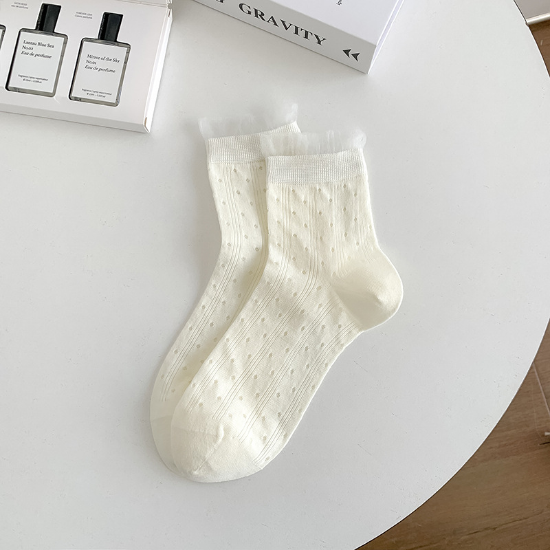 레이스 양말 어린이 2025 새로운 한국 단색 튜브 양말 메쉬 통기성 얇은 파일 양말 땀 흡수성 뼈없는 양말