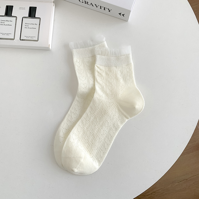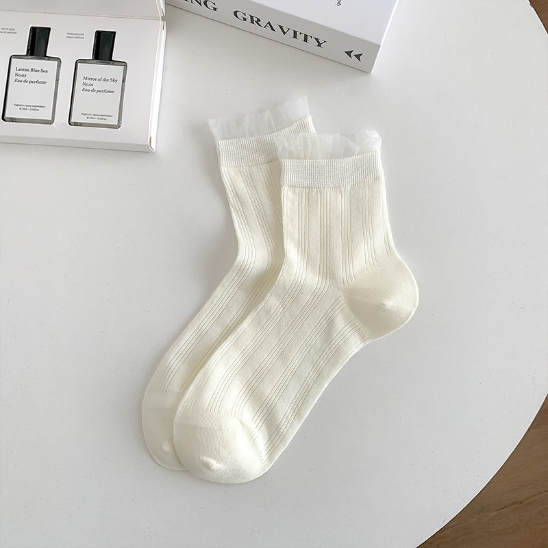 레이스 양말 어린이 2025 새로운 한국 단색 튜브 양말 메쉬 통기성 얇은 파일 양말 땀 흡수성 뼈없는 양말스토어 가기