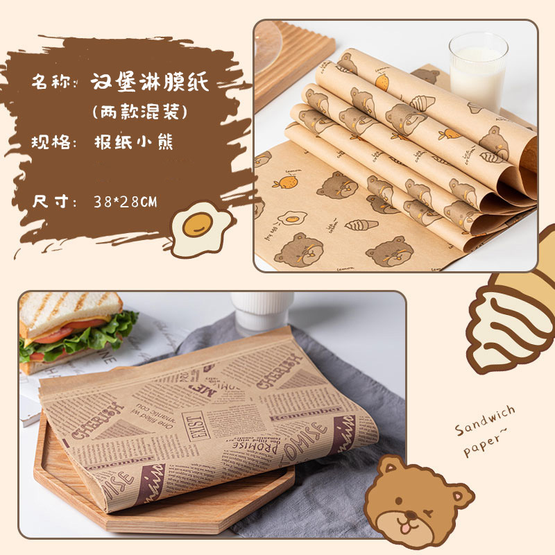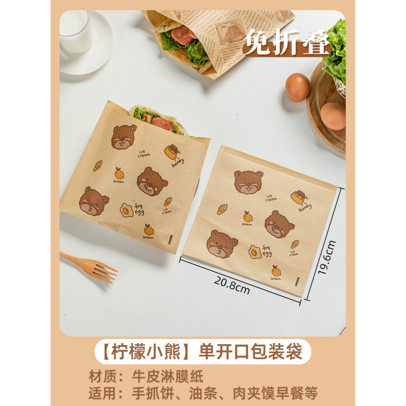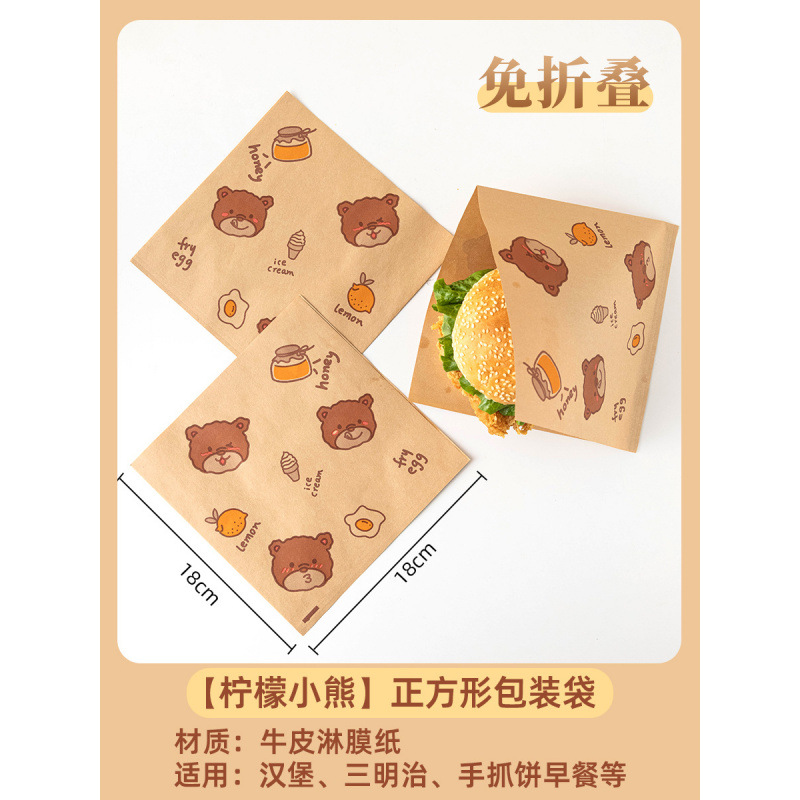 햄버거 포장 종이 가방 일회용 식품 기름 방지 샌드위치 핸드 헬드 팬케이크 아침 식사 계란 과일 고기 펑드를 부어