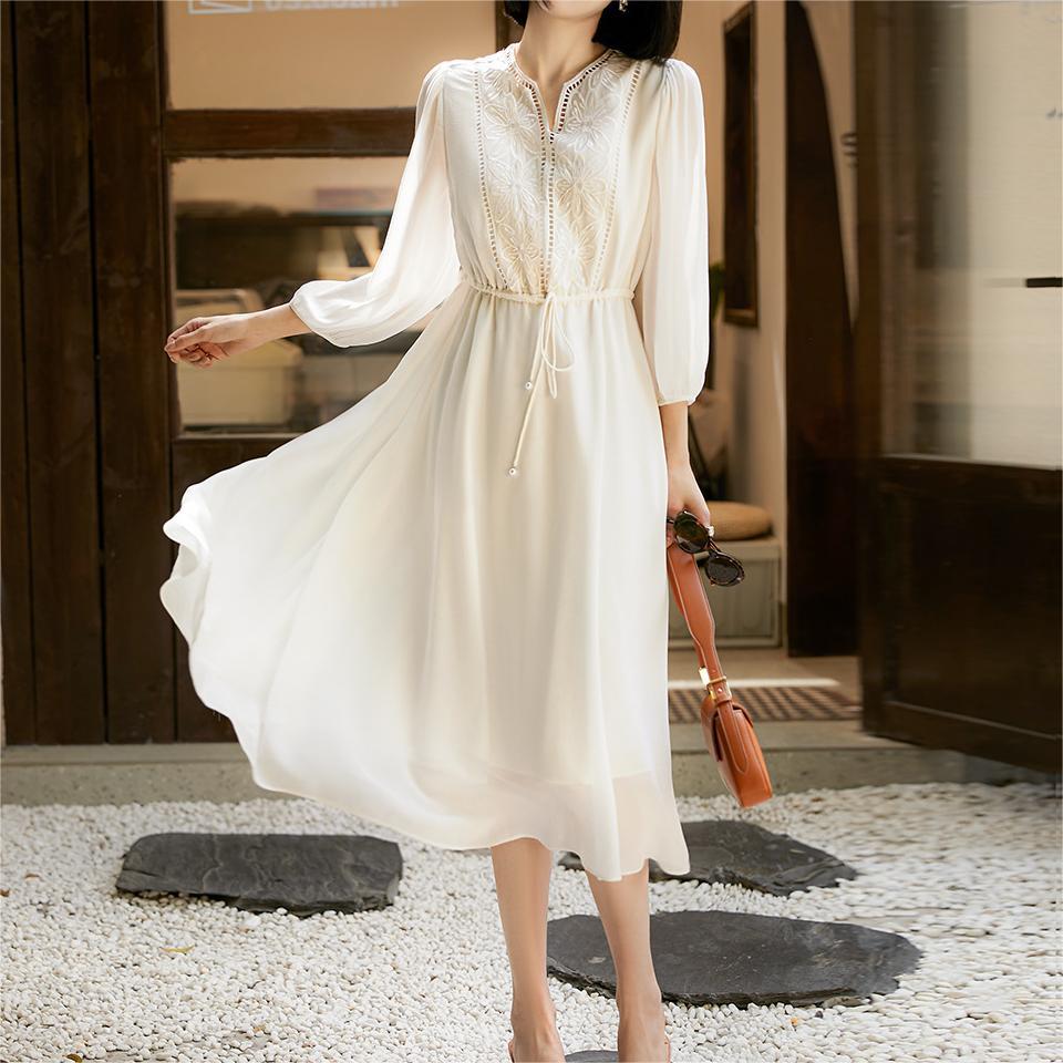 2025 여름 화이트 빅토리아 요정 원피스 자수 경량 우아한 실크 원피스스토어 가기